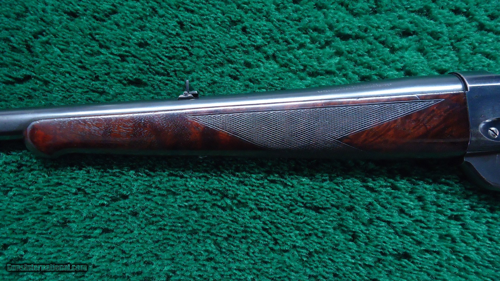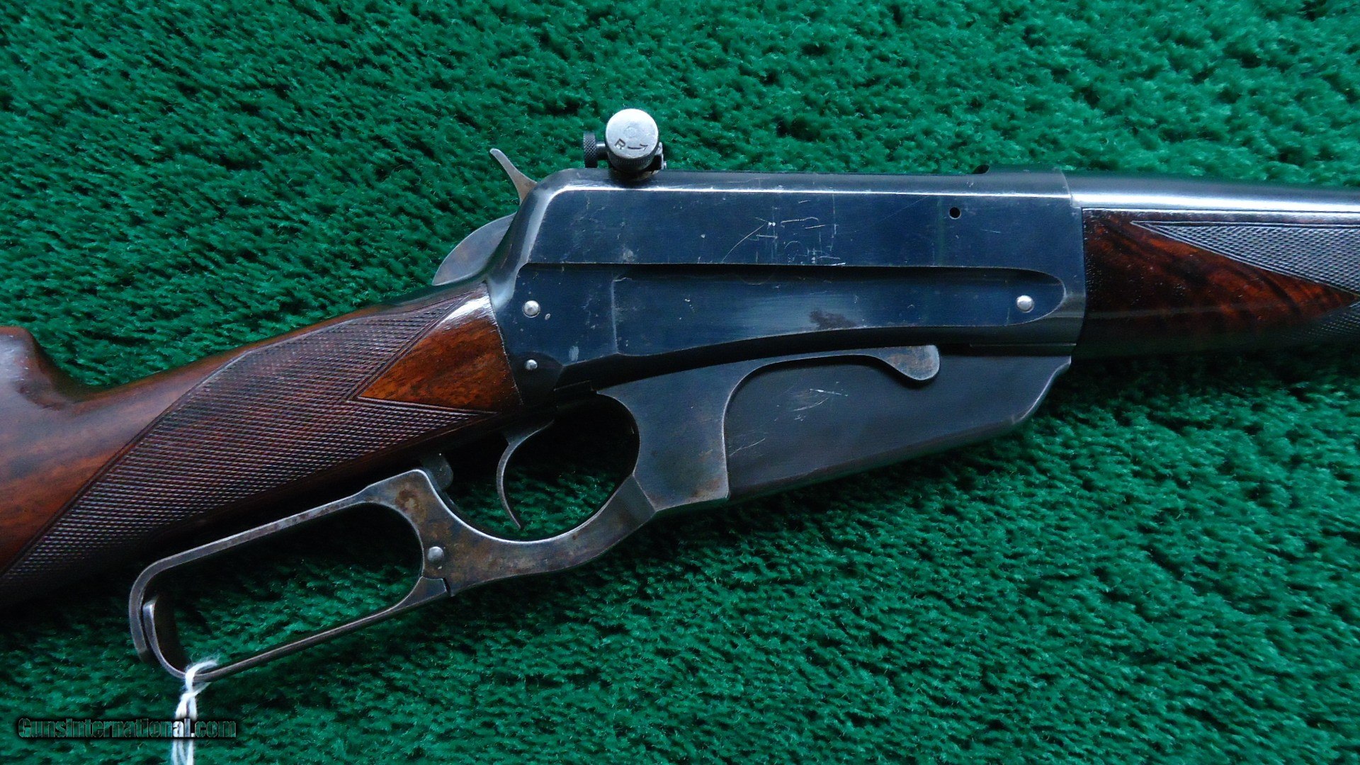 Description: 28 inch round barrel. SIghts include a ramp with pinned nickel silver blade front, a Lyman No. 6-W 2 leaf folding rear and a Redfield No. 70 Micrometer side mount receiver sight. 5 shot box magazine. Deluxe checkered walnut forearm with matching straight grips buttstock finished off with a Checkered steel shotgun style buttplate. Condition rates excellent overall with the barrel, receiver and magazine retaining 90-95% original blue with light wear and handling marks.The stocks are clean, solid and full fitting with crisp sharp checkering showing only light wear and handling marks. Comes with Factory Letter matching this configuration other than the Steel butt plate. Manufactured in 1899. Leroy Merz Antique Firearms specializes in antique and vintage Winchesters and other fine American firearms. Since 1965 Mr. Merz has taken part in the world of firearms and has been a contributor to many well known reference books. We have hundreds of additional guns in every price range at our home online. Search for Merz Antiques in google. SOLD Curio/Relic: Yes Rifle Caliber: .30-40 Krag |