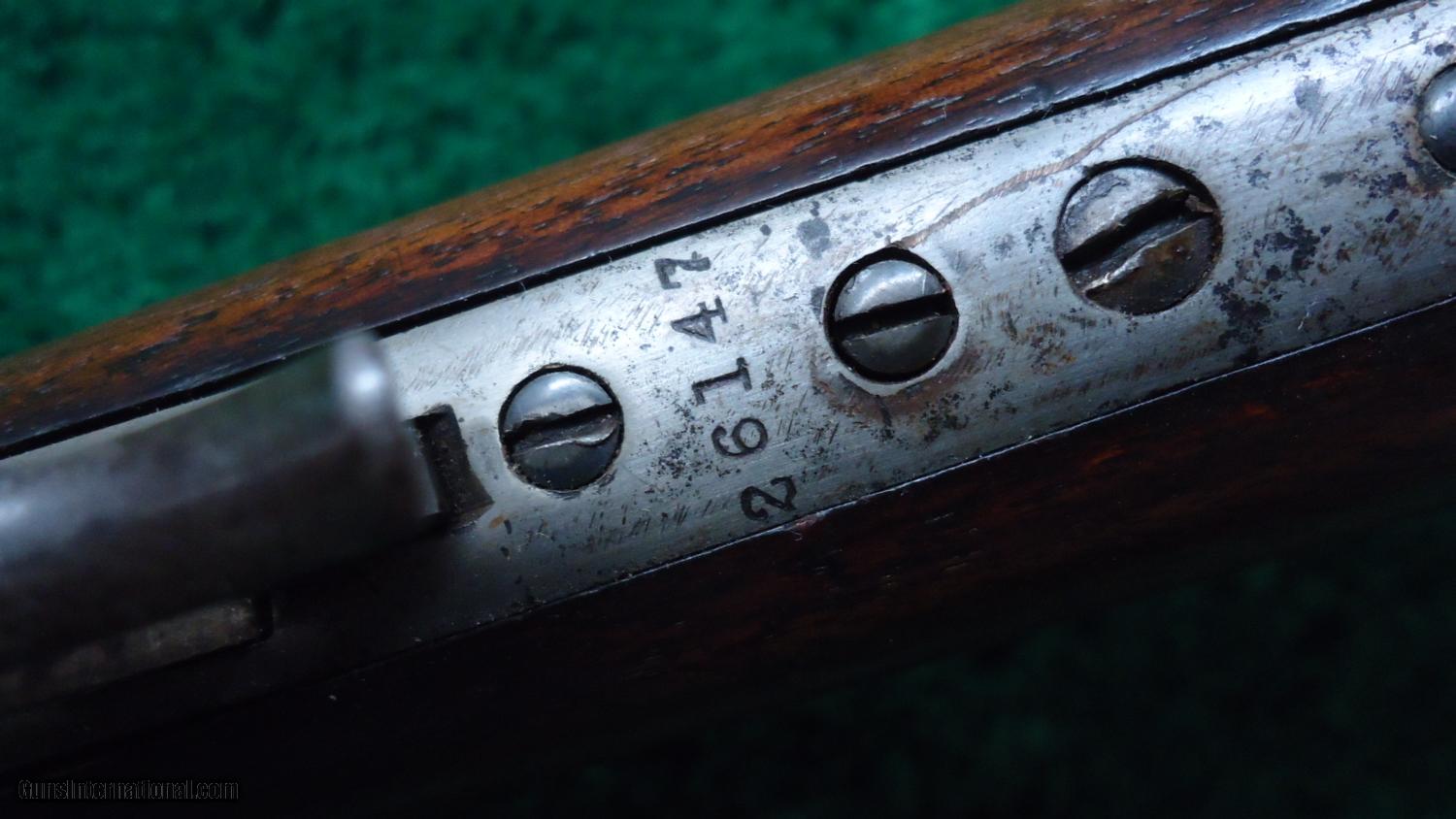 Description: Cal 38-72. 24" oct bbl. A pretty early 95 in the 26k serial range. Engraving is Winchester style 6 scroll. Still visible but receiver has quite a bit of wear. Color is mostly grey on the receiver, lever and mag. Bbl is grey with some discoloration from the action to the end of the forearm. Good overall cond wood with a crescent butt plate. The forearm looks good but likely is a replacement. The gun letters with $2 engraving and the 24" bbl. Leroy Merz Antique Firearms specializes in antique and vintage Winchesters and other fine American firearms. Since 1965 Mr. Merz has taken part in the world of firearms and has been a contributor to many well known reference books. Just recently we mailed the 127th edition of our privately-published catalog. We have hundreds of additional guns in every price range at our home online. Search for Merz Antiques in google. SOLD Curio/Relic: Yes |