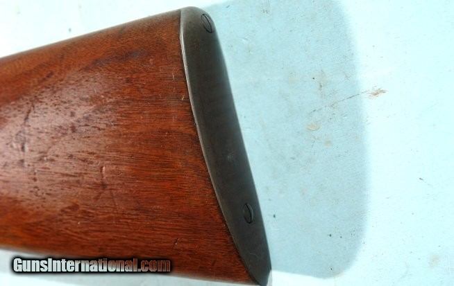 Description: EXCELLENT WINCHESTER MODEL 1895 LEVER ACTION .405 W.C.F. CAL. RIFLE CIRCA 1904. 24” round barrel with original front and rear factory sights. Receiver with original rear tap hole for the special order Winchester Model 1895 side mounted receiver sight. Original steel shotgun butt plate. 100% original and in beautiful condition with excellent plus bore. 95% original blue and most of the original finish on the wood with very light handling patina. Perfect tight working order. Winchester factory records list it as a shotgun butt .405 cal. Model 1895 shipped from the warehouse September 23, 1904. One of the nicest standard grade Model 1895’s in the desirable .405 W.C.F. caliber we have had. Teddy Roosevelt’s “Big Stick”. SOLD Curio/Relic: Yes Rifle Caliber: .405 Winchester |