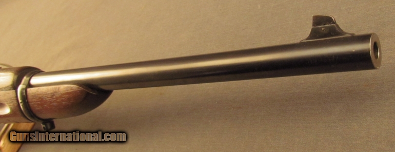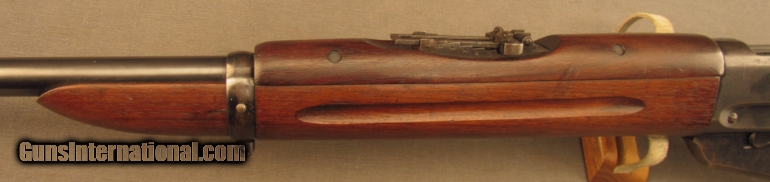 Description: S#401658, .30 Gov. '06, 22 inch barrel, bright excellent bore. This 1921 manufactured carbine features the second style finger grooved forend and third type carbine rear sight with optimistic graduations to 32 00 yards. This carbine remains in remarkable condition with over 80% blue, silvered on high edges, and showing brown patina on lever and magazine bottom and scattered small areas also fading to brown. Wood shows scattered light handling marks with one larger impact mark on left side of forend and handguard behind rear sight. A fine 1895 carbine, this still has the pull through cleaner in the butt trap. FFL or C+R SOLD Manufacturer: Winchester Model: 1895 Serial Number: 401658 Caliber Info: .30-06 Gauge Info: .30-06 |
