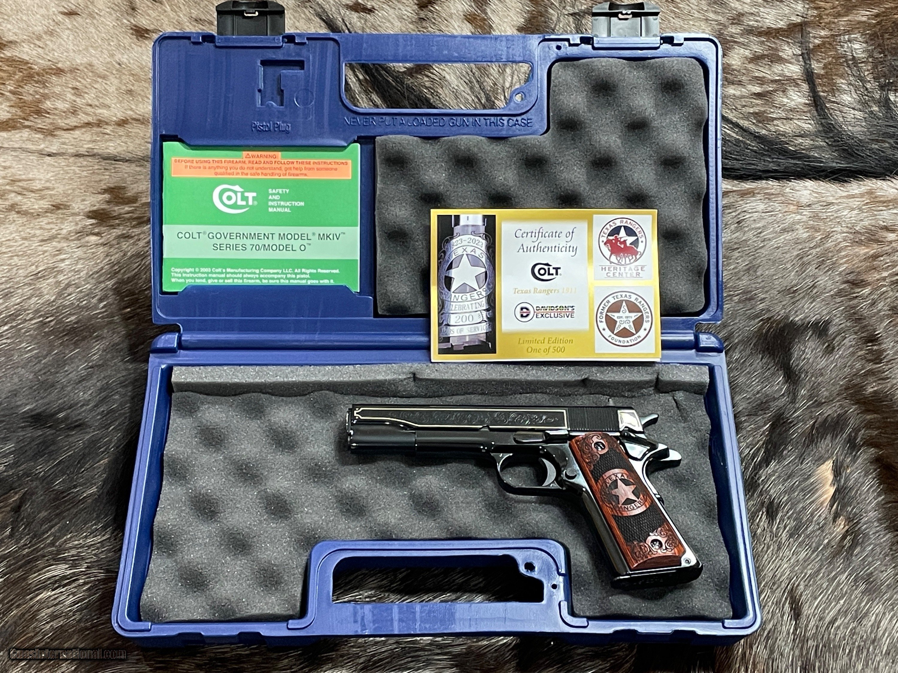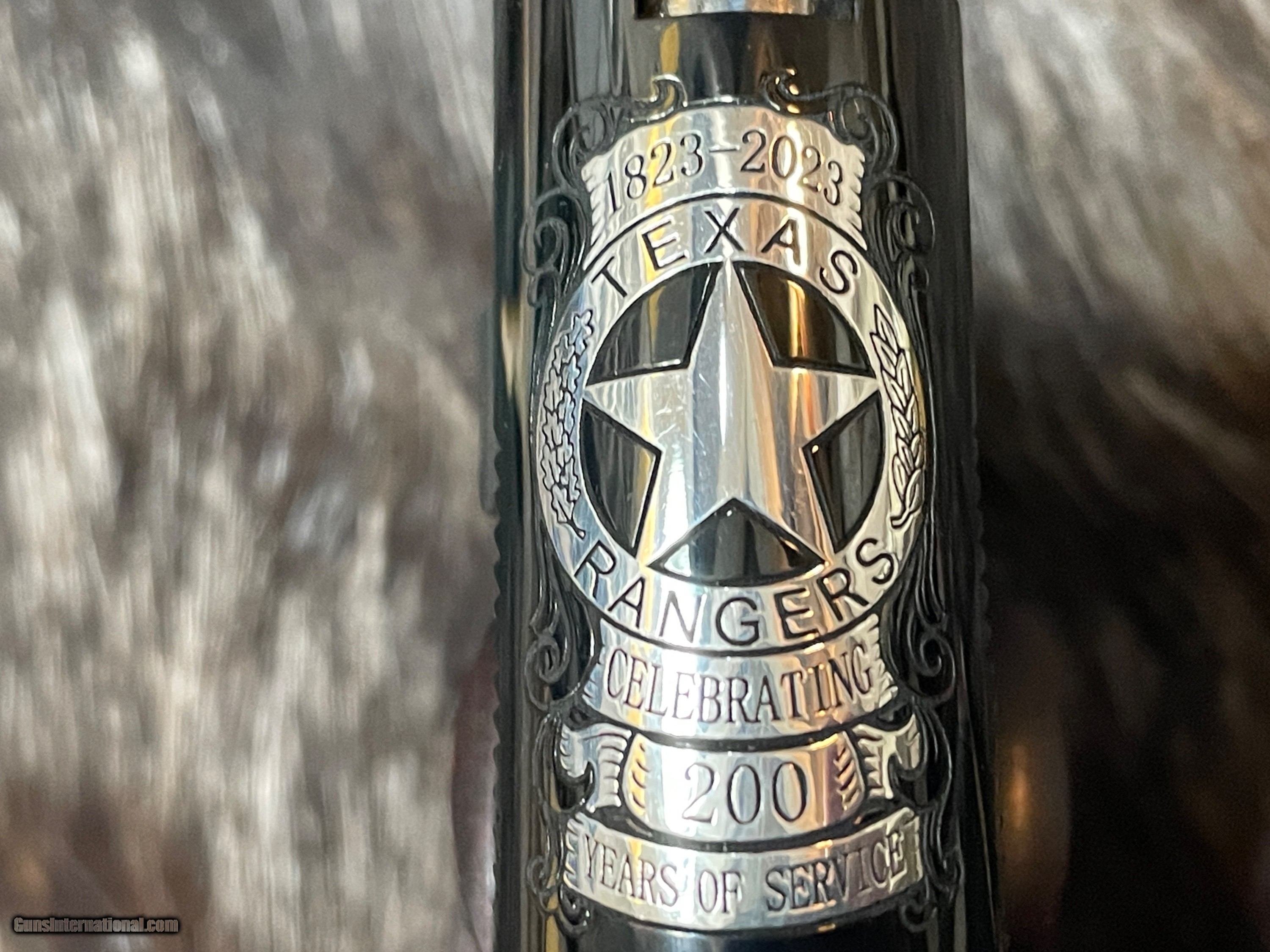 Description: THIS IS A MATCHED PAIR OF LIMITED PRODUCTION CUSTOM GRADE WINCHESTER MODEL 1895 TEXAS RANGERS 200TH ANNIVERSARY EDITION LEVER ACTION RIFLE IN 30-06 SPRINGFIELD AND COLT 1911 TEXAS RANGER 200TH ANNIVERSARY EDITION 45 ACP PISTOL, BOTH WITH SERIAL NUMBER 12 - LAYAWAY AVAILABLE. Features Of This BEAUTIFUL LIMITED EDITION MATCHED PAIR Model 1895 Rifle (Serial No. TXRNGC0012) and 1911 45 ACP Pistol (Serial No. TXR012) Include: