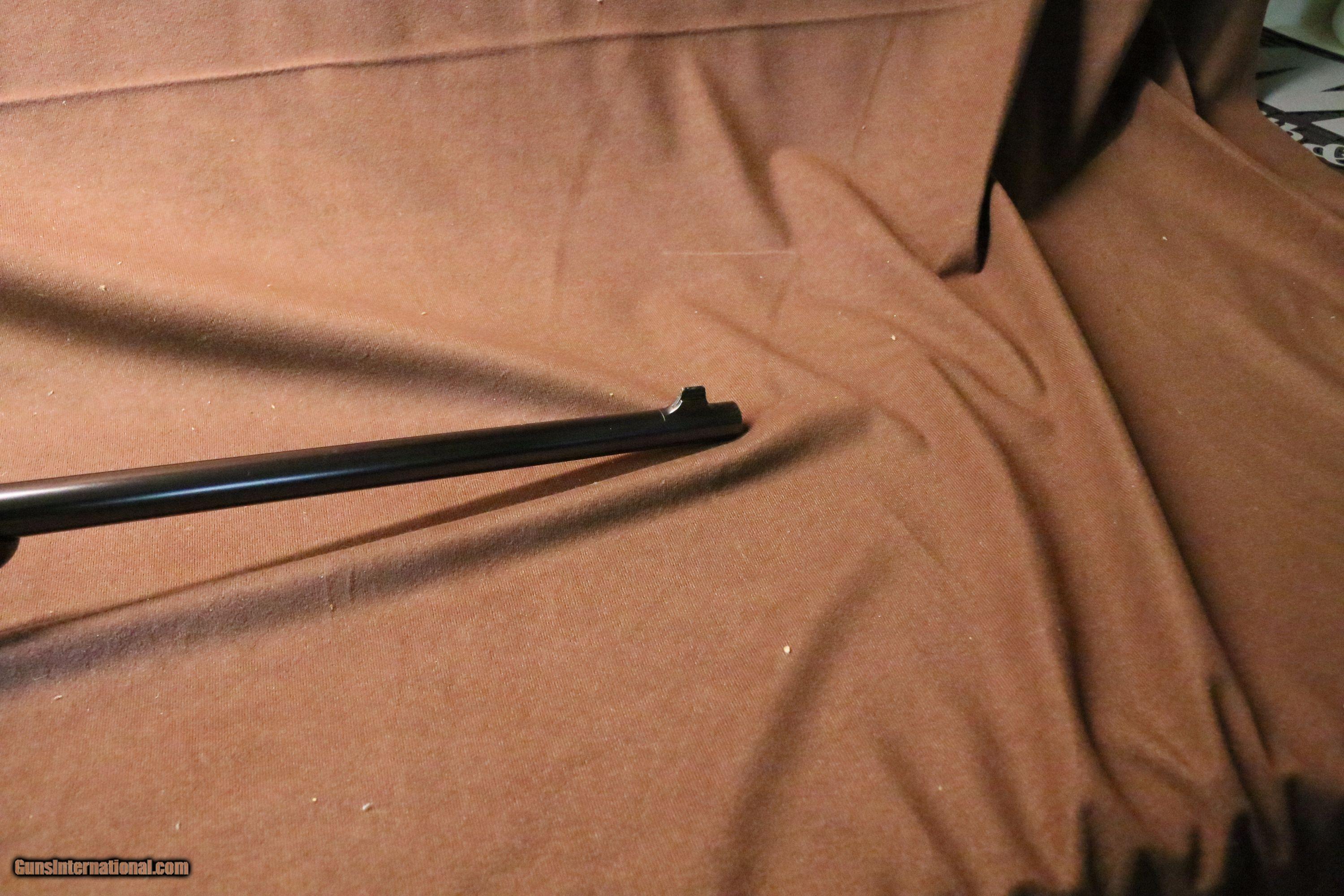 Description: This beautiful 1895 took a bit of detective work to sort out. It had been offered as an all original gun by another dealer for a god awful amount of money, had it been 100% un altered that may have been accurate price. This is what is known per a recent Cody search and the original 1975 Winchester Museum Factory letter that is included with the purchase.: S/N applied 11/16/1901 Type Rife Cal 30 Fancy Stock, Checkered stock Sights Lyman front and rear Shotgun Butt Rubber Oil Finish Received in Warehouse February 12, 1902 Shipped February 14,1902 Order number 131956 Returned March 29, 2902 137116 back in warehouse April 02, 1902 configured as above.#137116 Shipped June 30, 1902 #143976 no details provided other than the date. So here is what the detective worked had resolve. The rifle now has a correct Winchester metal checkered Butt plate on the original stock and the fitment looks to be factory I believe it was under one of the 2 work orders. The Rifle is now a short rifle at 22", the bore is mint and the installation is undoubtedly Winchester repair or custom work done in 1931 or early 32 as it is a proof steel barrel and marked made n the USA on the right side. The two digit date under the barrel is 31 so that is consistent. The new barrel has a near perfect bore and 08& blue, when you view it close you can see the darker finish on the barrel and lighter more blushing finish on the receiver, Both the barrel and receiver and proof marked which supports the Winchester rebarrel claim. I believe the Lyman front sight was removed from the original barrel and reinstalled on this one as was the original checkered sporting rifle forend. The new barrel has factory drilled and plugged carbine sight holes but the configuration as finished is of a short rife. The original Lyman Rear sight has the correct pre 1905 WR mark The fancy stock is spectacular, The receiver shows far less than normal wear and above average original finish, yes there are some dings and light scratches but it is 115 years old. The pictures tell the tale that this is a special and very pretty gun. I can speculate that the original barrel was replaced to correct a bad bore due to being used with corrosive ammo, or and in my opinion the most likely scenario is it was replaced with an original caliber barrel in short rifle length to provide better balance, this gun balances perfectly just forward of the lever on the magazine and as this and every other 95 show that is the most common contact and carry points. The interior of the gun is very clean and retain a high degree o original finish. SOLD Curio/Relic: Yes |