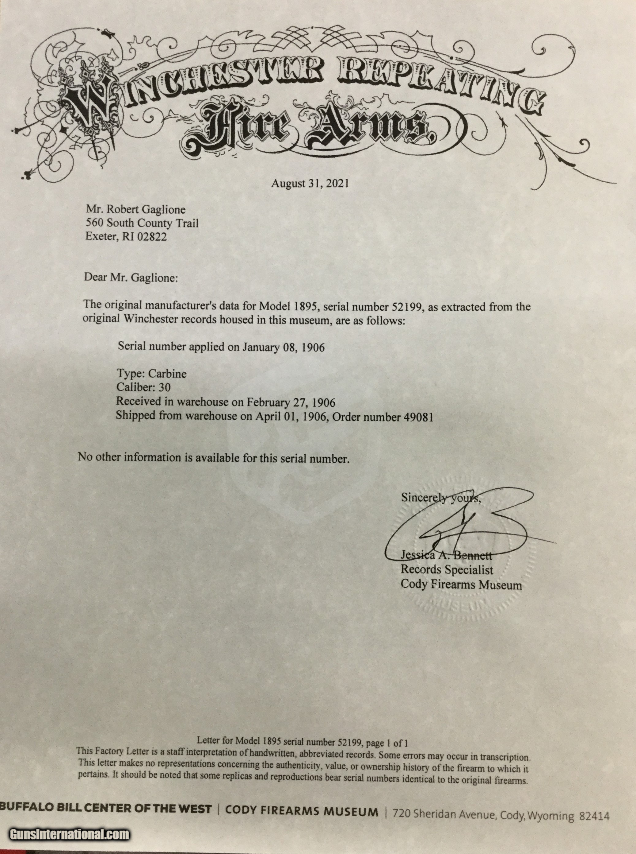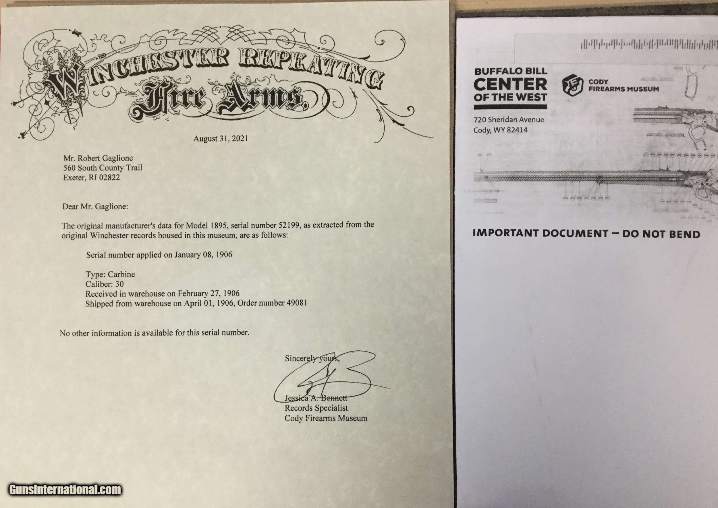 Description: ULTRA RARE MINT Winchester Model 1895 Special Order! .30-40 Krag! Item Description Firearms Unlimited LLC is proud to present this beautiful Winchester Model 1895 Saddle Ring Carbine chambered in .30-40 Krag (.30 U.S.). 1895 rifles are some of the most sought after by Winchester collectors, due to their wide use in the Spanish American War, and even into WW1. However, it was most notably the rifle of choice of President Theodore Roosevelt whom used them in African hunting trips. This Model 1895 is the desirable and scarce saddle ring carbine variation. With a 22in round barrel, it is also equipped with factory installed Lyman No. 201 peep sight in additional to the original top mounted ladder sight. For being manufactured in 1905, the condition is stunning, with a deep rich blue finish across all surfaces and some light patina in certain areas, The wood is equally nice, with only some minor signs of use. The bore has deep rifling grooves with only some minor frost. The original crescent shotgun buttplate is 100% intact and even the original cleaning kit is inside the storage area. This is the only example we have been able to find in this configuration, and would be the crown jewel to the advanced Winchester collection! A factory letter from the Buffalo Bill Center of the West is also included. MFG 1905 Stunning Original Condition! Feel free to browse our other listings by clicking the seller’s other items tab. We offer everything from military surplus, antiques, and rare modern firearms. About Us Firearms Unlimited LLC is dedicated to top notch customer service, and proud to offer the finest firearms available. ATTENTION ***GUNS WANTED*** Firearms Unlimited LLC wants your guns! From one, to an entire collection. We specialize in military, antique, and modern firearms. With over 50 combined years in the industry we can get you the most for your guns. Consignments or outrights sales are welcome. We also offer gunsmithing services. Give us a call today, or visit our : ://firearmsunlimitedllc/ (401)-397-GUNS Open 7 days a week! Payment Details Visa/Mastercard, Discover accepted Feel free to contact us about short term layaway options! Shipping Details Firearms ship SAME DAY on any and all orders placed before 12pm EST. *Depending on receipt time of FFL* SOLD Curio/Relic: Yes Rifle Caliber: .30-40 Krag |