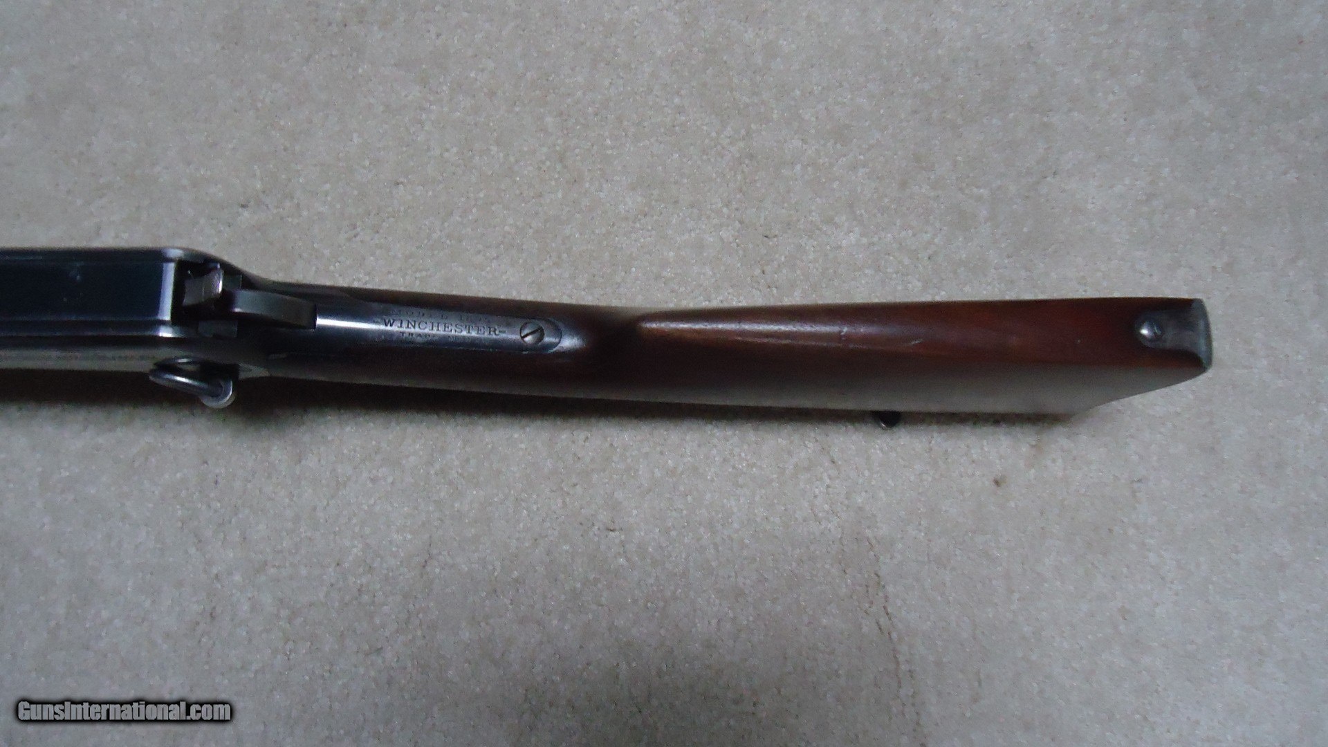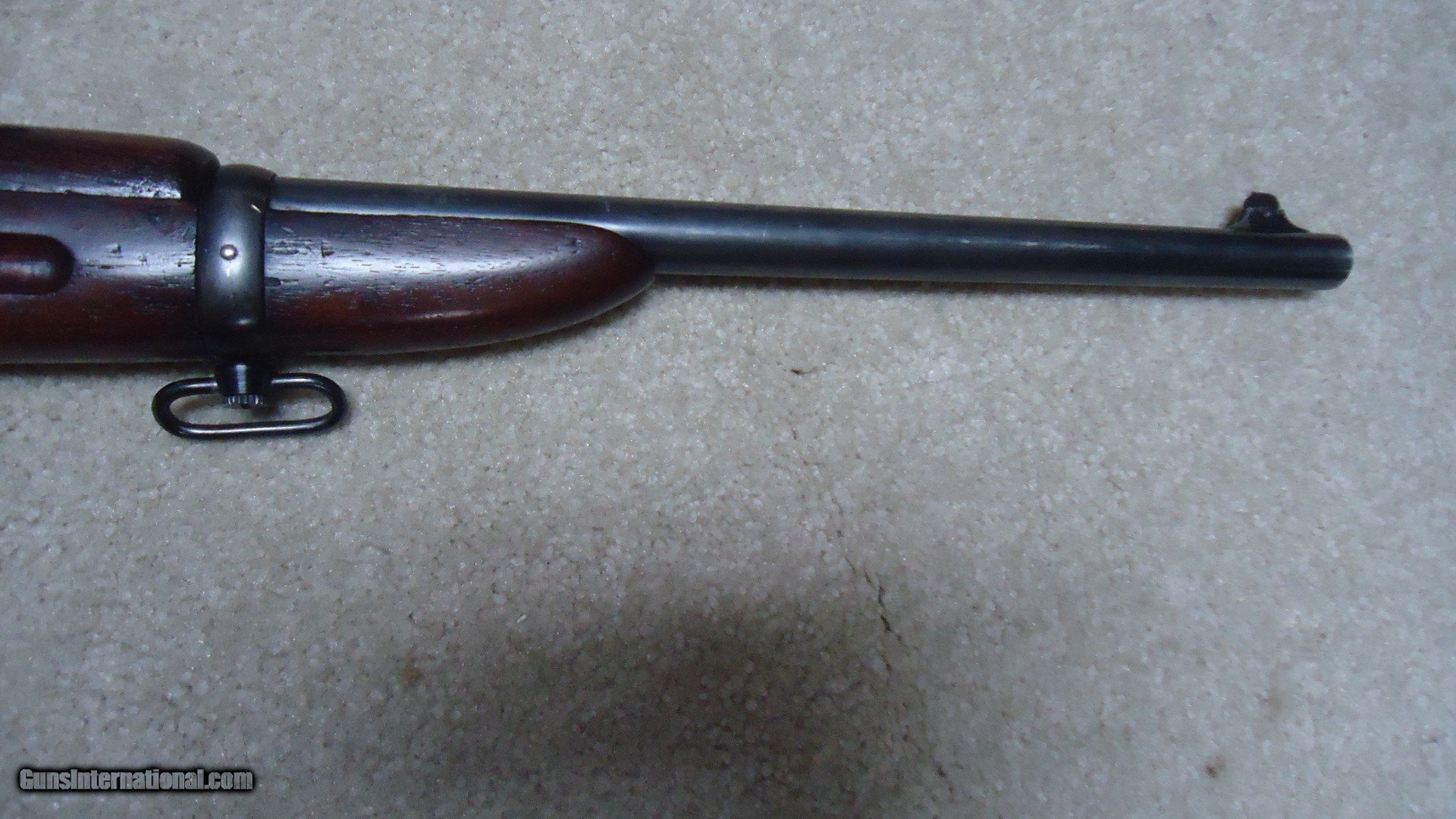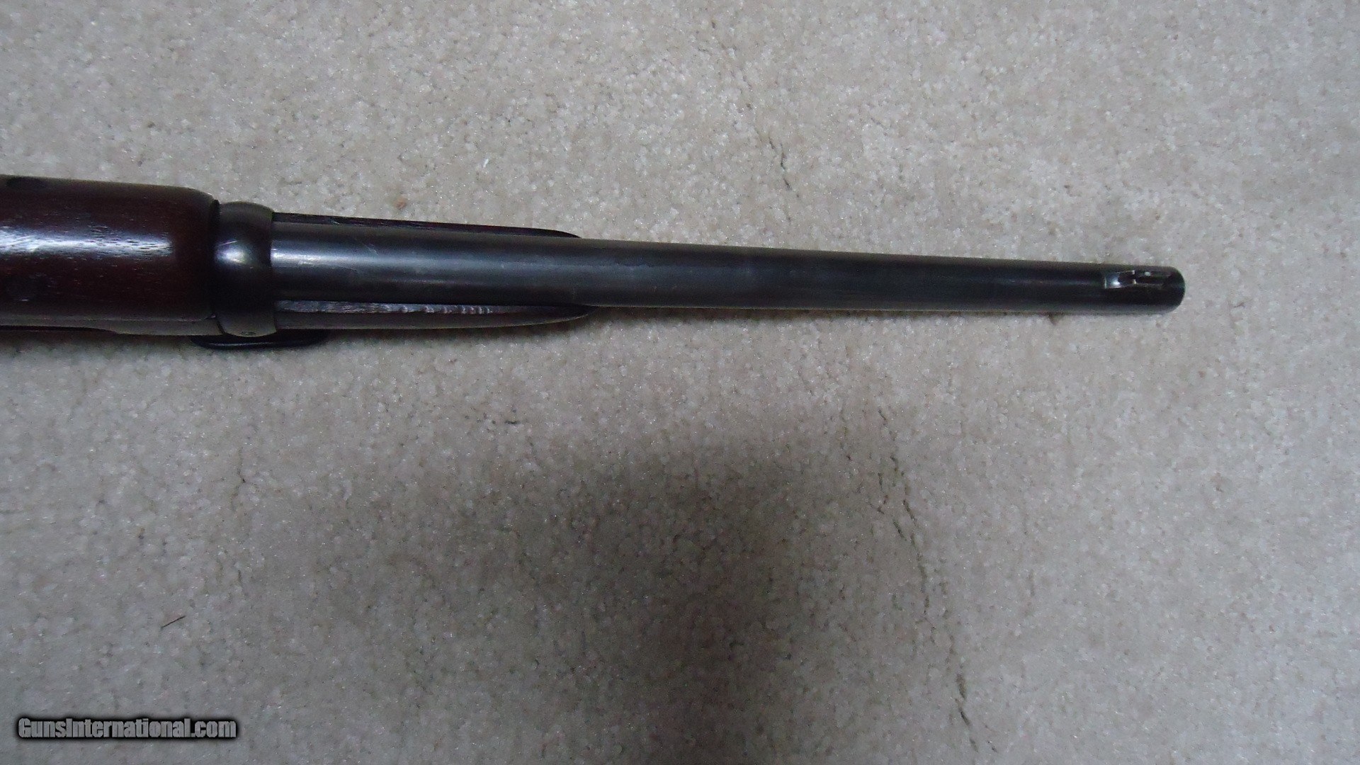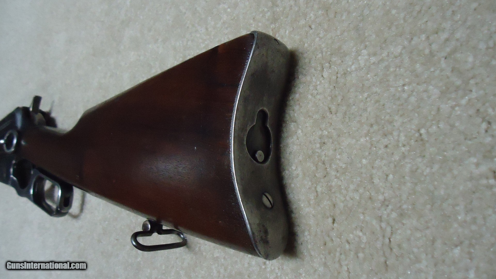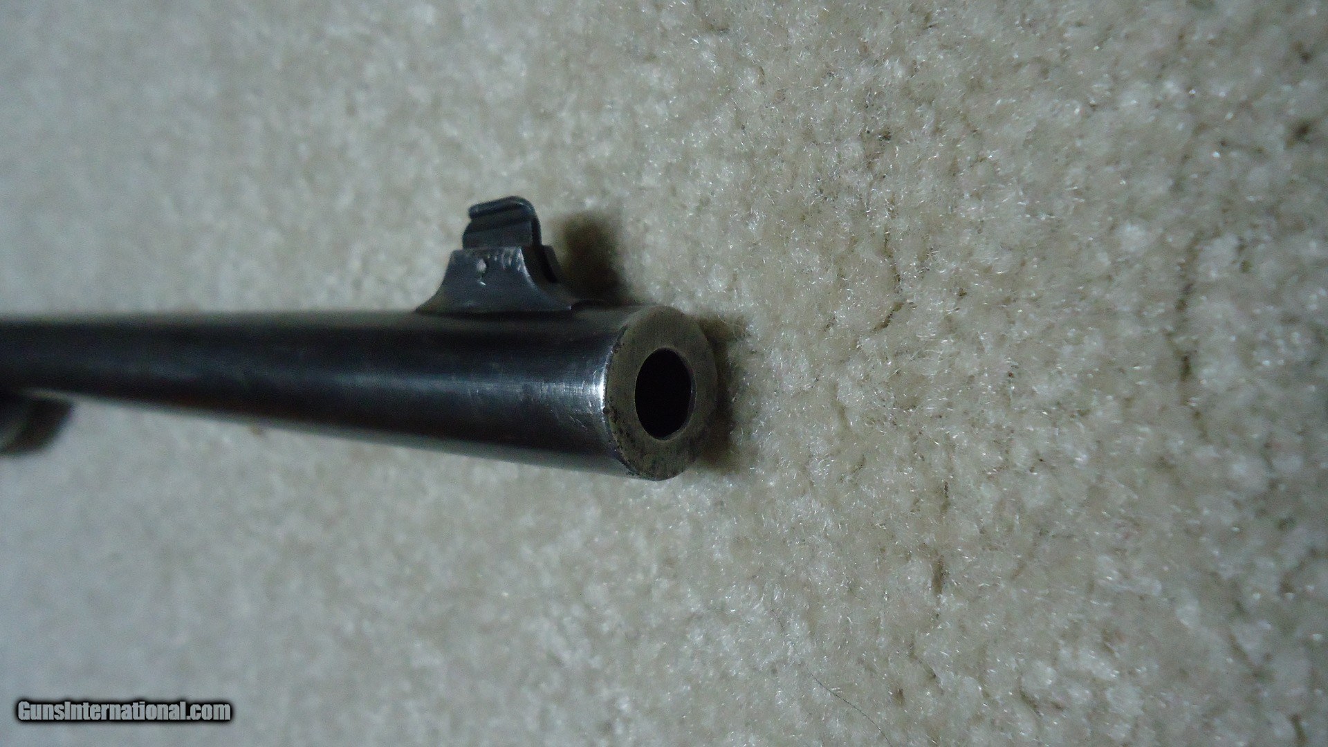 Description: VERY FINE CONDITION 1895 SADDLE RING CARBINE, .30-40 CALIBER, #62XXX, MADE 1908. This model and caliber was very popular with the Texas and Arizona Rangers during the first decade of the last century. Early examples, like this one, are difficult to find in this kind of condition as most saw fairly hard use. This example shows very fine receiver blue with edge wear and some light thinning on the right side toward the front half. The bolt retains exc. bright blue and there is still some good blue on the magazine sides. All markings on the receiver are sharp and clear, saddle ring is intact and screws are fine with NO extra holes. The barrel shows good blue with some light thinning and has the correct ladder rear sight with slide intact. Butt stock and forend are excellent with tight wood to metal fit. The handguard is the original with matching walnut (usually easy to spot a replacement handguard because the walnut rarely matches). This one has been fitted with a sling swivel in the barrel band and one in the butt stock that may or may not be factory original, but certainly old. Only the beginnings of a slight crack in the handguard just coming forward from the receiver ring and goes for about an inch. Action is tight and bore is sharp and excellent. Really fine appearance on this nearly 114 year old '95 especially with so much blue remaining on the receiver. SOLD Curio/Relic: Yes Rifle Caliber: .30-40 Krag Manufacturer: Winchester Model: 1895 Serial Number: 62XXX Barrel Length: 22 Condition: FINE+ Bore Condition: EXCELLENT |