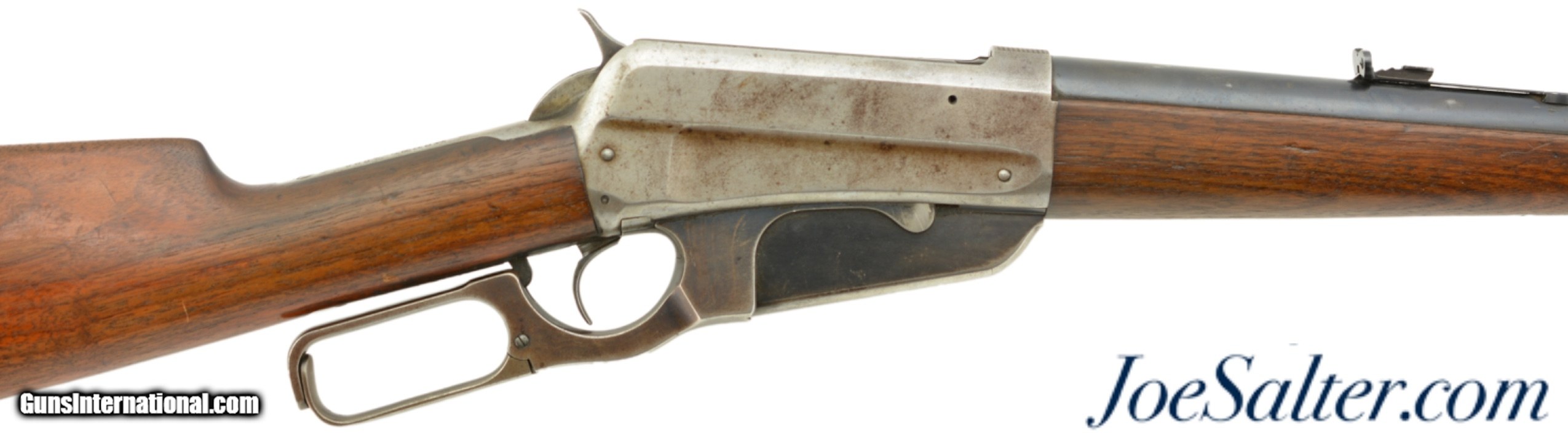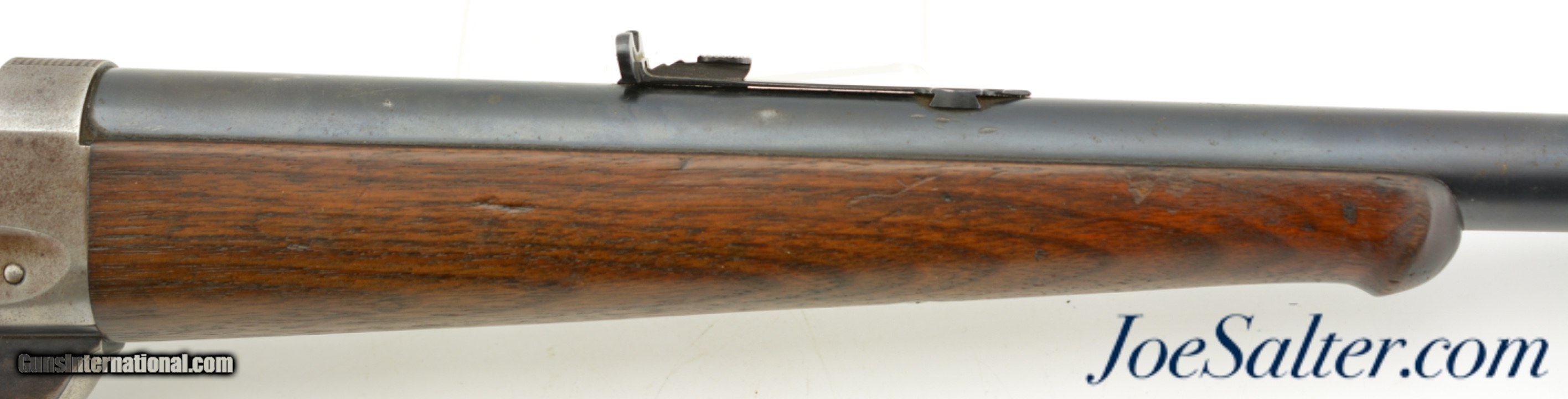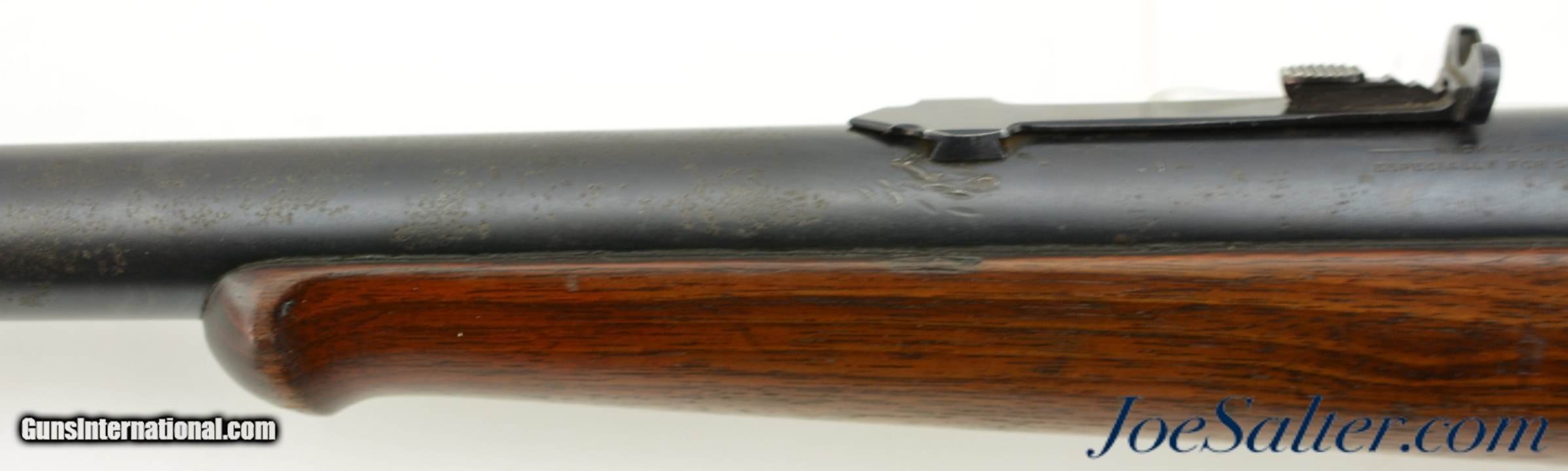 Description: Serial #84445, .30-03 US, 24" barrel with a fine, bright bore that has minor freckling within the grooves. This is a 1914-made rifle that has 80-85% of the original blue remaining on the barrel, with spots of plum-brown freckling along its length, as well as silvering at the muzzle and some impact marks on either side of the rear sight dovetail. The frame has a mostly pewter gray patina with more brown freckling, but retains some of the original blue on the sides of the magazine and lever. A Lyman 21 climbing rear sight was once installed on the left side of the receiver, with a more recent sporting type rear sight fitted into the barrel dovetail. The walnut forend and buttstock have small handling marks and surface blemishes throughout an old, added oil finish. This is a very nice example of a Winchester Model 1895, and chambered in one of Teddy Roosevelt’s favorite cartridges. FFL or C&R SOLD Curio/Relic: Yes |