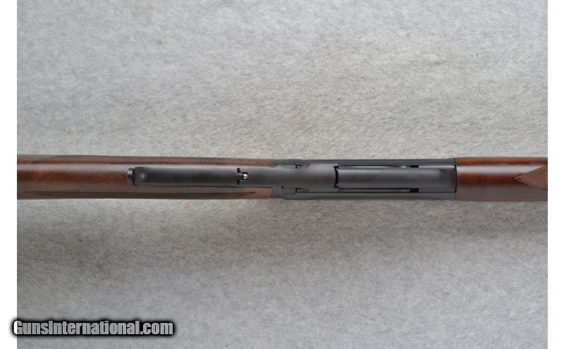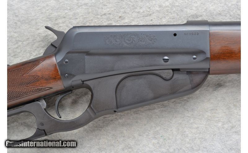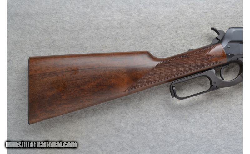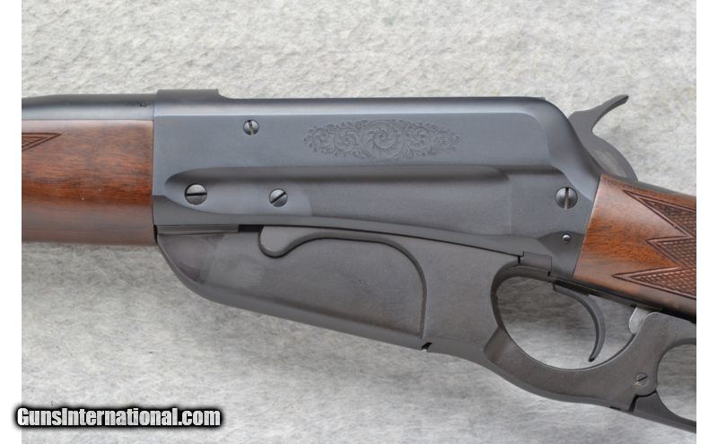 Description: This Winchester Model 1895 Grade I "Classic Traditions" is a lever action repeating rifle in .30-06 Cal. It has a 24 inch satin black barrel with front and middle iron sights. The stock is a deluxe checkered American walnut straight grip with a schnabel forearm. It has a 4 round box magazine. On each side of the receiver the upper scallop is enhanced with a beautiful cluster of Nimschke style scroll work. The 1895 lever action rifle is what Teddy Roosevelt called "Big Medicine." This rifle is in like new never fired condition. SOLD Manufacturer: Made in Japan. Caliber Info: .30-06 Cal. Chambers: Lever Action 4 round box magazine. Metal Condition: Excellent. Wood Condition: Excellent. Bore Condition: Excellent. Barrels: 24 inch satin black. Stock: Deluxe checkered American walnut straight grip. Top tang safety. Stock Dimensions: LOP 13 1/4 inches. Fore End: Deluxe checkered American walnut schnabel style. Butt Pad: Smooth black steel plate. Weight: 8 lbs. 1 oz. Sights: Raised blade front with a brass bead. Adjustable buckhorn middle. Extras: Comes in its original carton with Owners Manual. The carton states 100 Years, Model 1895 and has reference to Theodore Roosevelt with pictures. Item Location: Richfield, WI |