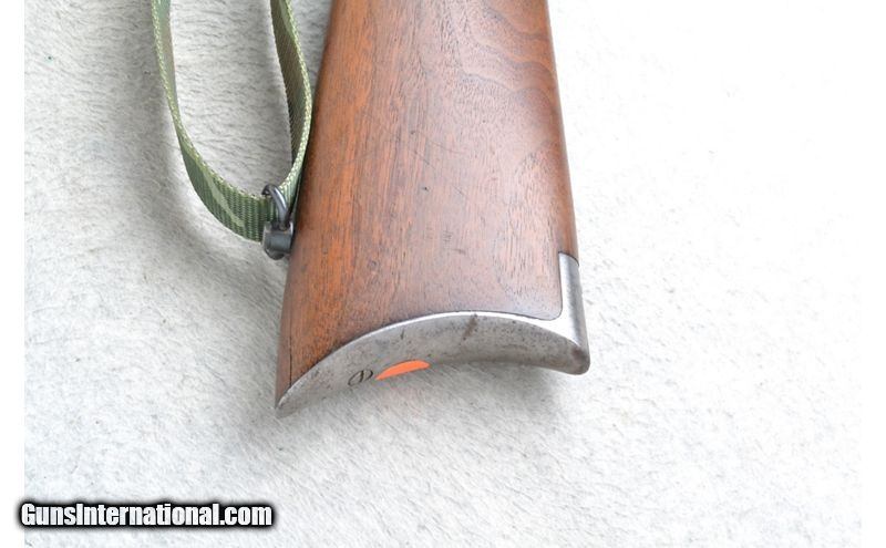 Description: This Winchester Model 1895 is a lever action repeating rifle in .30-40 Krag Cal. It has a 26 inch barrel. A raised blade front sight and a Williams adjustable peep rear sight. The butt stock is a smooth grip walnut straight grip. The forearm is a smooth grip walnut. Serial Number 76455 (1915). .30-40 Krag SOLD Curio/Relic: Yes Chambers: 5 round internal magazine. Metal Condition: Fair. Has some wear and handling marks. Has been reblued. Wood Condition: Fair. Has handling marks. An age crack bottom at butt plate. Bore Condition: Excellent. Barrels: 26 inch barrel. Replaced barrel with O Stone Co. stamped on top. Stock Dimensions: LOP 12 5/8 inches. Fore End: Smooth grip walnut. Butt Pad: Smooth steel crescent. Weight: 8 lb. 14 oz. Sights: Raised blade front. No middle. Williams adjustable peep rear. Item Location: Richfield, WI |
