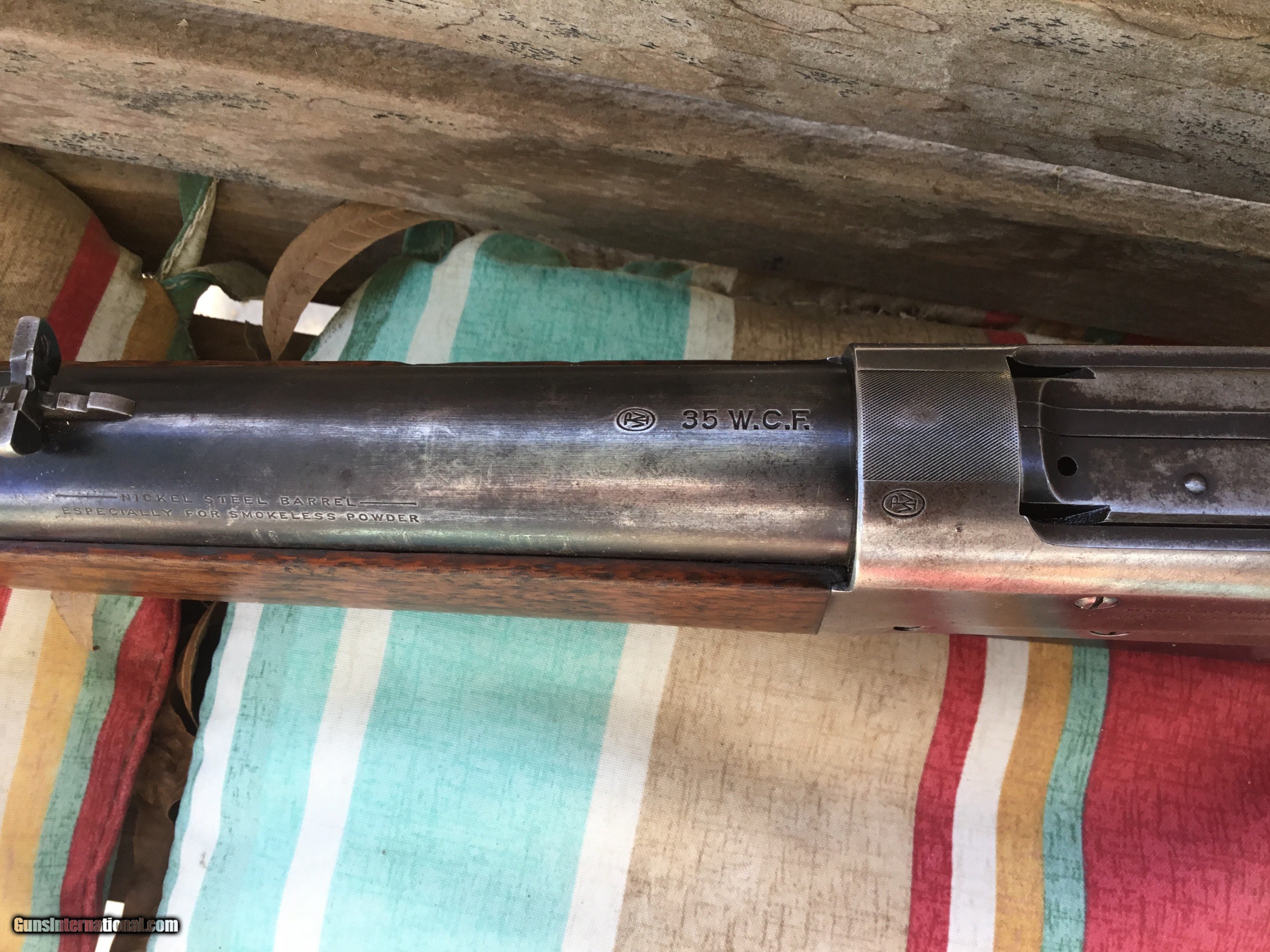 Description: Model 1895 made in 1908 in 35 WCF...lots of blue with great wood...function is perfect...bore is very good...rifle is all original...questions call ....shipping is $50.....20 rounds of ammo SOLD Curio/Relic: Yes |