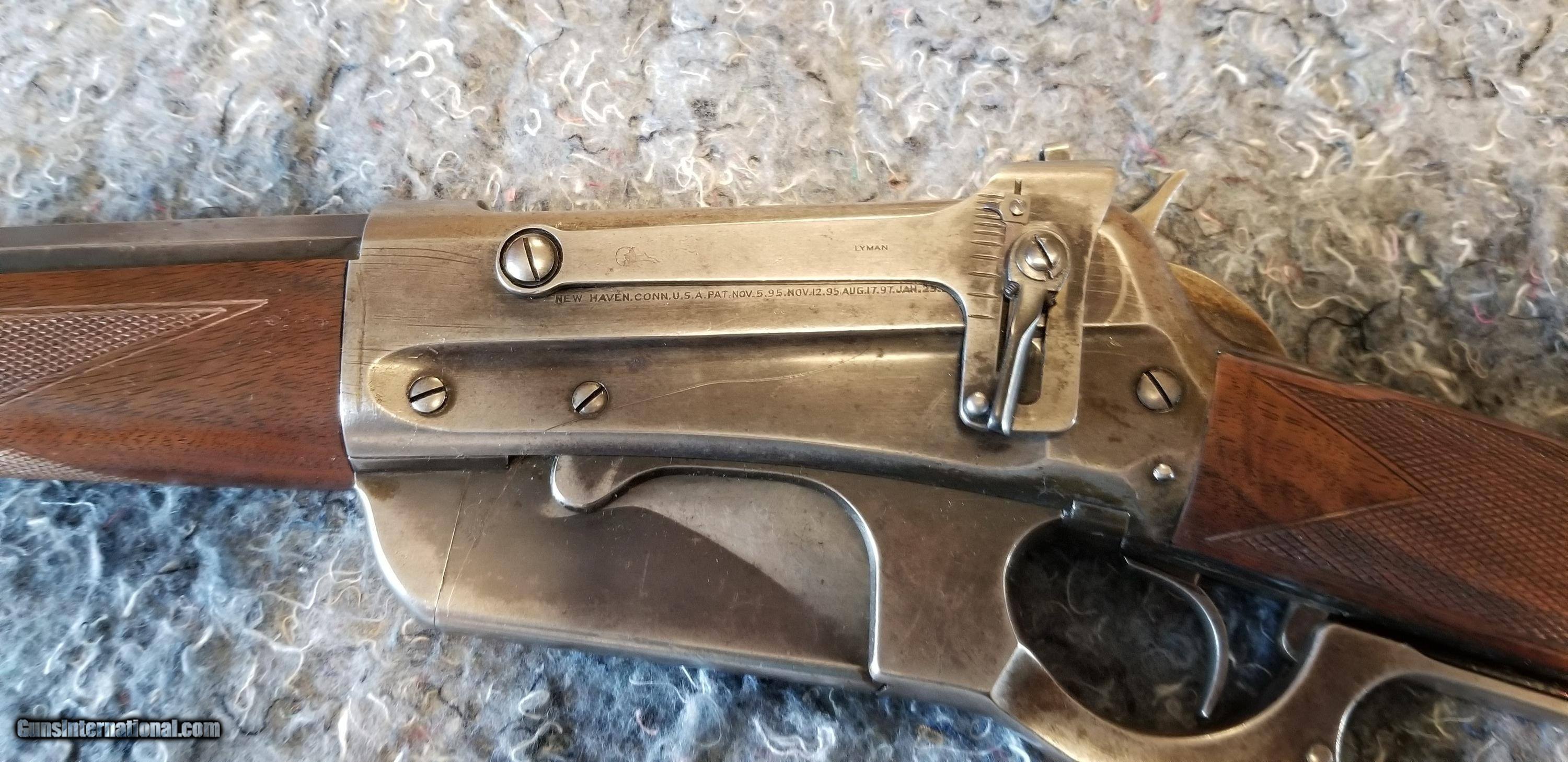 Description: Serial 31918, made in 1901. This rifle has a 38-72 octagon barrel that has been rechambered to 405 winchester. The bore is excellent. It cycles and chambers cartridges but it has a weak follower spring, the shell doesn't come up good out of the magazine. It has a Lyman 21 receiver sight. It has 2 tapped holes also for a sight. Beautiful figured stock and forend. The24 inch octagon barrel is matted on top. A handsome rifle. Shipping is free in lower 48. If interested, call or text 207-522-0939 SOLD |