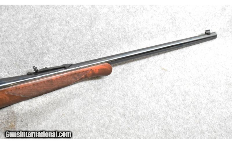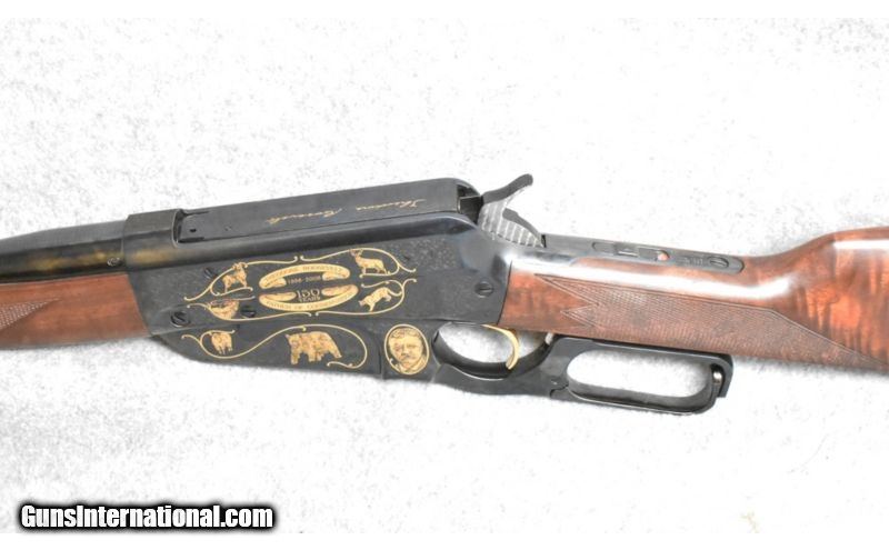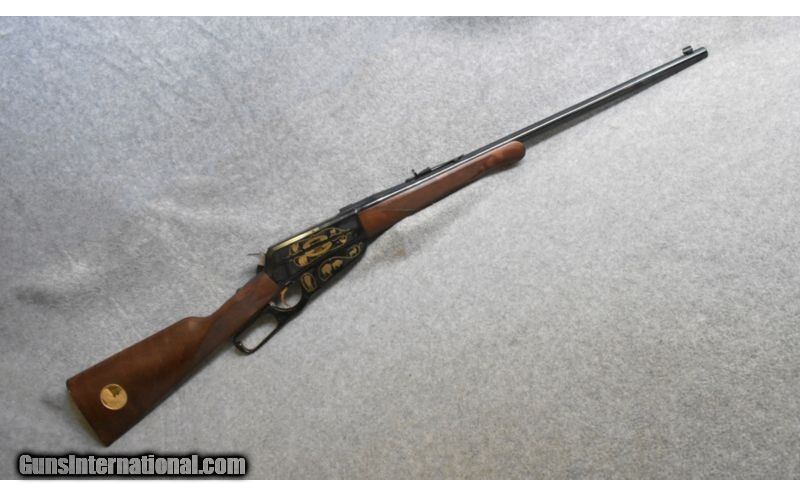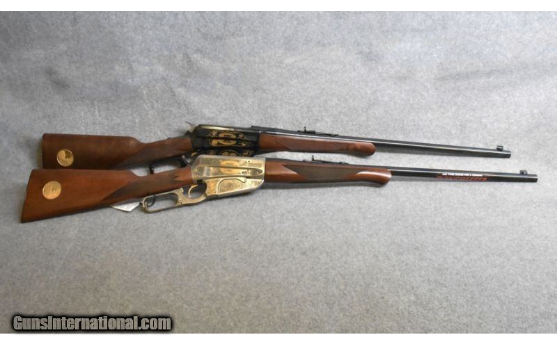 Description: Matching set of Winchester 1985 commemorating the 150th Anniversary of Theodore Roosevelt's birth, 1858-2008. An avid hunter and outdoorsman throughout his life, Roosevelt preferred Winchester rifles. North American big game engraved, Theodore Roosevelt's signature, gold medallion in the stock of Theodore Roosevelt. Only 500 manufactured of the Custom Grade and sold with it's matching serial number High Grade.Only being sold as a set. SOLD Manufacturer: 2008 Caliber Info: .405 Winchester Metal Condition: Excellent, like new Wood Condition: Excellent, like new Bore Condition: Clean with bright lands Barrels: 24 inch blued barrel Triggers: Single grooved trigger Stock: Checkered english style deluxe high grade walnut Stock Dimensions: 13 1/4 inch LOP Fore End: Checkered schnabel style walnut Butt Pad: Blued metal plate Weight: 8 lbs Sights: Marbles front sight, buckhorn rear sight Extras: Comes with boxes. Item Location: Kansas City, KS |