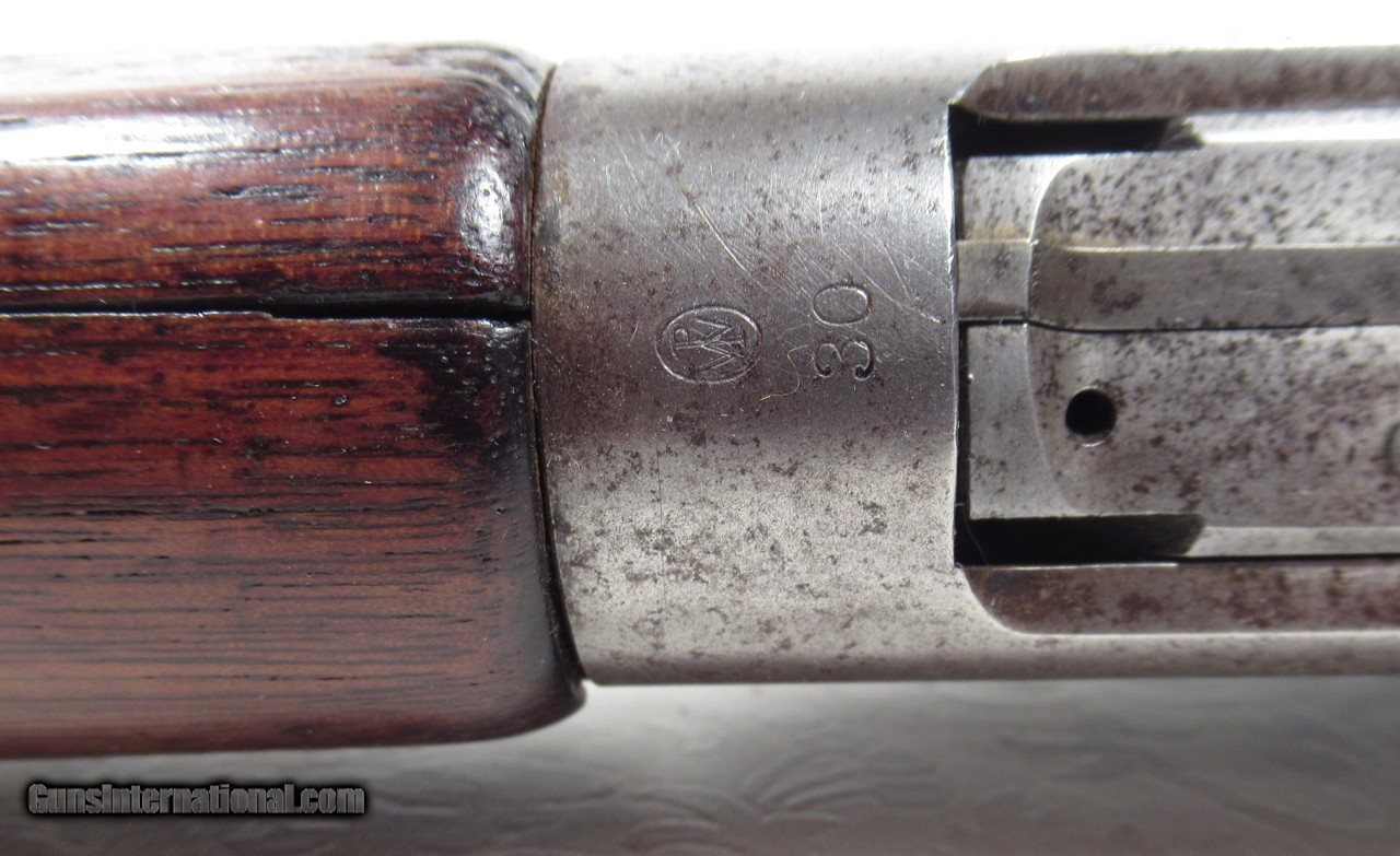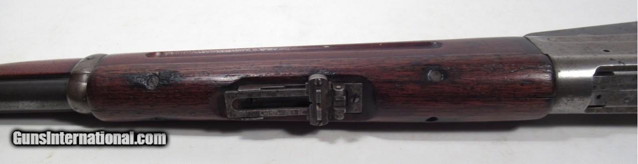 Description: Winchester Model 1895; Serial No. 77794; .30 Caliber (30/40) Krag with Standard 22” Barrel; Made 1915 at the Height of Texas/Mexico Border Problems; This Model was a Favorite of Texas Rangers as well as Revolutionaries and Banditos; Some Original Metal and Wood Finish Remains (See Photos for Condition); Crack in Upper Fore End Wood; 100% Correct & Original with Perfect Action and Excellent Bore; “JSO” Carved in right side of stock; I don’t have a story so you’ll have to make up your own; 115 Year-Old Border Carbine out of Texas; LIQUIDATING PERSONAL COLLECTION; Price: $2,200 + $60 S&H; Price includes insured shipping; return policy: three days inspection from the date the item is received; full refund of shipping both ways ONLY IF THE ITEM IS MISREPRESENTED. SOLD Manufacturer: Winchester Model: 1895 Serial Number: 77794 |