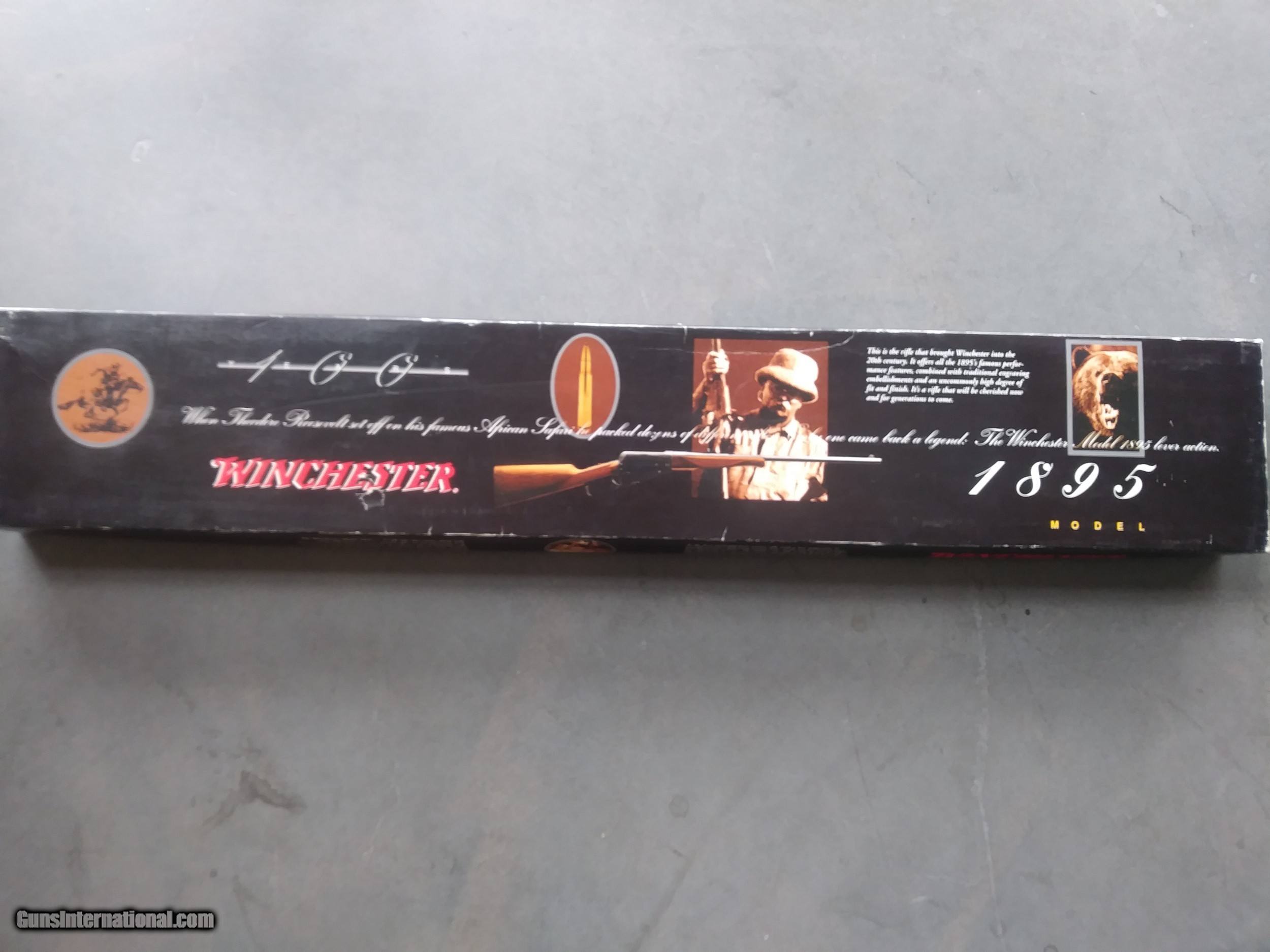 Description: Winchester 1895 Limited Edition High Grade, Blue, Silver Nitride & Gold 24” Lever Action Rifle & Factory Box, MFD 1995-1999, caliber 30-06. The left side of the barrel is marked “ESPECIALLY FOR SMOKELESS POWDER / SPECIAL STEEL BARREL / NP”, the top is marked “30-06 CAL.”, the right is marked “WINCHESTER / U.S. REPEATING ARMS CO., NEW HAVEN, CT. U.S.A. / MADE IN JAPAN”. The right side of the receiver is marked with the serial number. The upper tang is marked “WINCHESTER / MODEL 1895”. The flanks of the receiver, fixed magazine and lever assembly have beautiful Number 3 scroll engraving and gold inlaid borders; double gold inlaid game scenes are found on the flanks of the receiver. Asking $1350 OBO, buyer pay $50 shipping. SOLD Manufacturer: Winchester Model: 1895 HG Serial Number: nfh0012 Caliber Info: 30-06 Condition: New in a box Barrels: 24 inch Barrel Type: single Action: lever Finish: Blue Item Location: Las Vegas, Nevada |