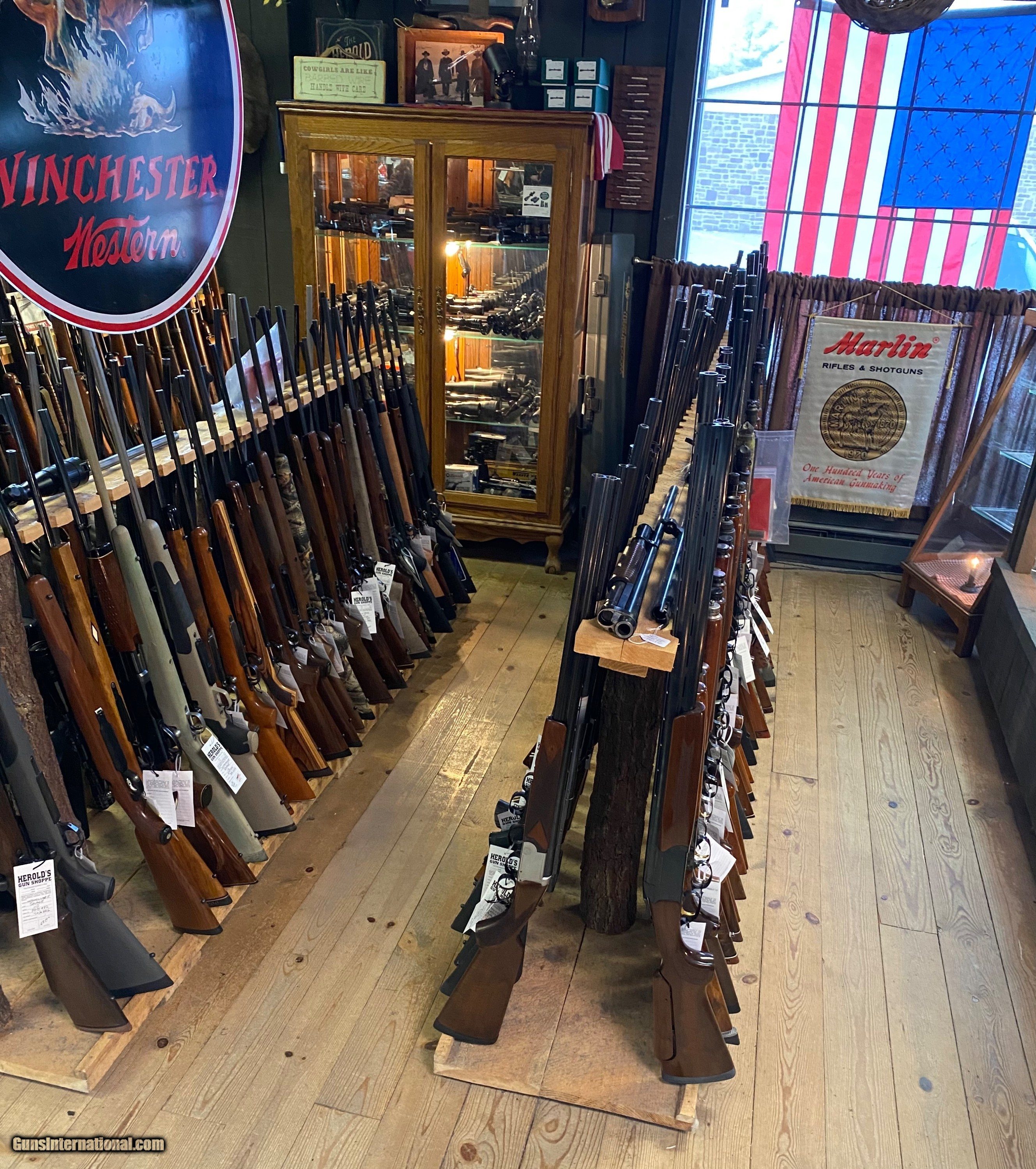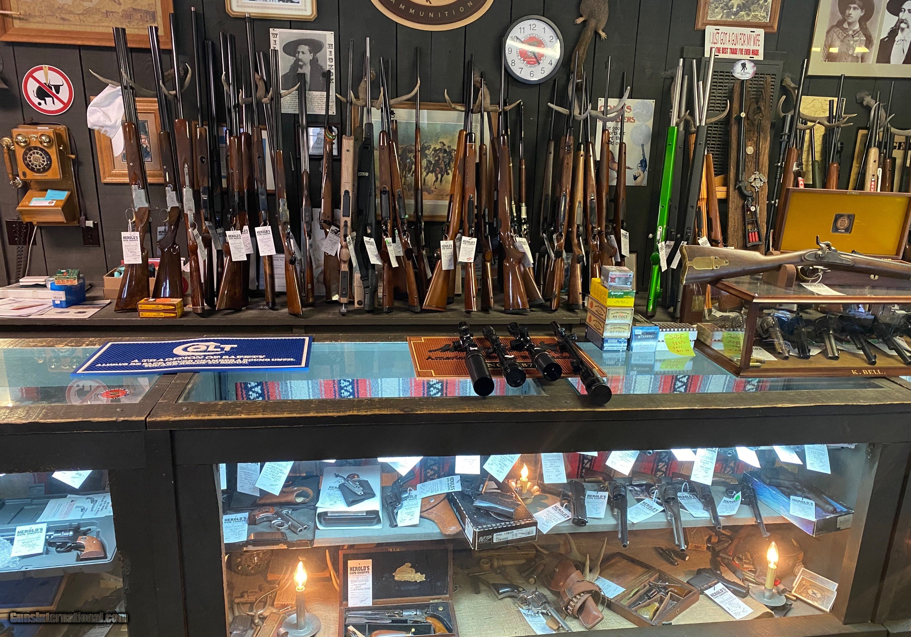 About Us: We are an “Old School” gun store with a vintage Western style. We do carry various modern pistols, revolvers and long guns. However, our specialty is vintage firearms including bolt action, lever action and semi automatic rifles. For example, we usually have at least two or three M-1 Garand rifles at any given moment. Other times we may have one or two Springfield 1903 rifles. Also in stock are a few dozen lever action rifles available in different calibers & barrel lengths. Lastly, we have a wide variety of Colt Single Action Army revolvers in different calibers and barrel lengths. (NOTE: we try & remove items from Guns International ASAP if they are sold through our retail location, but there may be a slight delay in doing so)