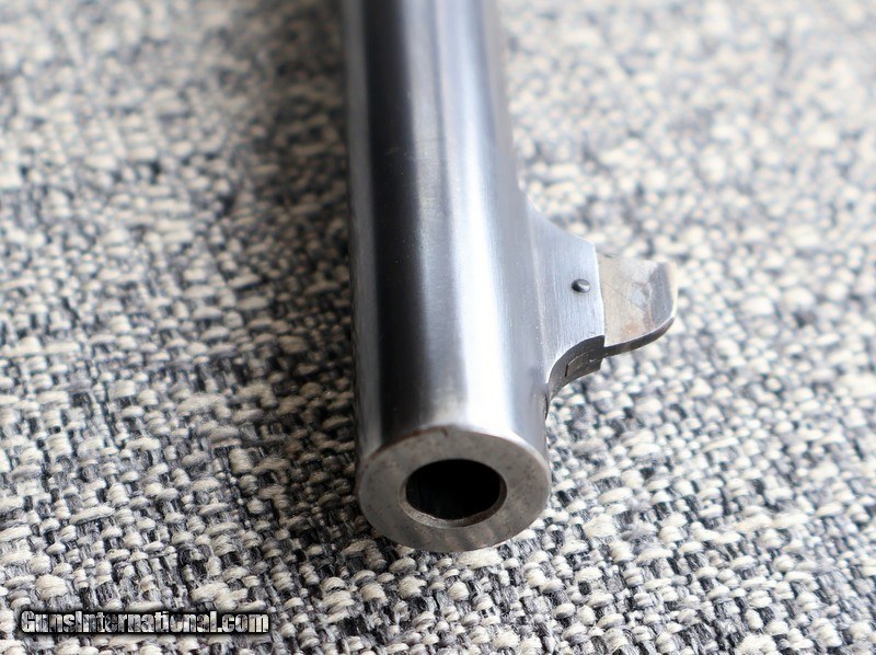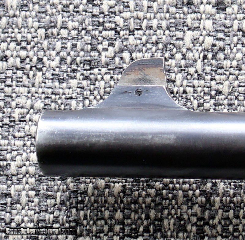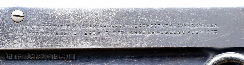 The overall condition of this Winchester 1895 carbine is fine considering its age. The barrel retains nearly all of its factory blue with some muzzle wear near the end. The receiver also displays the vast majority of its factory blue with some thinning and wear, especially along the high edges, as well as a saddle ring ghost and some small scratches which are insignificant. The stocks are in excellent condition and remain proud with some scattered light impressions from use. The bore is bright and shiny. The screw heads remain in fine, un-messed with condition. The carbine cycles fine with good lock up. There is a filled sling swivel hole present along the stock toe line but does not distract from the overall fine condition of this carbine.