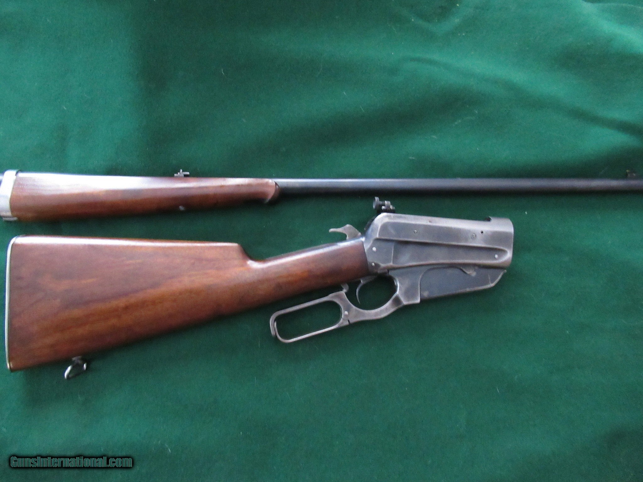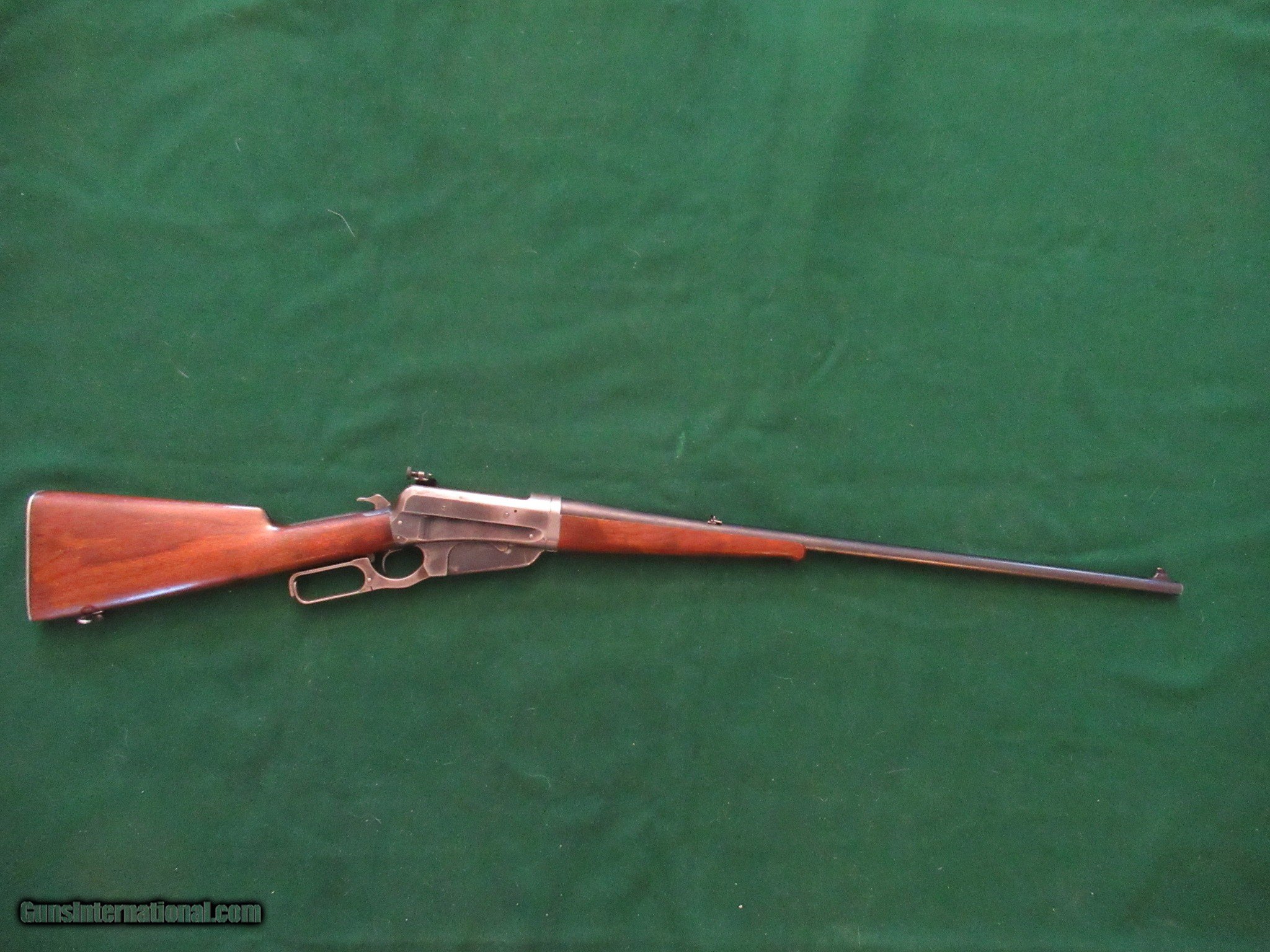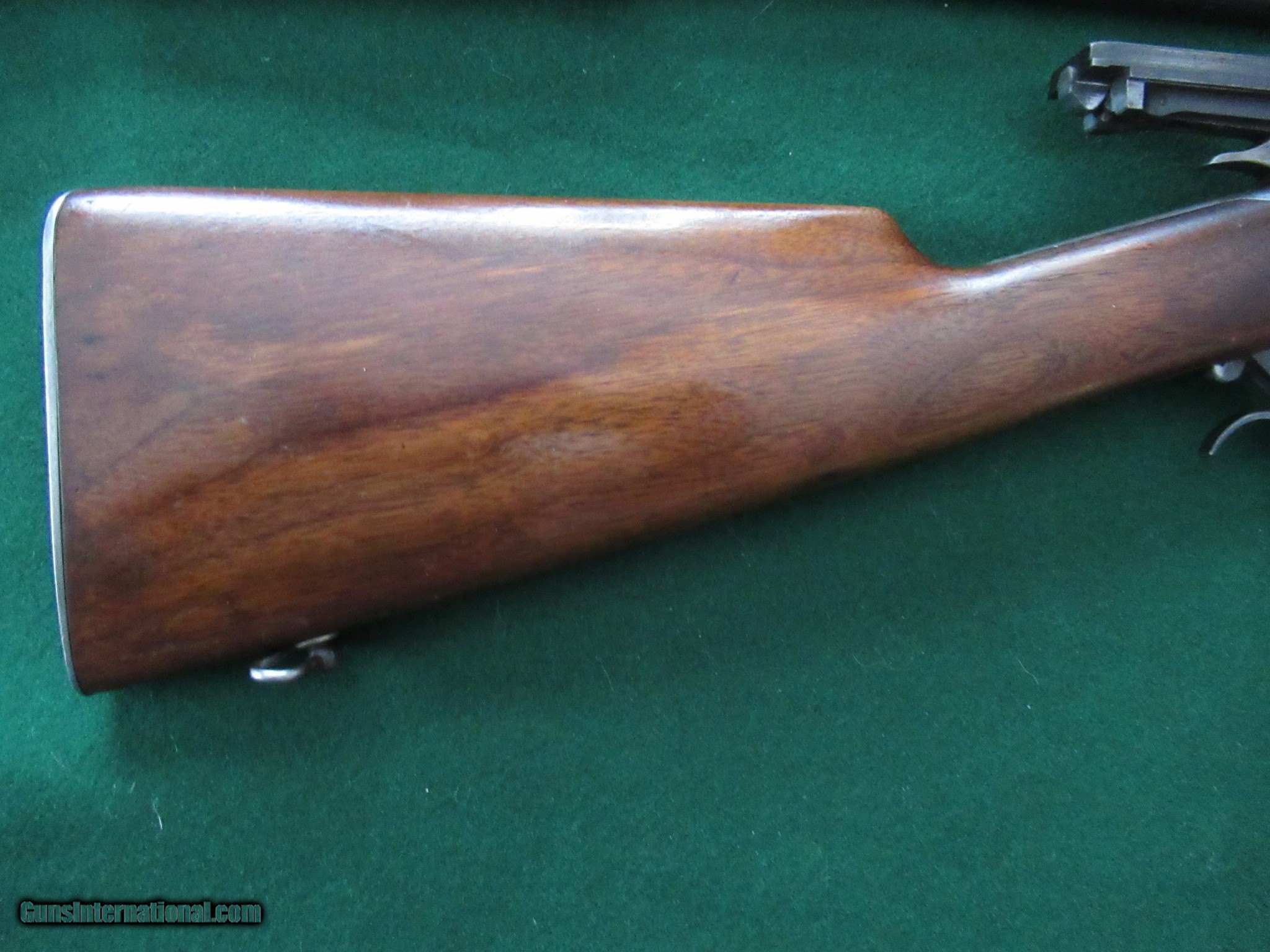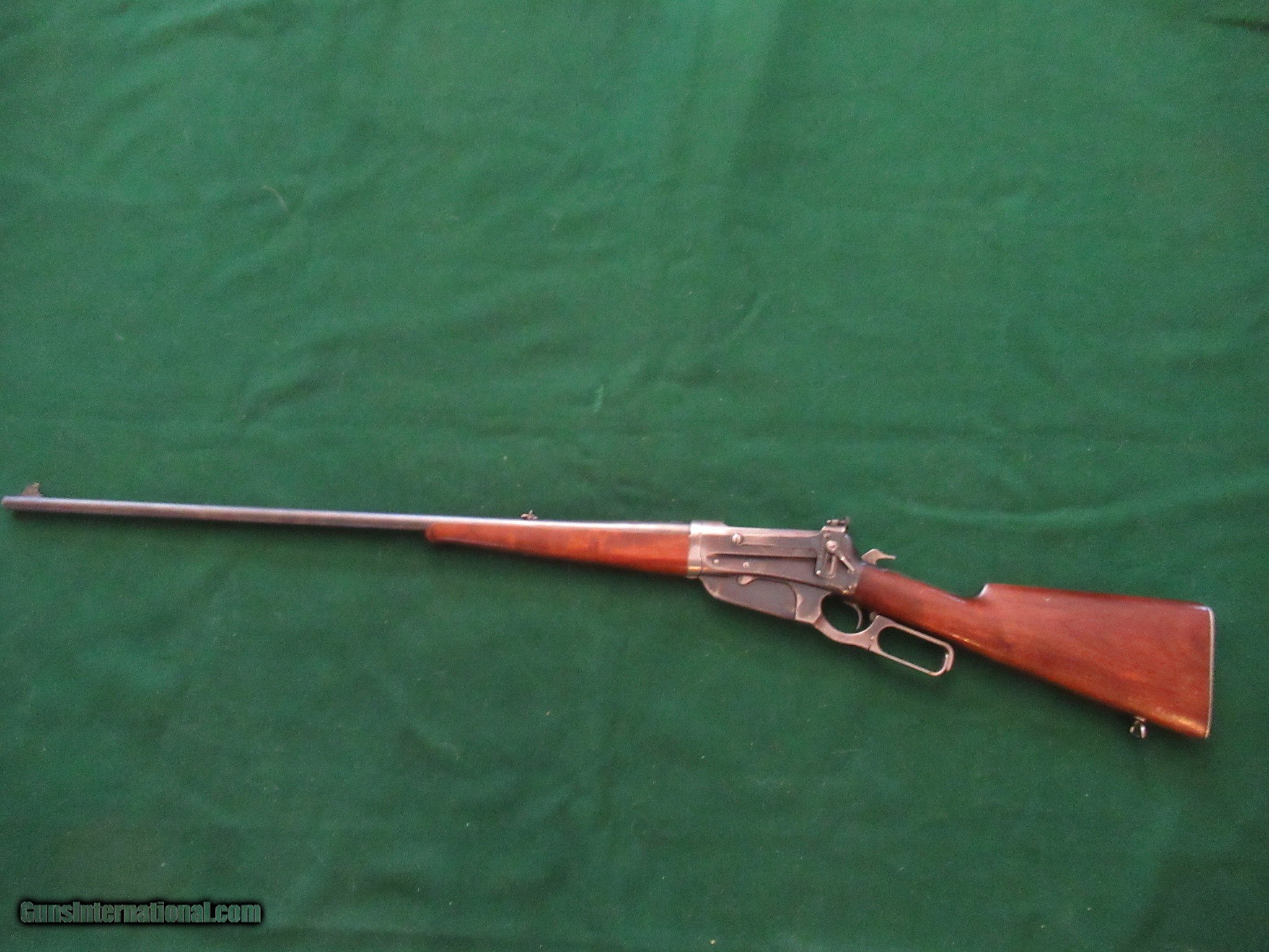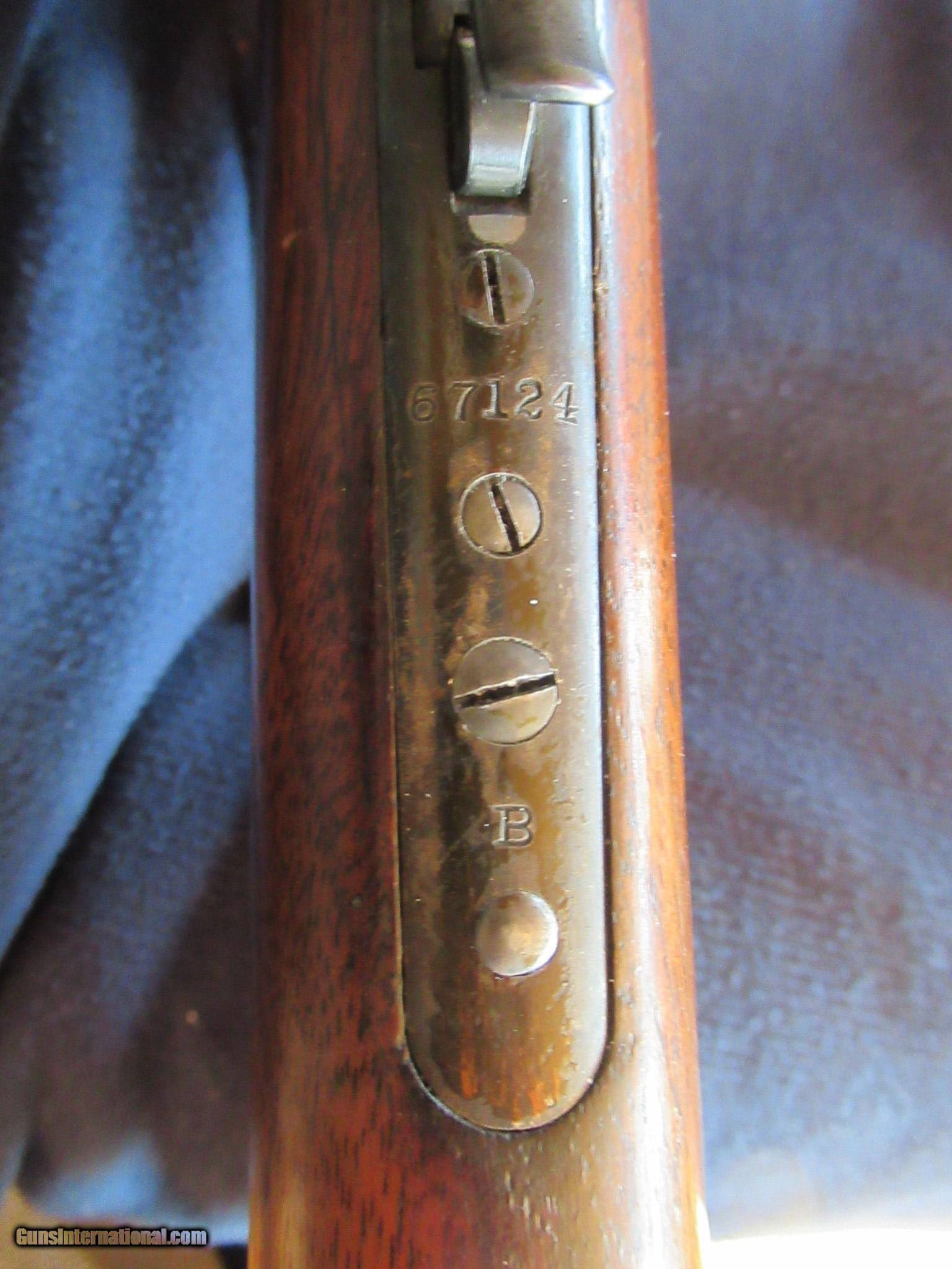 Description: 1895 Winchester in .30 US. Excellent mechanical condition with 90% barrel blue, 60% action blue and no mechanical modifications. It is all original with only the Lyman 21 sight added along with a Marble matching front sight. The action is smooth and locks up solid. The take down works fine and is real smooth and secure. The 28" barrel is bright with strong rifling and no hint of pitting or frosting. It is chambered for .30-40 Krag and correctly marked "30 US". It was built in 1909 in New Haven. It has a shotgun butt, clean wood with no damage other than some carry wear. Everything works the way it left the factory and it will make a nice addition to your collection as well as a fun shooting pierce. Please call Raff at 760 497 7836 if you have any questions and thank you for looking. SOLD! THANK YOU GREG! SOLD Curio/Relic: Yes Rifle Caliber: .30-40 Krag Manufacturer: Winchester Model: 1895 Serial Number: 67124 Barrel Length: 28 Condition: FINE Metal Condition: 90% Wood Condition: 90% Bore Condition: EXCELLENT Weight: 9 lb 4 oz Sights: Lyman 21 Manufacture Date: 1909 Item Location: Arizona |