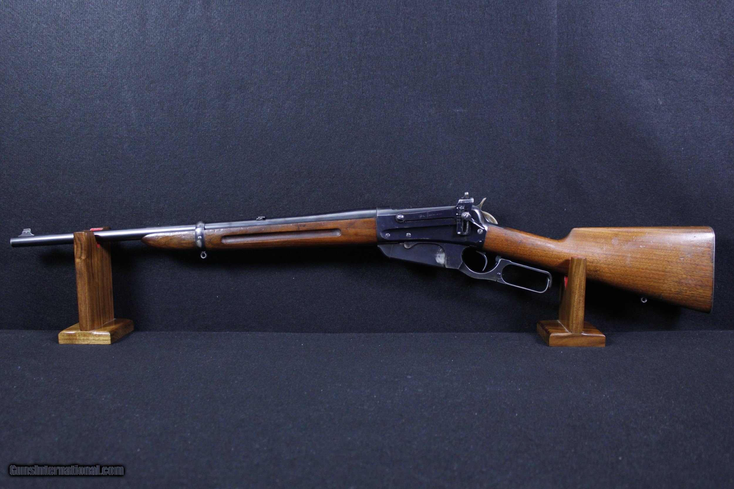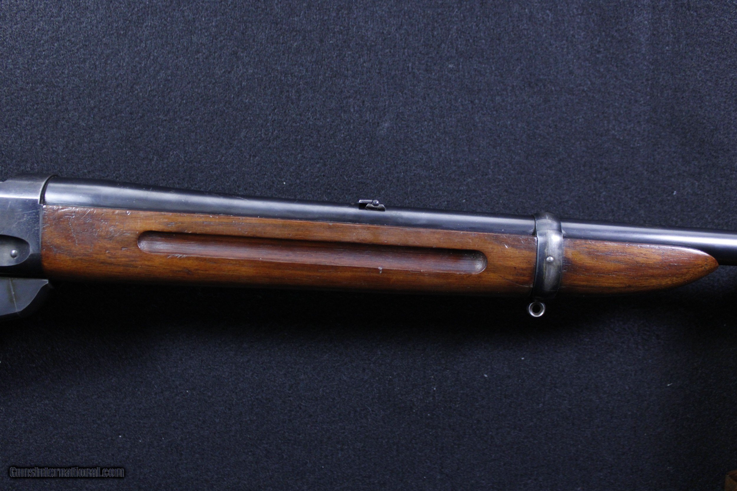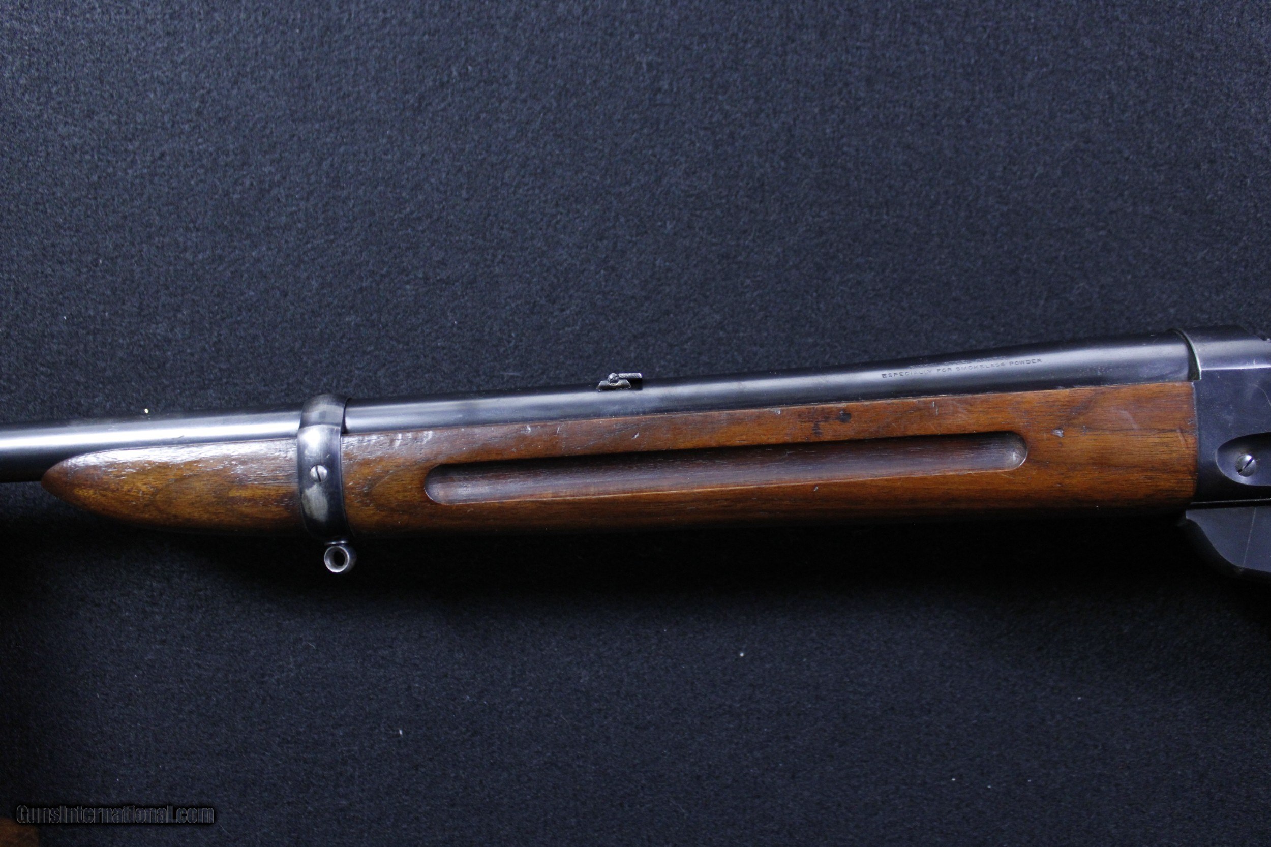 Description: Winchester 1895 Special Order Carbine .30 U.S. Army manufactured in 1904. Wood has minor handling marks throughout, no cracks, chips or missing pieces. 90% or better original blue remains. Bore is bright and clear. Comes with Lyman #21 Receiver Sight. Mechanically excellent. Dimensions are as follows; BBL. 22" WT. 7lb 14oz. DIM. 12 5/8" L.O.P. On Sale!! Was $8995 Now $7199.95 SOLD |