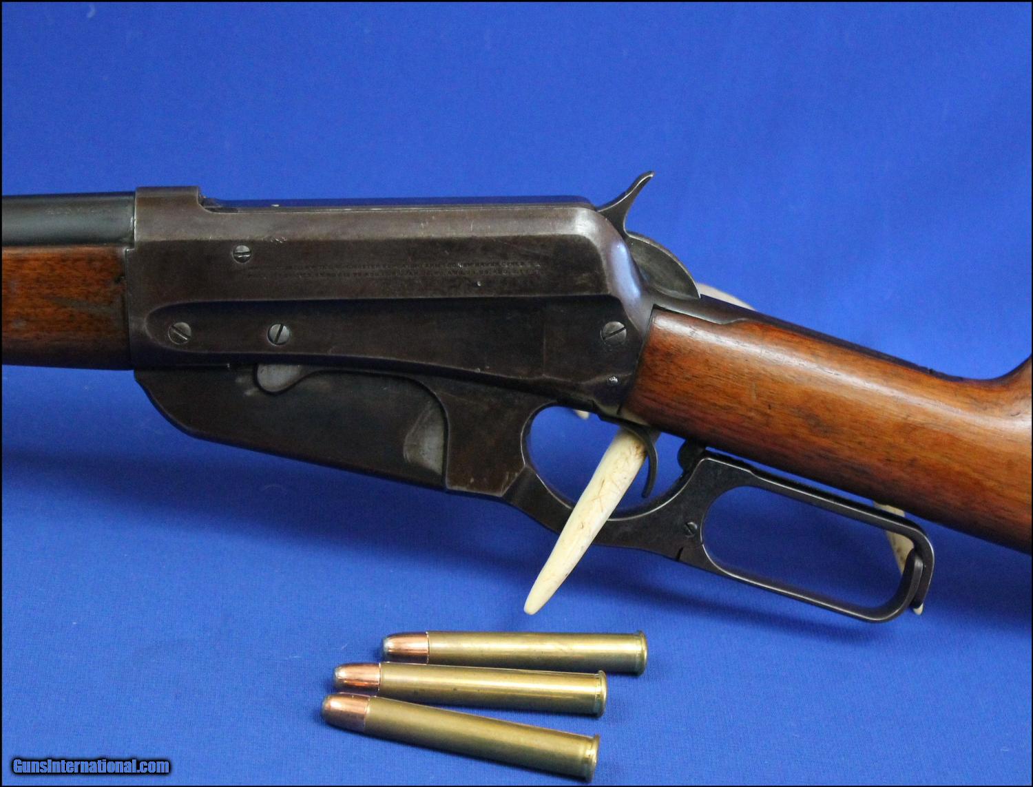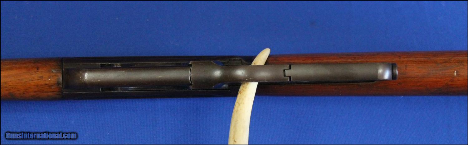 Description: Offered for your consideration is this vintage 1895 Winchester in Teddy Roosevelt's favorite African caliber, .405 W.C.F. The barrel is 24 inches with very good bore I would rate an 8 on a 1 to 10 scale. The front sight is a Winchester #21 with German silver blade, the rear is a Winchester #24G with 1901 patent date elevator. The barrel retains 90% blue with scattered light freckling, no pitting. The receiver is mechanically excellent, feeds, chambers and ejects smoothly. Full coverage of blue with areas trending to plum tint. The wood is solid and tight and stands proud above all metal surfaces. The finish looks to be factory at 90% with scattered light handling marks. The buttplate retains full blue coverage and indicates this fine 1895 Winchester has seen very little field use. Overall this is a 65-70% condition rifle with absolutely no issues! 20 rounds of Hornady factory ammo included. $50.00 insured shipping to your C&R or FFL. SOLD Curio/Relic: Yes |