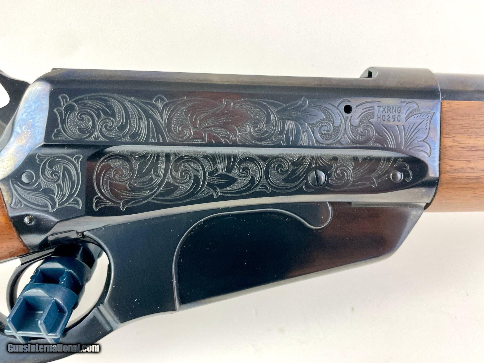 Description: Guns Listing ID: 551321 Winchester Model 1895 Texas Ranger Texas Rangers 200th Anniversary High Grade. As new, we believe un-fired. No box or documents. Absolutely gorgeous bluing and engraving. Overview Before there was a Texas, there were Texas Rangers. Formed by Stephen F. Austin, “The Father of Texas," in 1823 to provide protection to the families living in his colony; the Texas Rangers are America’s oldest state law enforcement agency. Over the course of 200 years, many of the actions carried out by this storied group of stalwart officers have become legend and forever immortalized in history. Winchester rifles, the Model 1895 among them, were among the tools utilized by generations of Texas Rangers in the course of their duties. This Winchester® Model 1895 Texas Rangers 200th Anniversary Commemorative High Grade Rifle celebrates the individual spirit and tenacity these famous officers are known for and their vital role in taming the great state of Texas and the American West. This rifle features rich bluing on the metalwork and extensive 200th anniversary engraving on the receiver and magazine. The Grade III walnut stocks have a rich satin finish and are not checkered – as were many of the working rifles of the era. The buttstock is adorned only with a steel butt plate and Texas Ranger star medallion. This rifle is available exclusively through Davidson‚s®, America‚s leading shooting sports wholesaler, who are also donating a portion of the proceeds of the sales to the Former Texas Rangers Foundation. \"Since its founding in 1971 as a 501c3 non-profit to support the efforts of the oldest officially recognized Texas Ranger Organization – the Former Texas Rangers Association, the FTRF has focused its sights on serving current and former Texas Rangers, their families and their rich and storied contributions to Texas history.\" For more information about the mission of the Former Texas Rangers Foundation and the history of the Texas Rangers, please visit ://trhc/. Model 1895 Texas Rangers 200th High Grade Features Steel receiver with polished blued finish and engraving commemorating the 200th Anniversary of the Texas Rangers Gloss blued finish barrel with precision button rifling Box magazine Top-tang safety Grade III/IV walnut stock with Texas Rangers badge medallion Straight grip Drilled and tapped receiver for side mount sight Marble Arms® gold bead sight and Buckhorn rear sight SOLD Manufacturer: WINCHESTER Model: 1895 TEXAS RANGER Caliber Info: .30-06 SPRG Condition: Used - Non-Certified Barrels: 22 BARREL Action: LEVER ACTION Finish: WALNUT |