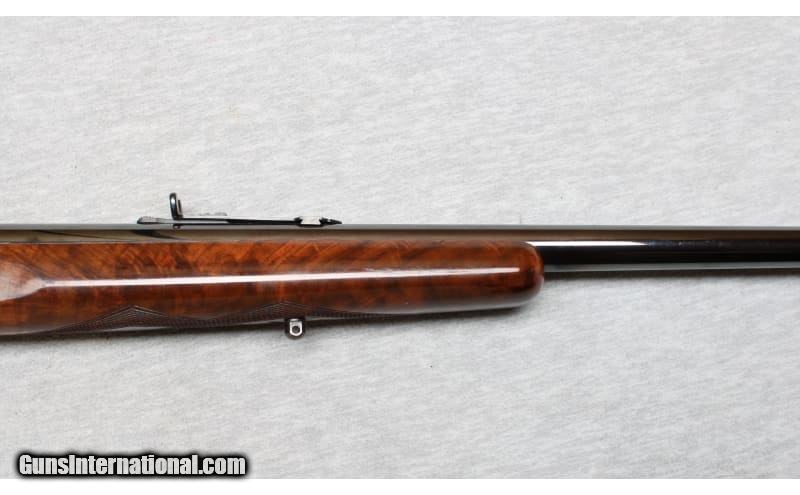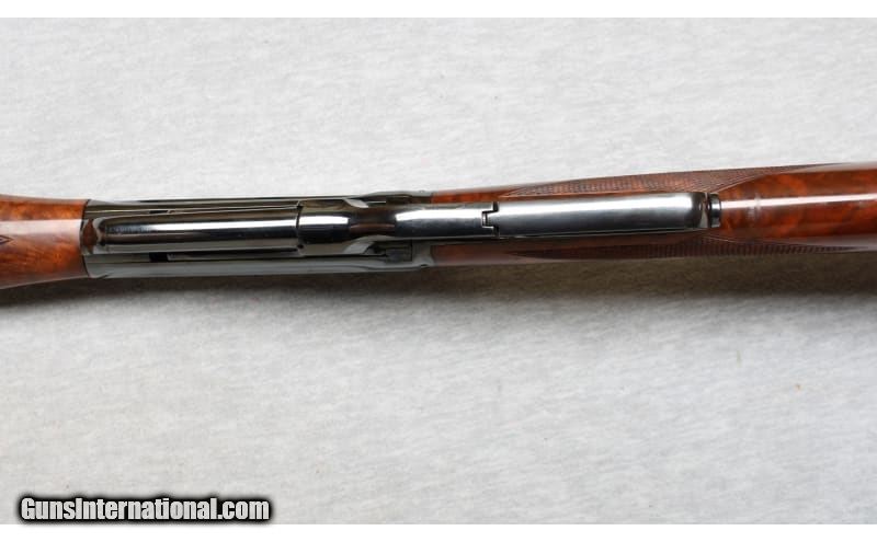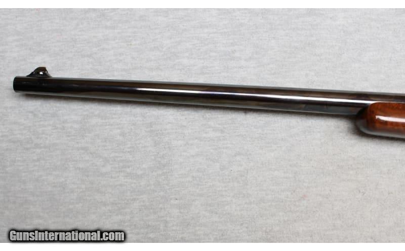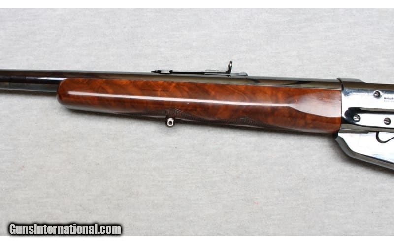 Description: Winchester Mode 1895 chambered in .30 Govt 03. The Model 1895 features a box magazine that instead of the tubular magazine design. This allows the rifle to safely chamber military and hunting cartridges with spitzer (pointed) bullets. The M1895, designed by John Browning, has the strongest action for a Winchester lever action rifle. The increased strength was needed to handle the increased pressures generated by powerful smokeless powder cartridges that were available. This rifle appears to be professionally refinished with a beautiful walnut stock and forearm, and a very deep blued finish. None SOLD Metal Condition: Excellent refinished finish Wood Condition: Excellent Bore Condition: Light frost with strong rifling Barrels: 24 Inches Triggers: Factory Stock Dimensions: LOP 13 inches Fore End: Checkered fancy walnut Butt Pad: Steel/checkered walnut Sights: Semi Buckhorn Item Location: La Vista, NE |