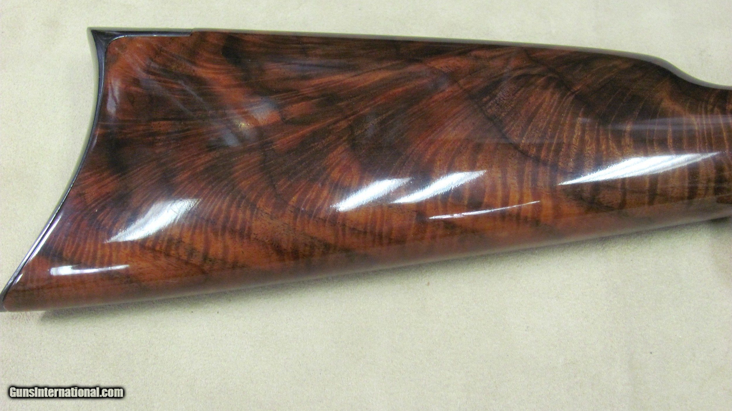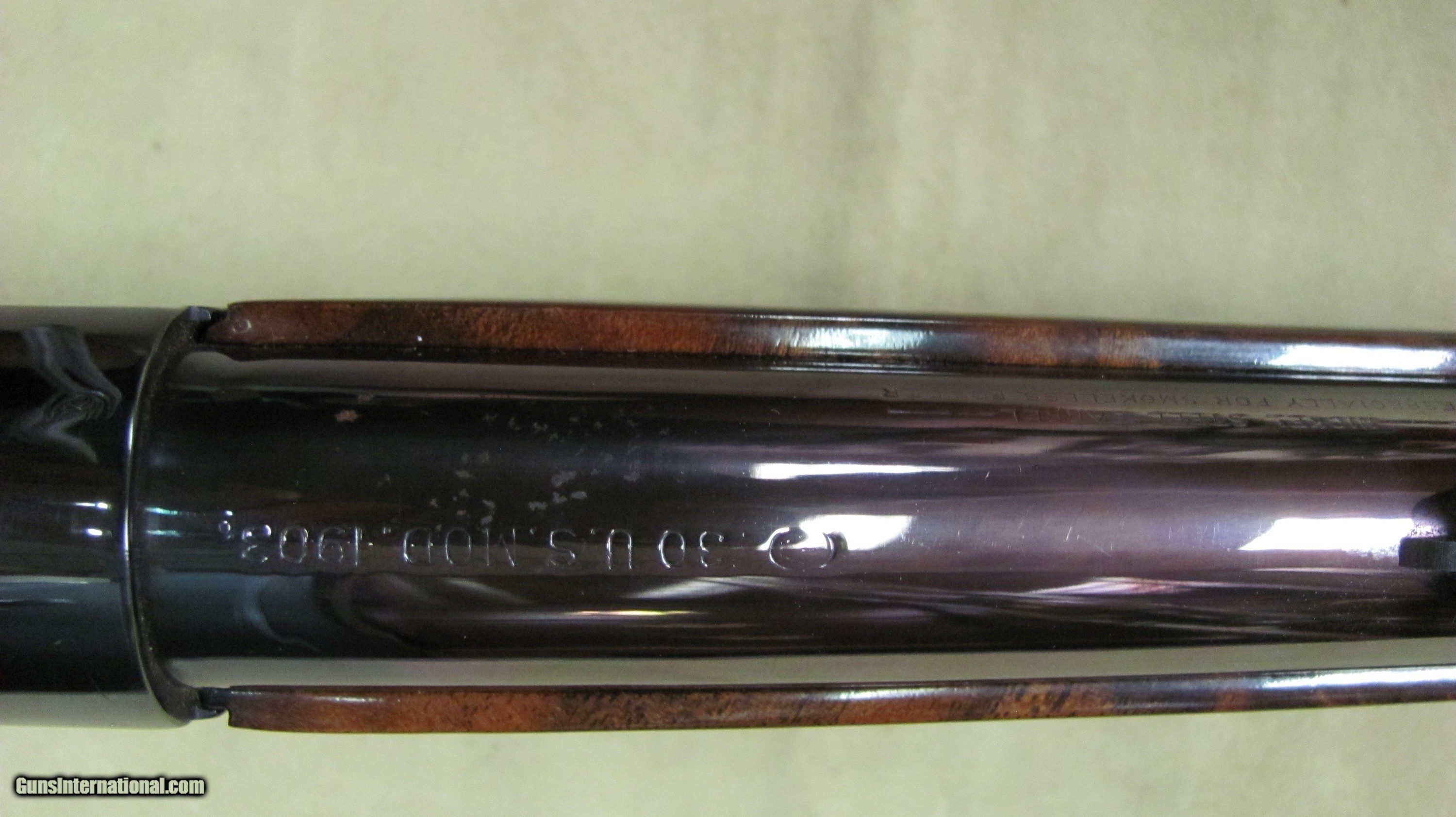 Description: Winchester Model 1895 lever action rifle with a 24 inch octagonal heavy barrel that has a very good bore. This rifle is chambered in .30 US Model 1903 (.30-03). This caliber replaced the .30-40 Krag in the Model 1895 for a short period until the .30-06 cartrige was developed. The stock and forend on this rifle are highly figured walnut in perfect condition. The receiver and barrel are in very good condition having been professionally reblued sometime in the past. SOLD Curio/Relic: Yes Rifle Caliber: .30-03 Manufacturer: Winchester Model: 1895 Lever Action Serial Number: 58801 Barrel Length: 24 Inches Condition: Very good Metal Condition: Very Good Wood Condition: Excellent Bore Condition: Very Good Action: Lever Action Weight: 8 lbs. 10oz. Manufacture Date: 1908 |