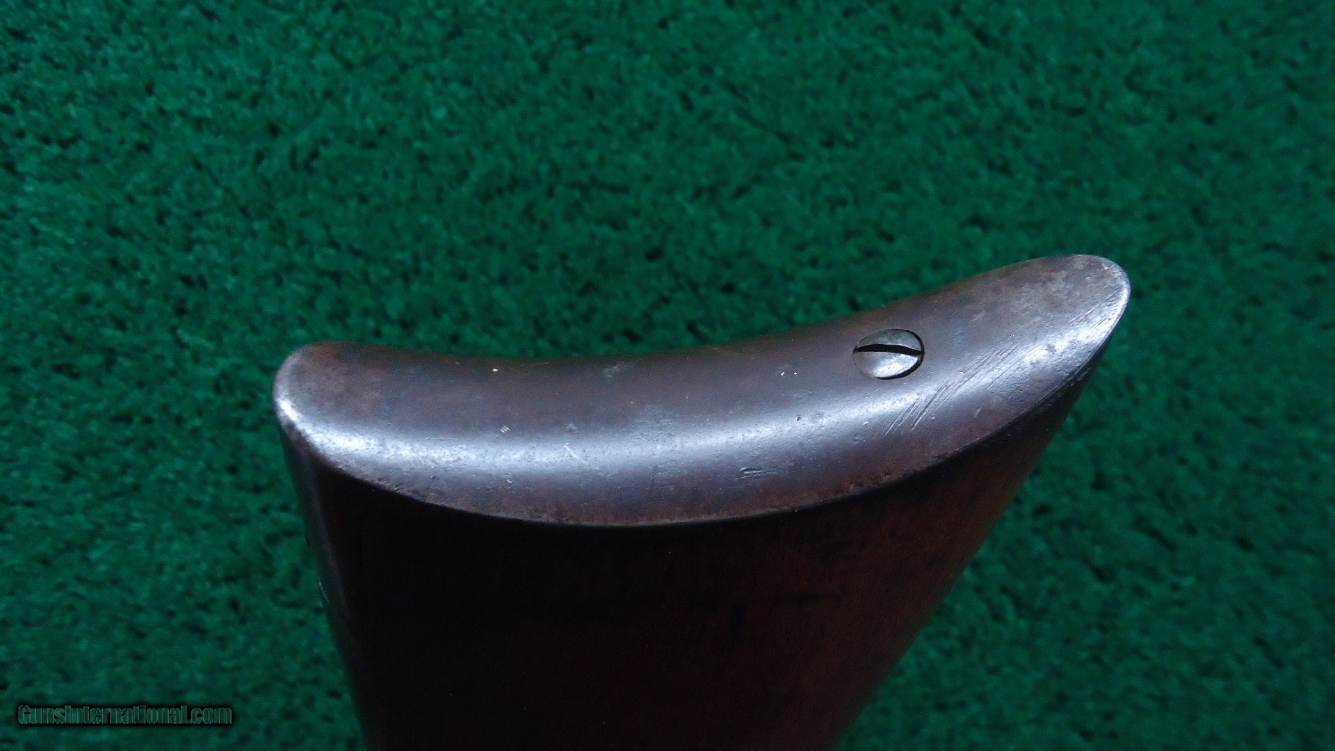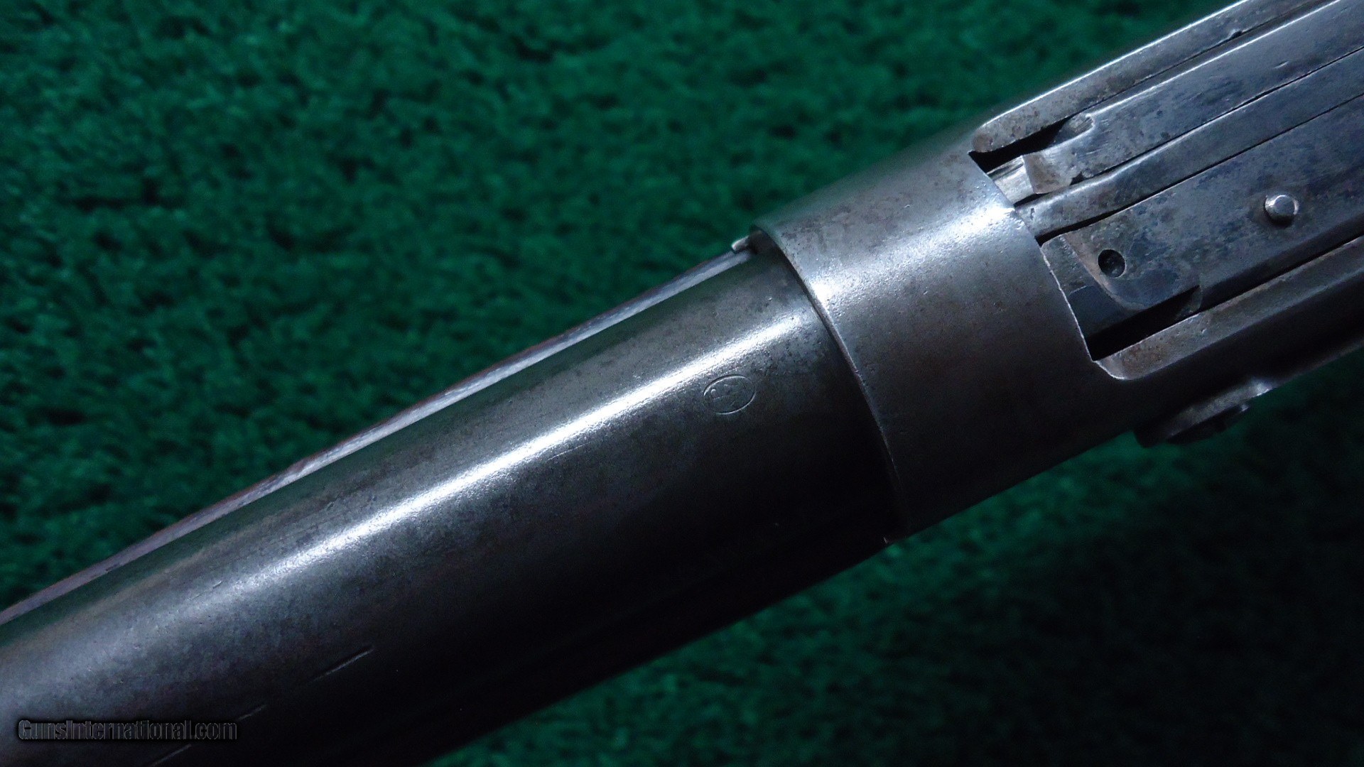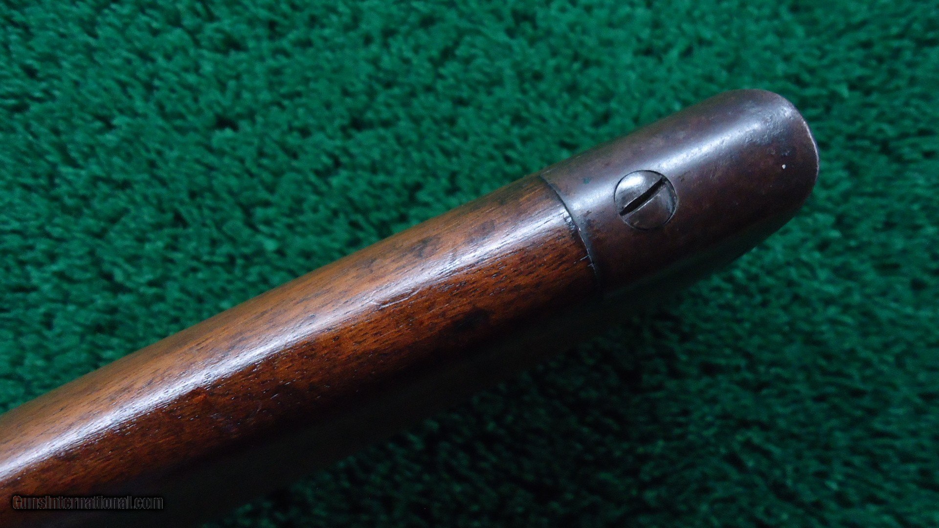 Description: 24 inch round tapered barrel chambered in the desirable 405 WCF caliber. Dark bore has good rifling and needs a cleaning. Sights include ramp mounted Lyman No. 4 with bead missing and a flat top sporting rear sight with a "Climibin Lyman" No.21 receiver sight. Good amount of thinning blue on the barrel with some gray showing through near the frame. Receiver is mostly a gray/brown. Ebony tipped forearm has a glued repair near the tip of the left side. Buttstock has typical handling dings and a steel crescent rifle buttplate. Stocks have been refinished at some time. This gun was manufactured in 1899. The 405 Win. was the most powerful lever-action cartridge of its day. Theodore Roosevelt famously referred to this rifle as his "'medicine gun' for lions." Leroy Merz Antique Firearms specializes in antique and vintage Winchesters and other fine American firearms. Since 1965 Mr. Merz has taken part in the world of firearms and has been a contributor to many well known reference books. We have hundreds of additional guns in every price range at our home online. Search for Merz Antiques in google. SOLD Curio/Relic: Yes Rifle Caliber: .405 Winchester |