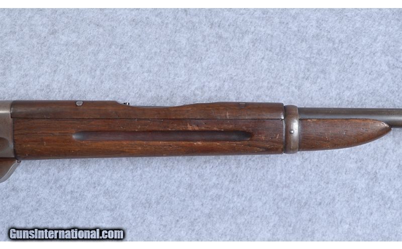 Description: The Model 1895 was the last John M. Browning design for Winchester. An important historical distinction is that the Model 1895 was designed and engineered to accommodate a new generation of military cartridges utilizing smokeless powder. Another significant feature was the innovative non-detachable "box magazine." This design made it possible to chamber in the revolution of more powerful pointed bullets. Winchester was a tubular magazine company until the Model 1895 came along. It was the first box magazine rifle developed by Winchester. This Model 1895 was manufactured in 1922. It has standard receiver markings with a factory proof on top of the chamber and the upper tang has the three-line model/trademark information. It has a blade front sight. The ladder rear sight has been removed and it has an adjustable Lyman peep sight in the rear. The saddle ring and stud are mounted on the left side of the receiver. It is mounted with a straight grip walnut stock with military style grasping grooves, handguard and crescent buttplate with cleaning rod compartment (cleaning rod not included). The bluing is about 20%, but the metal is clean. The bottom of the butt stock has 38 notches carved into the stock. See photos. Chambered in 30-06, this highly collectible 1895 would also make a great hunting rifle. .30-06 Springfield SOLD Curio/Relic: Yes Metal Condition: Bluing is approximately 20% Wood Condition: Very good Bore Condition: Very good Barrels: 22 Stock Dimensions: 12 1/2" Length of Pull Fore End: Two-piece walnut fore end with military style finger grooves Butt Pad: Crescent metal butt plate with compartment for cleaning rod (not included) Weight: 8.25 lbs Sights: Lyman adjustable peep sight with blade front sight Item Location: Boise, ID |