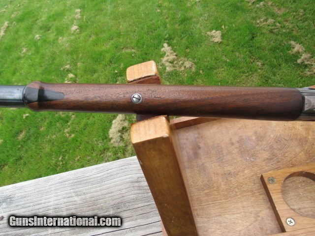 Description: Winchester Model 95 30-06 Rifle serial # 411462 manufactured in 1924 having the standard 24" round barrel with ramped front sight, solid frame, crescent butt. Has special order Lyman No. 4 hunting front sight and correctly marked Climbin' Lyman Model 21 receiver sight marked WR (correct marking for this model). Standard stocks show typical use marks and a repaired chip at upper left of butt by tang, otherwise sound, no extra holes, never sanded or refinished. Fore end has correct schnabel tip with ebony insert. Actioni is tight and strong, feeds, functions and fires properly. Bore is strong, bright with sharp rifling, a 9 of 10. Barrel retains 65% original dulling blue and has a blank in the rear seat after someone removed the rear sight. Nice shooter, hunter and collector Model 95 in a great caliber. No international sales and no sales to California. Requires FFL or C&R for shipping. Payment by bank check, money order, personal check and all major credit cards with no extra credit card fees. 3 day non-firing inspection. Buyer pays return shipping. Layaway available with 25% down and equal payments over 90 days. Trades considered. Thanks for looking. SOLD Curio/Relic: Yes Manufacturer: Winchester Model: 95 Serial Number: 411462 Caliber Info: 30-06 Barrels: 24" round Barrel Type: Nickel steel Action: Lever Triggers: Standard/plain Manufacture Date: 1924 Item Location: New York |