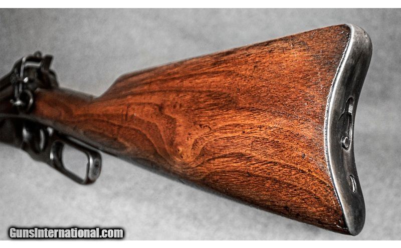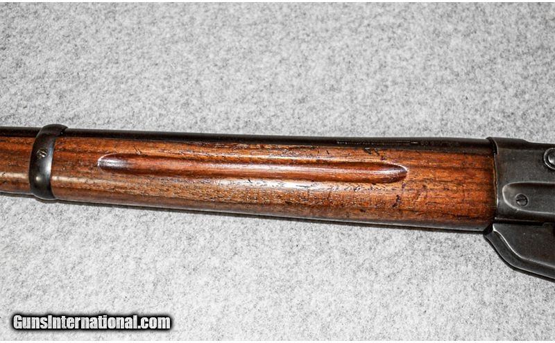 Description: Saddle ring carbine. Manufactured in 1923. The Model 1895 was the first Winchester rifle to have a box magazine under the action instead of a tubular design. This made the rifle safely able to chamber spitzer style bullets. This model was also the last of the lever action rifles to be designed by John Browning. It is considered the strongest lever-action rifle to be produced by Winchester. .30-06 Springfield SOLD Curio/Relic: Yes Metal Condition: Very good Wood Condition: Very good Bore Condition: Very good Barrels: 21.5 Butt Pad: Metal plate Weight: 8.25 lbs Sights: "Elevator rear sight, fixed post front. Item Location: Lone Tree, CO |