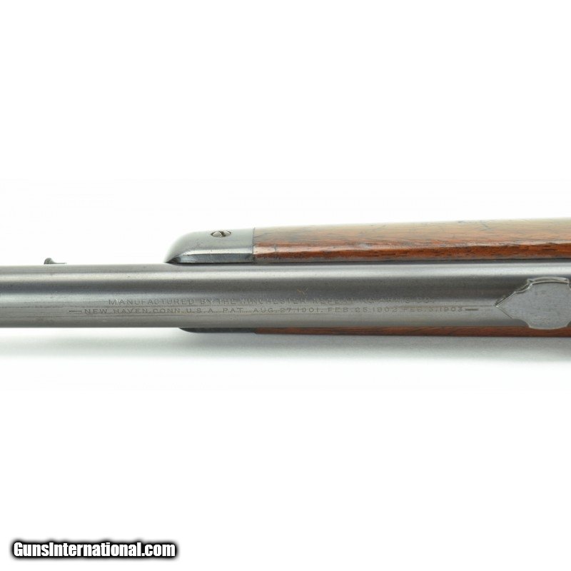 Made in 1904, .22 Win Auto caliber with 20"" barrel. Bore is excellent. Semi-Automatic rifle with 85% original blue. Wood is very good with minor nicks and dings. Very good overall condition.