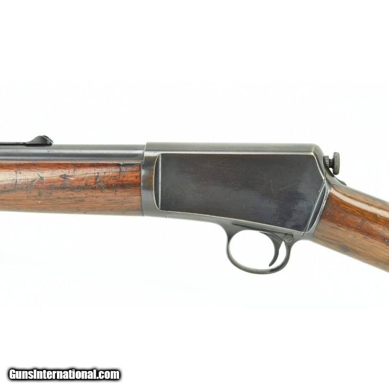 Description: " SN: 10842 Made in 1904, .22 Win Auto caliber with 20"" barrel. Bore is excellent. Semi-Automatic rifle with 85% original blue. Wood is very good with minor nicks and dings. Very good overall condition. SOLD |