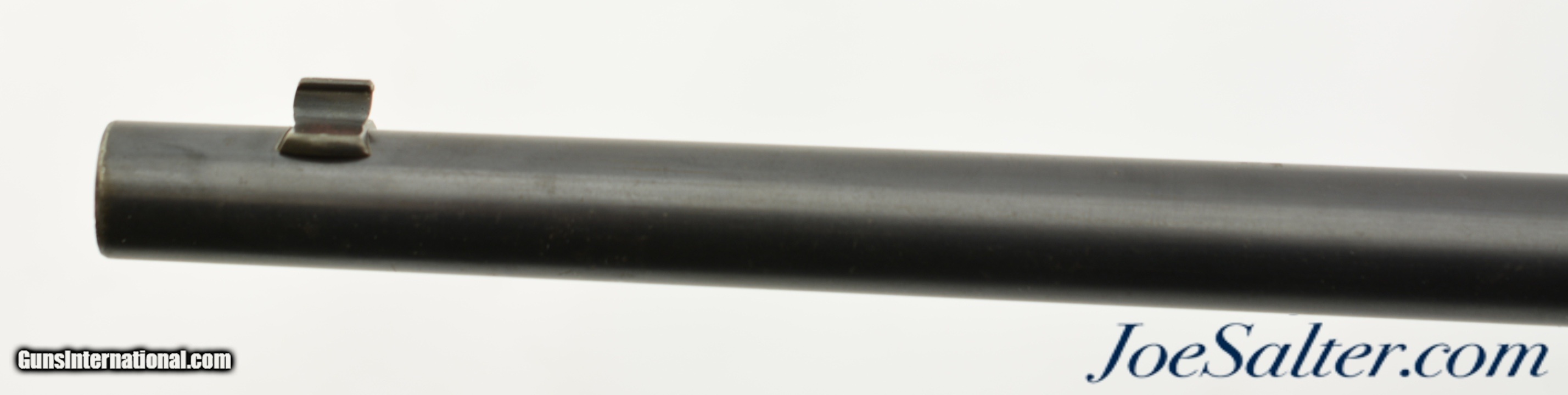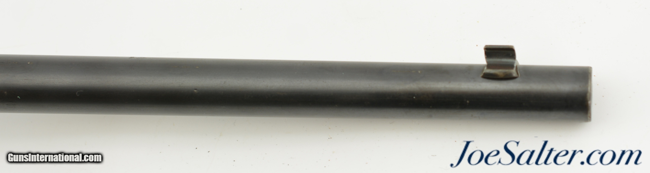 Description: Serial #2966, .22 Win Auto, 20 inch barrel with a bright, excellent bore. This is the Winchester Model 1903 semi-automatic rifle manufactured in 1903 that was later proofed in London bearing the provisional barrel and view mark proofs. The first year rifle remains in excellent condition with the barrel having about 85-90% blue with scattered use marks and the receiver having a mixture of mottled blue and gray with a later applied finish. The stock is solid and in excellent condition and the forearm shows an old repair to a crack that ran with the grain along the left side. A nice example of a first year gun that has travelled far and would make an excellent candidate for full restoration. FFL or C&R SOLD Curio/Relic: Yes |