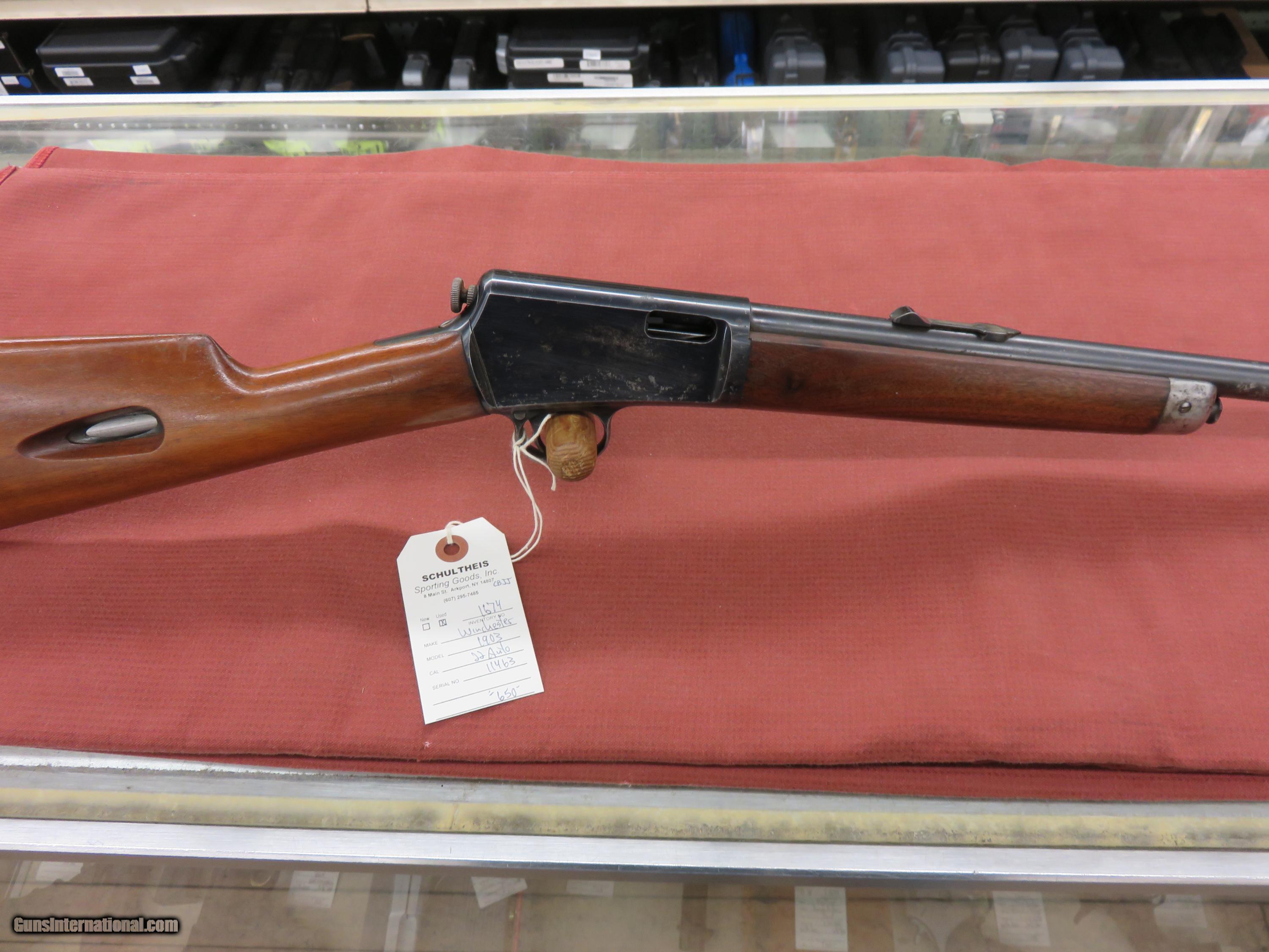 Description: Winchester 1903, 22 Auto, #11XXX, 1905 Mfg. Excellent bore. All original. The left side of the gun is 95% blue. The right side had some rust & is 80% blue. Clean, original wood varnish. SOLD Curio/Relic: Yes |