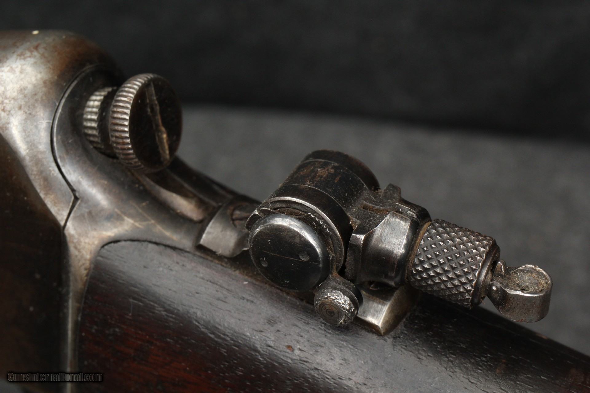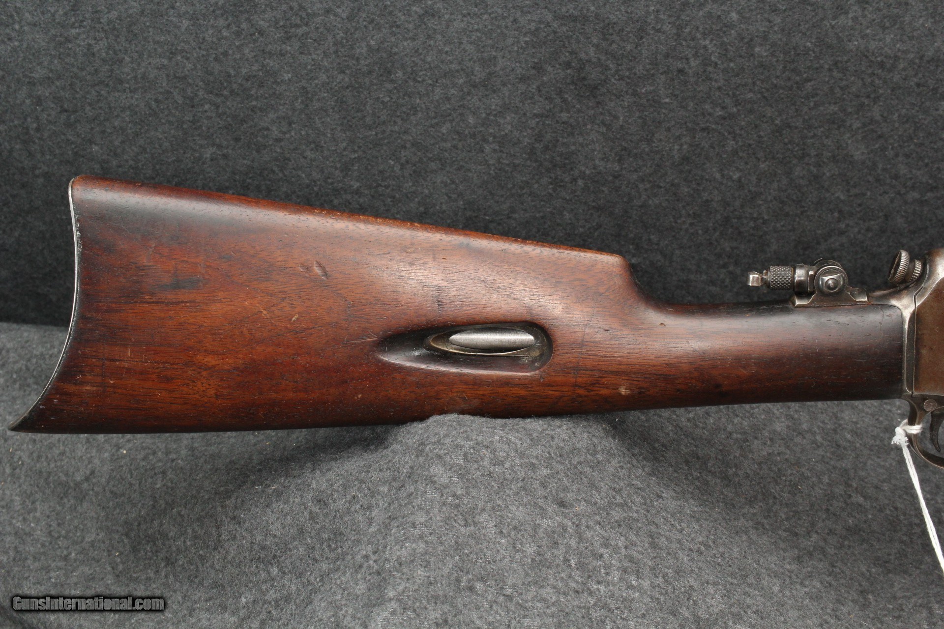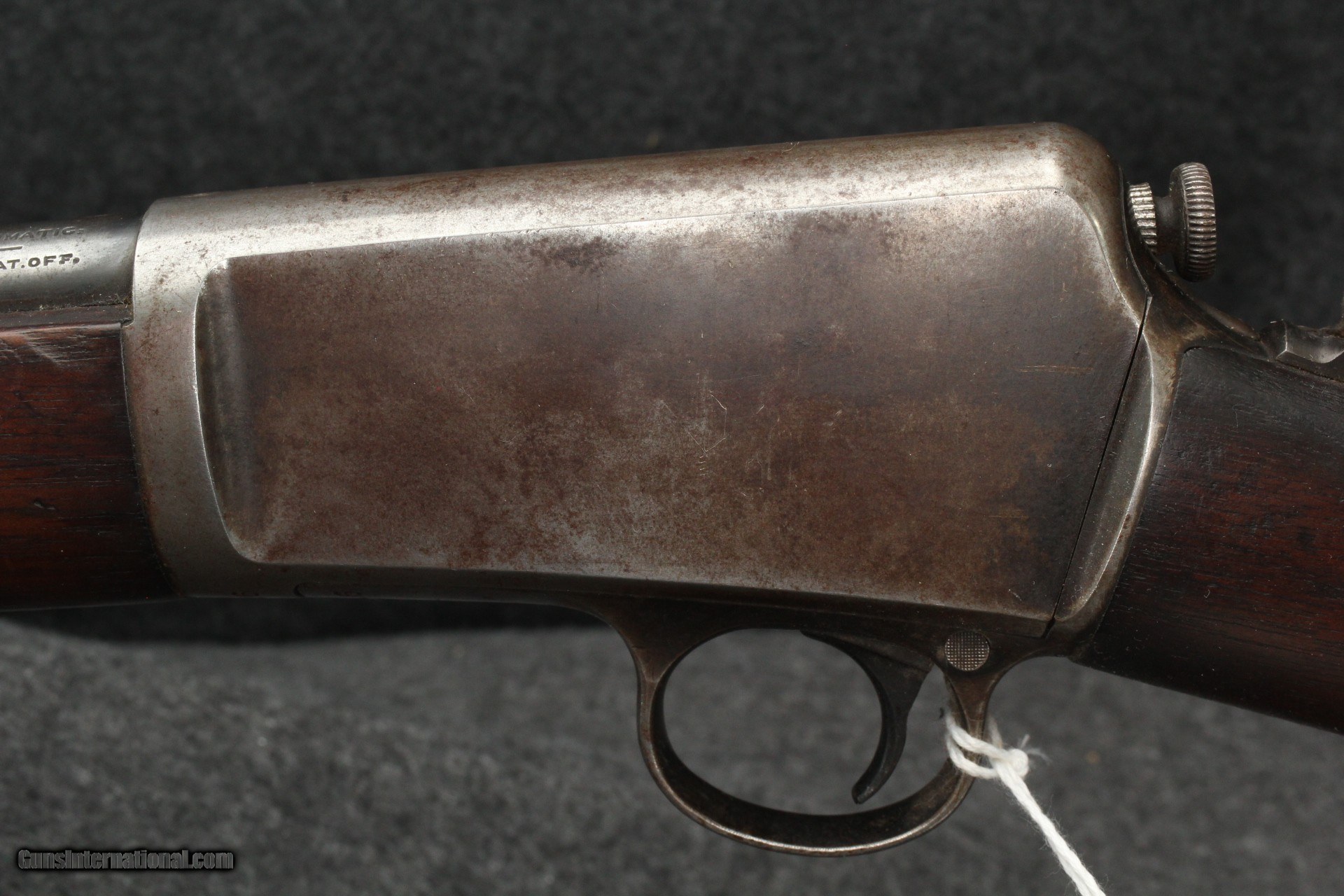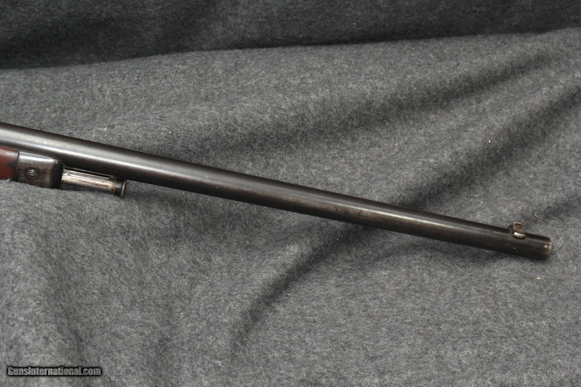 Description: 22 Winchester Automatic, mfg 1925. Serial number 1161XX. Appears to be all original. Correct era peep sight, been with gun for a long time. Marbles fold-down rear sight for use with peep. Wood is solid with oil staining at head. Shows age appropriate wear/marring, no abuse or cracks. Metal shows similar wear, 80% on barrel, action has turned plumb brown with 40% remaining blue. Forging striations showing on right side Bore is very good, shiny, no visible pitting. Mechanically excellent. Please add $40.00 for shipping and insurance. Will ship to C&R. SOLD Curio/Relic: Yes Rifle Caliber: .22 Winchester Automatic |