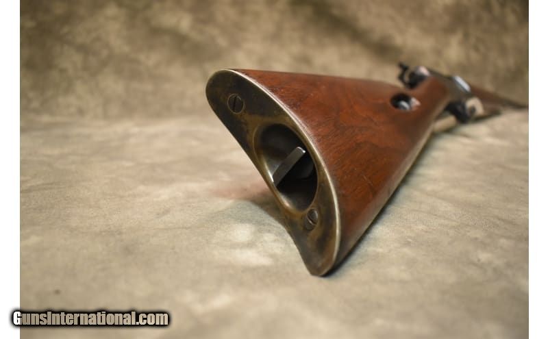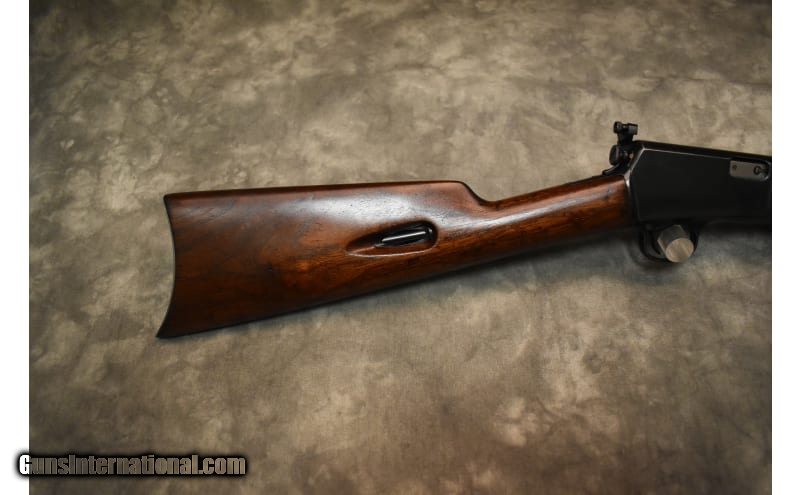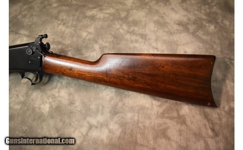 Description: Winchester 1903 .22 Auto The serial number indicates that this rifle was built some time in 1919 to 1921. The metal is in great condition with some light scuff marks on the left and right sides of the receiver as well as the rear of the top side of the receiver. There is also some wear on the muzzle around the crown. The butt plate also has a good portion of the bluing worn off, but there are little to no signs of rust though. The wood is in good condition as well besides a small gouge in the bottom of the hand guard and another one near the toe of the stock on the left side. There are also some minor bumps and scratches throughout the furniture from use. .22 Autoloading .22 Autoloading SOLD Chambers: .22 Auto Metal Condition: Good Wood Condition: Good Bore Condition: Bright Barrels: 20 inch Stock Dimensions: Fixed Wood Fore End: Wood Smooth Weight: 5 Lb. 8 Oz. Sights: Peep Sight Item Location: Springfield, MO |