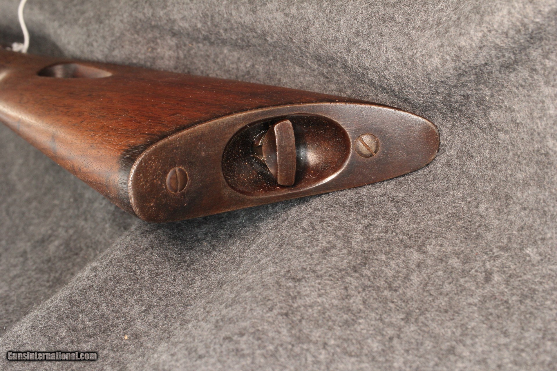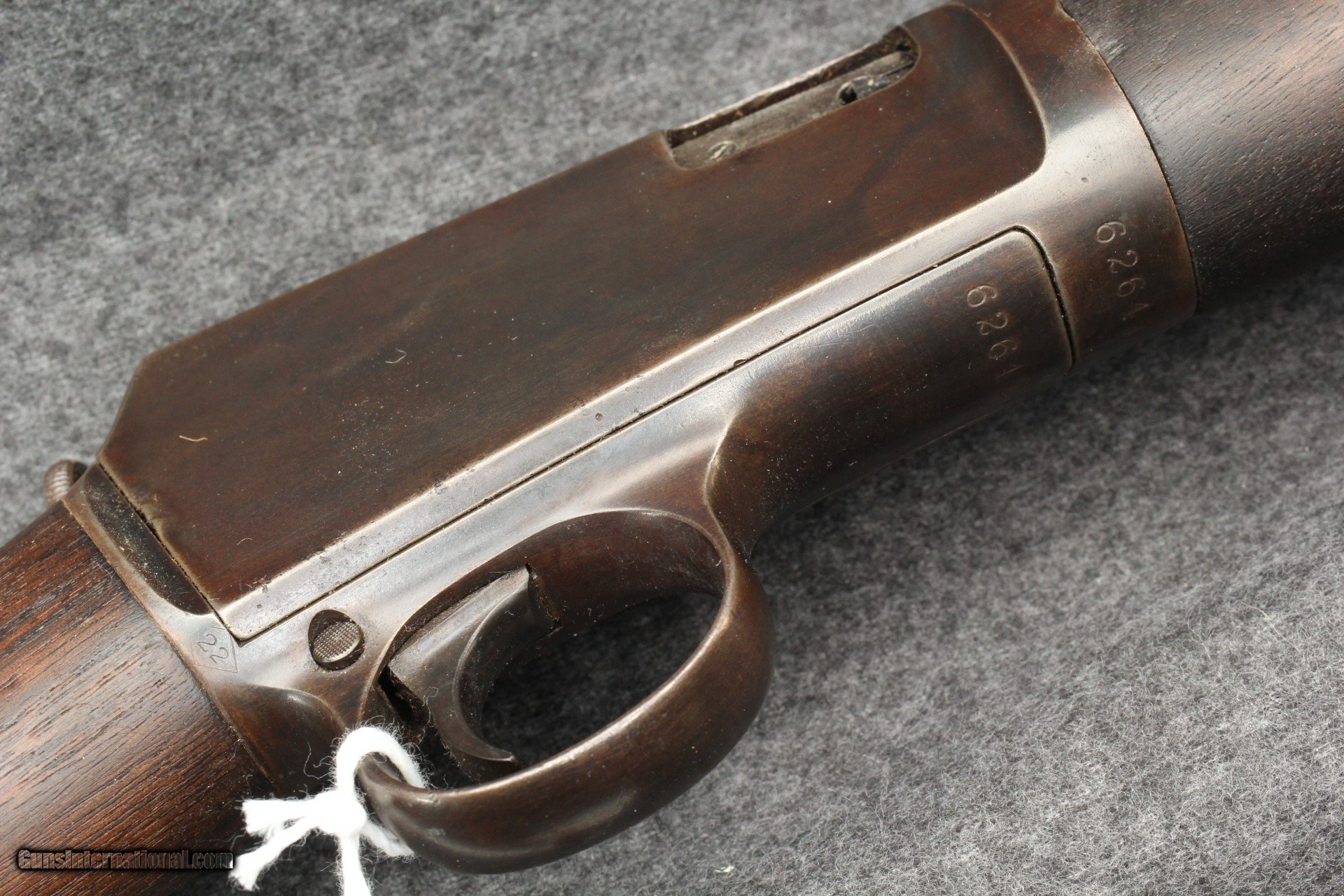 Description: 22 Auto (not lr). Serial number 626XX. Appears all original. Stock may have been cleaned. Metal turning to plumb. Small chips and cracks at toe, approx 2" crack at head. Bore is fair-good, shows wear and light frosting. More photos on request. Please add $45.00 for shipping and insurance. Will ship to C&R. SOLD Curio/Relic: Yes Rifle Caliber: .22 Winchester Automatic |