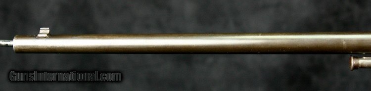 Description: .22 Win auto, #59911, 20 inch barrel, blue finish, walnut stock and forarm, checkered pistol grip, no checkering on forearm, original sights, circa 1910. Condition: very good bore, 60% blue overall thinning and turning brown, wood is very good with a layer of finish added, chip at toe of stockvery good mechanically, excellent marks. SOLD Curio/Relic: Yes |
