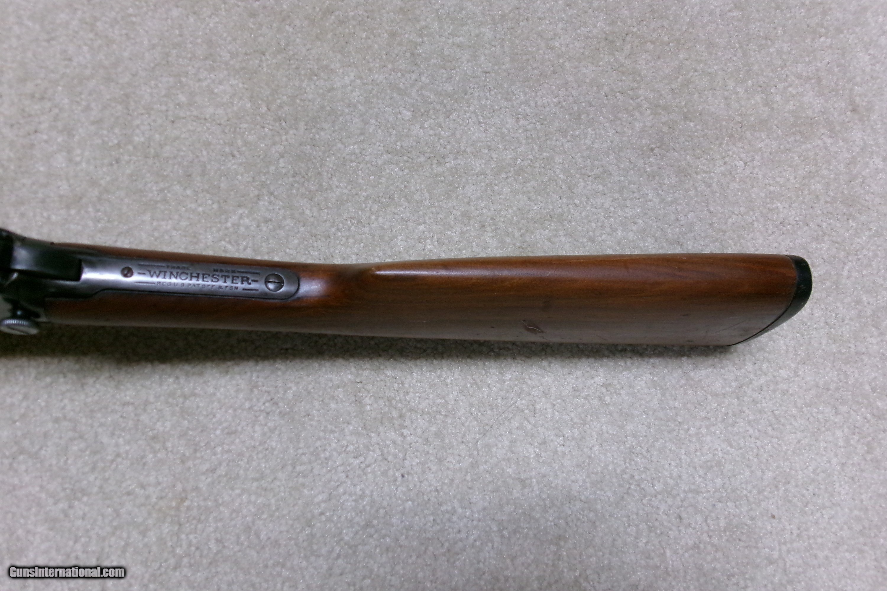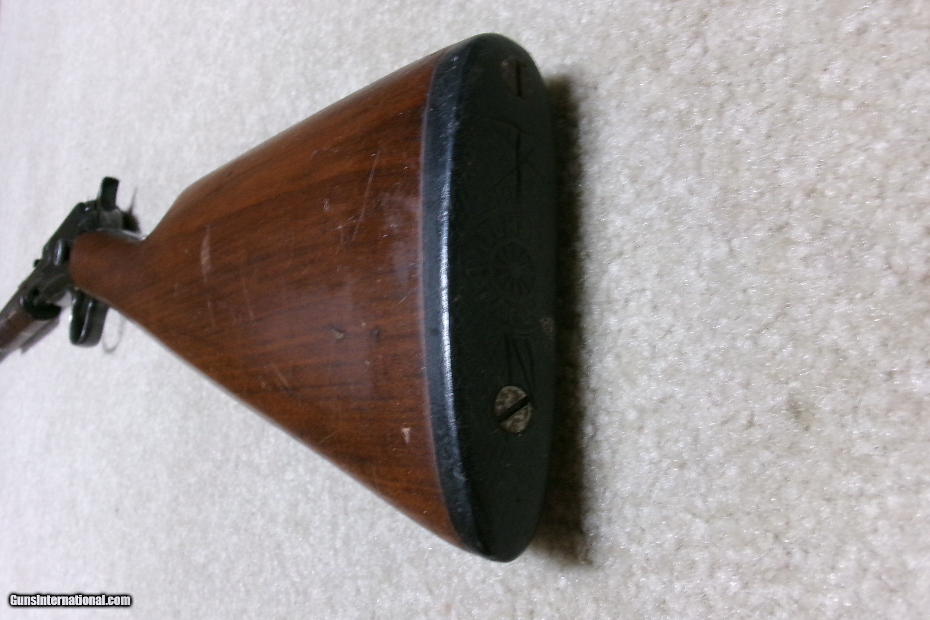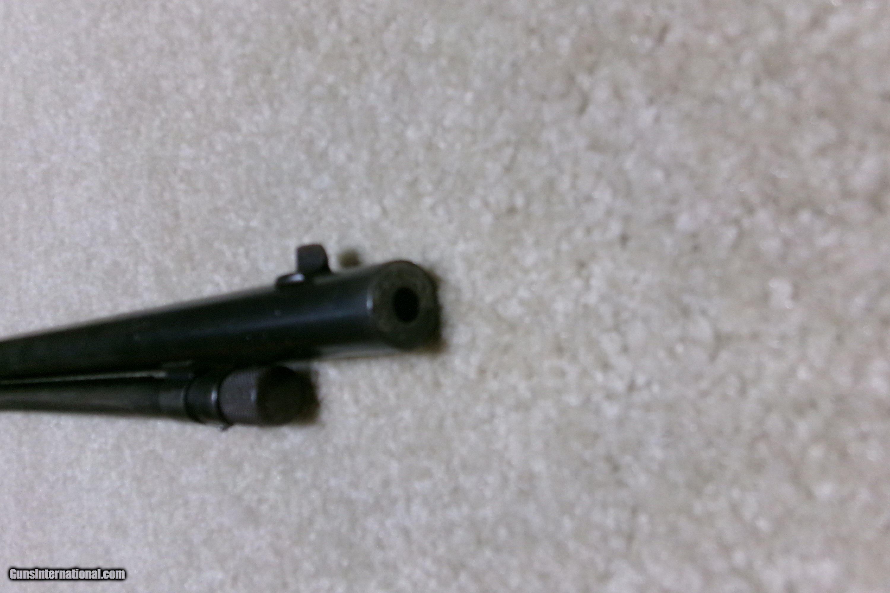 Description: VERY FINE MODEL '06 PUMP RIFLE IN .22 SHORT, LONG & LONG RIFLE, #662XXX, MADE1928. This is an interesting model that was actually a scaled down Model 1890 for the "Boys' Rifle" market. It would be a lucky kid to receive one of these as a gift instead of the typical single shot .22 most kids got! Usually these are found in rough condition, having been "loved to death" by their original owners. this one shows fine wood with only light handling. The barrel retains fine blue with only very minor scuffing/dulling. The mag tube blue is aged a bit more with a good bit of uncleaned plum/brown mixing mainly on the lower 2/3. Original sights and exc. markings. The receiver shows good bright blue with a little thinning on the sides and exc. blue on the bolt. and receiver ring etc. The upper and lower tangs are gray from handling. It has the correct Winchester embossed hard rubber butt plate, strong safety half-cock and tight action with matching numbers and tight takedown. The bore is only a little dark with good rifling and some light surface scattered pitting- better than usually found on these. Original small buckhorn rear sight with small blade front. Normally not seen with this much finish. SOLD Curio/Relic: Yes Rifle Caliber: .22 Long Rifle Manufacturer: WINCHESTER Model: MODEL '06 Serial Number: 663XXX Barrel Length: 20 Condition: FINE |