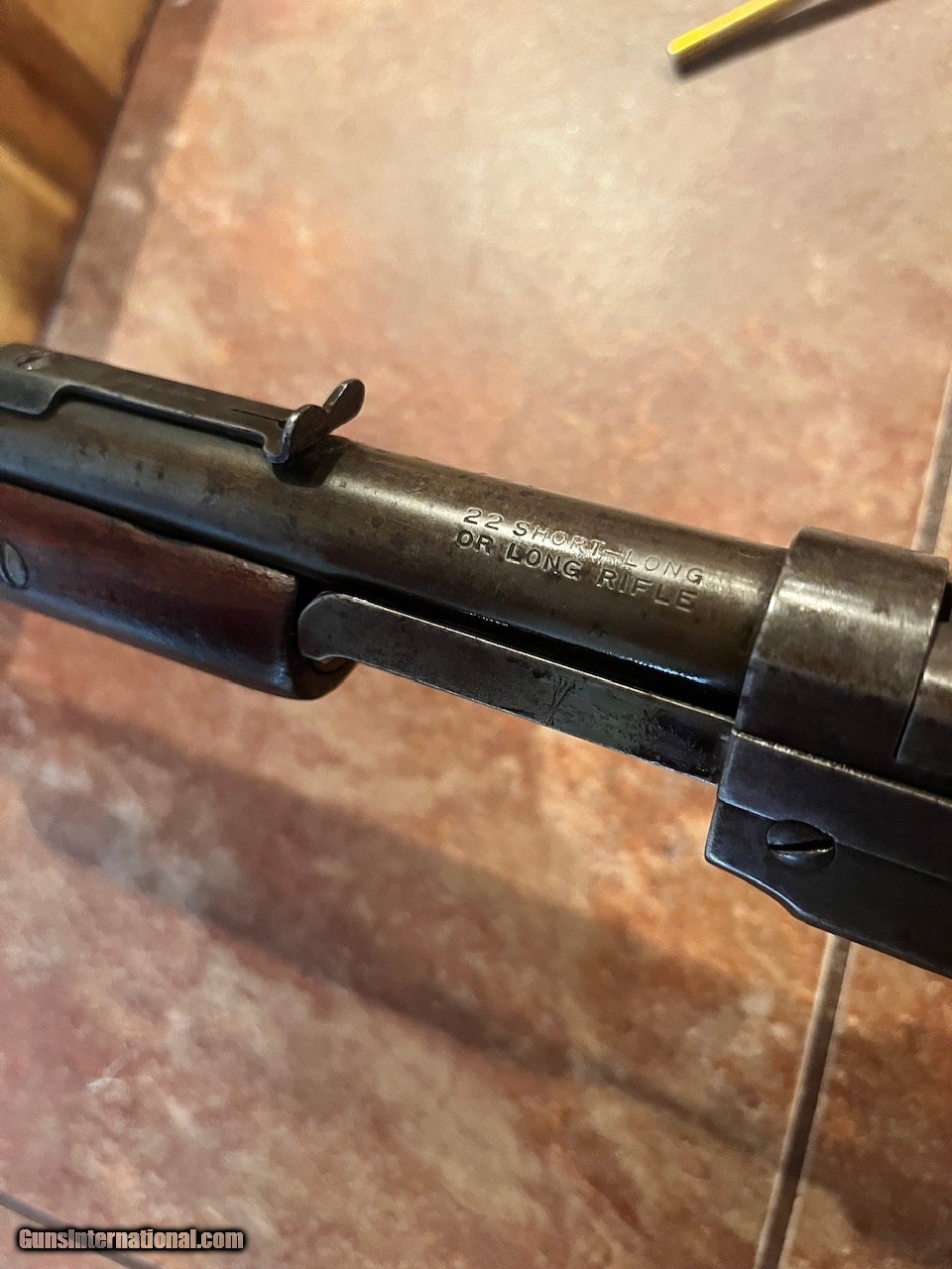 Description: Solid shooter, appears all original, I've shot this gun and it fires fine, cycles perfectly and accurate. Wood is in nice shape for its age, no cracks or repairs, metal has some bluing, but mostly brown patina, some light pitting on the receiver, bore is in decent shape, probably a 7 out of 10, shoots fine. $35 shipping FFL to FFL Zelle, Cashiers, USPS MO, credit/Debit add 3% SOLD Rifle Caliber: .22 Long Rifle |