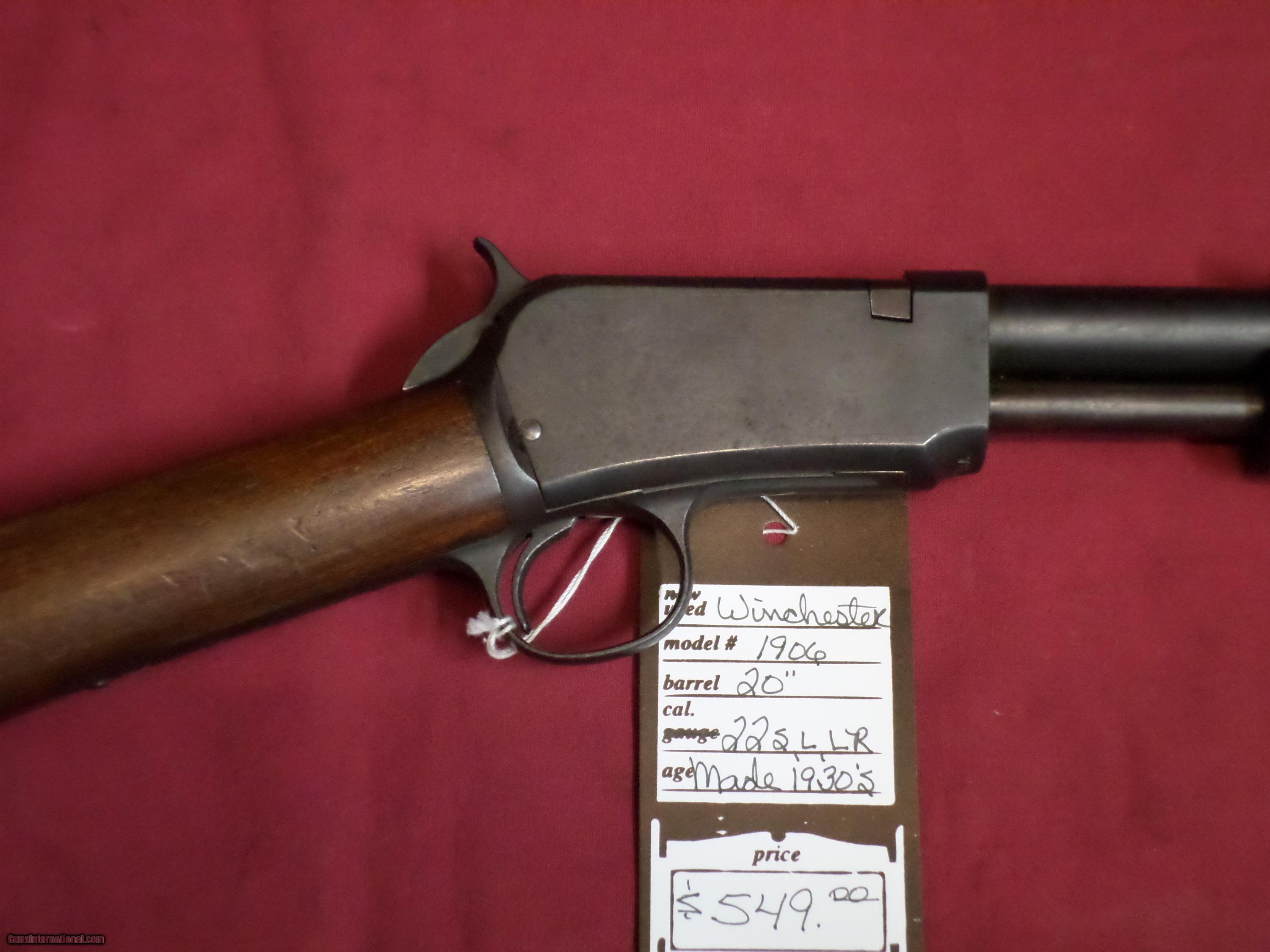 Description: SOLD For sale, Winchester 1906 with 20" bbl. in .22 s,l,lr. Nice condition, a lot of brown, but a nice bore. All original. Circa 1930 To see more of our inventory, visit deerhunterguns,com We accept MC, Visa and Discover, no AmEx. No Sales to California. Like us on Facebook: Deer Hunter Guns SOLD |
