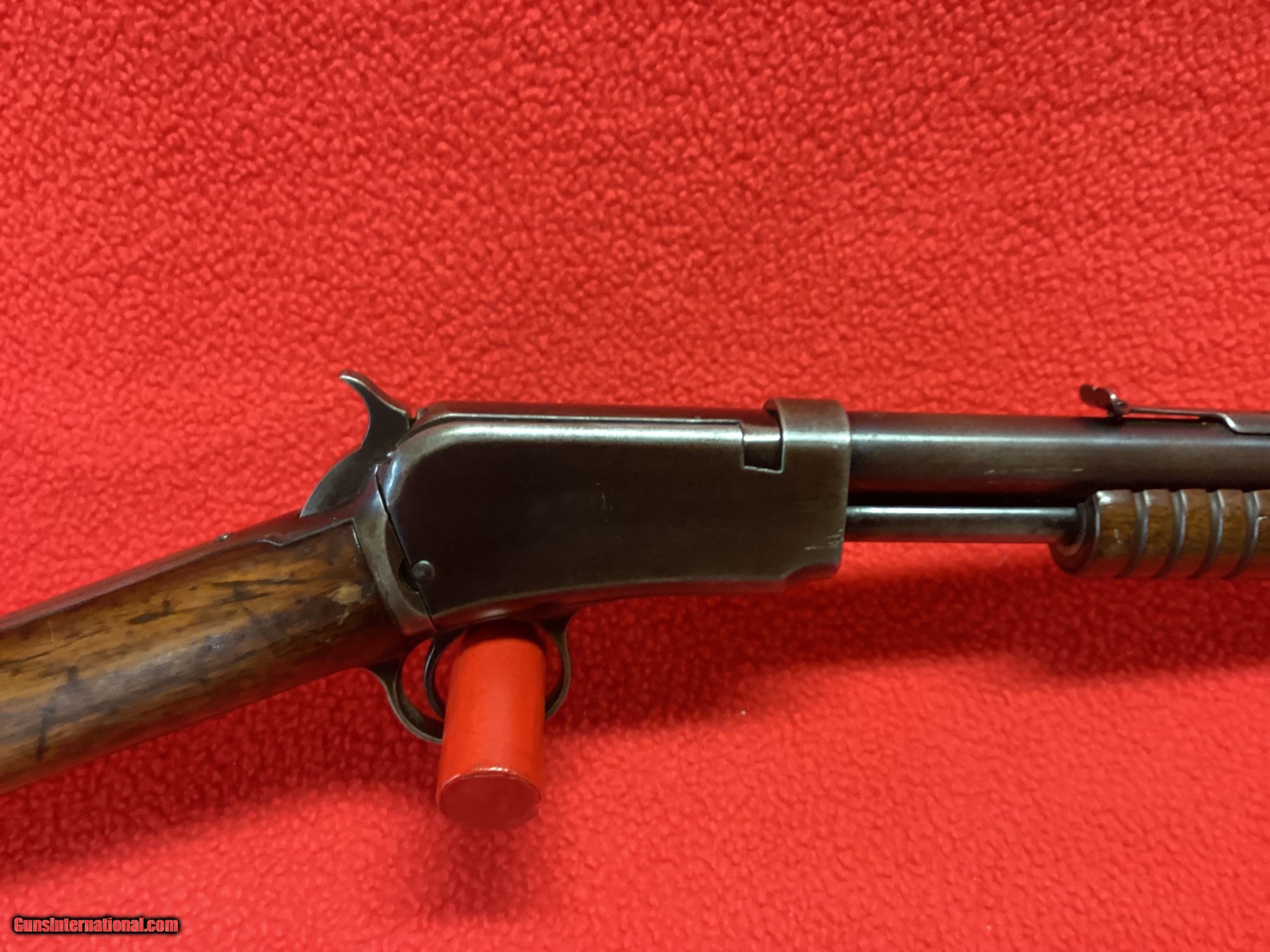 Description: FOR YOUR VIEWING IS A VERY CLEAN 1906 WINCHESTER WITH THE GUM WOOD STOCK AND FORARM. BLUEING IS EXCELLENT AND THE BARREL IS EXCELLENT MADE IN 1919 THE STOCK IS STAINED, BUT OTHERWISE RIFLE IS IN EXCELENT CONDITION FOR IT'S AGE. SHOOTS VERY GOOD. NOTE: SHIPPING AND INS EXTRA CALL OR EMAIL FOR MORE INFO ETC. THANKS FOR LOOKING SOLD |