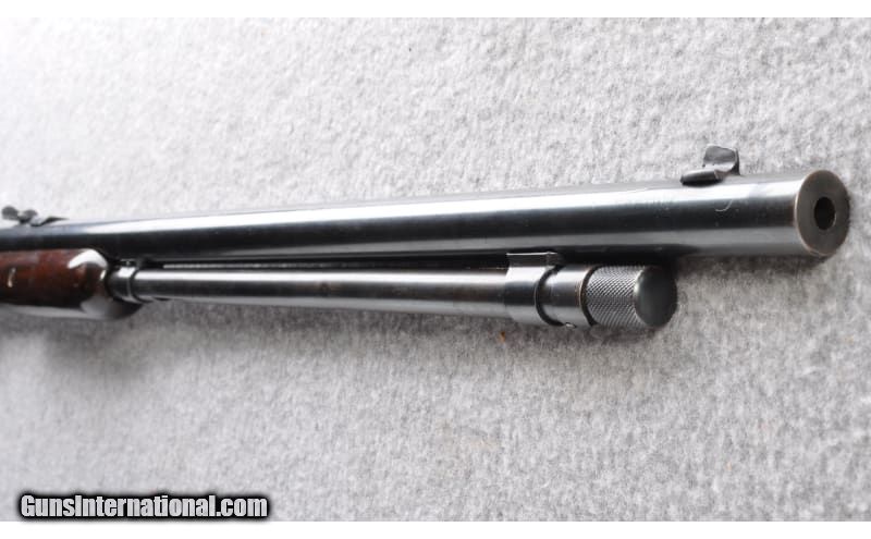 Description: The Winchester Model 1906 was a .22 caliber slide-action takedown rimfire rifle manufactured by Winchester Repeating Arms Company from 1906 to 1932. It was designed as a less expensive model compared to the Model 1890. The rifle presented here was made in 1912 and has been refurbished at some point by refinishing the wood and reblue of the metal parts. This is an early model by serial number and the plain, smooth grip slider. .22 Short/Long/Long Rifle SOLD Chambers: ".22 Short, Long or Long Rifle in a tubular magazine Metal Condition: Good reblue with some older pitting showing through Wood Condition: Good refinished hardwood Bore Condition: "Good, bright with visible rifling Barrels: 20" round Stock Dimensions: 12 3/4" LOP Fore End: Smooth hardwood slider Butt Pad: Hard rubber with Winchester seal Weight: 4 Lbs. 10 Oz. Sights: "Dovetailed blade front, Screw adjustable leaf rear, elevation only Item Location: Grand Junction, CO |