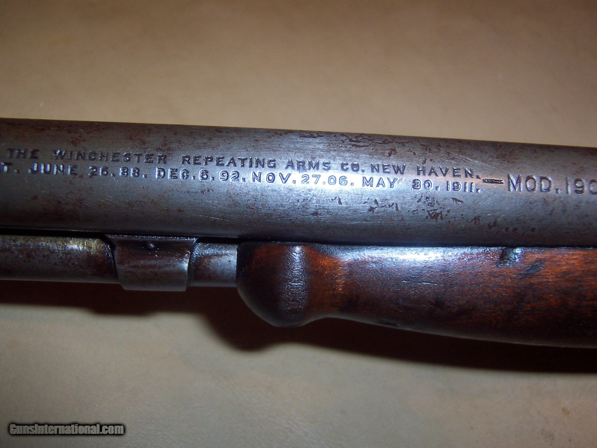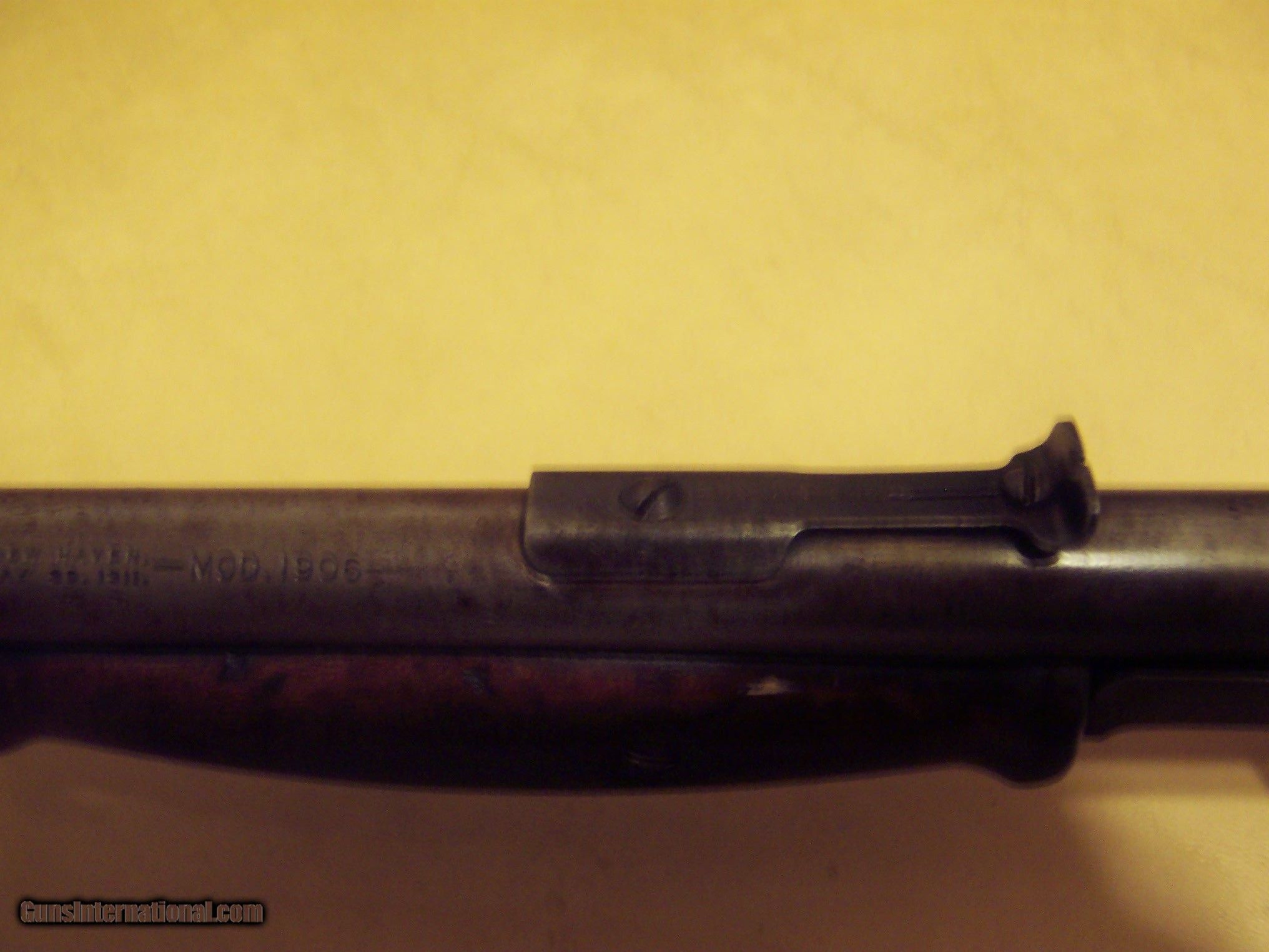 Description: model 1906 expert , metal is a grey color , bore has visable rifling but has pitting , shoots fine , serial # 562310 matching,,, stock shows normal use for age may have traced of original finish,, gun, looks all original and complete has original winchester marked butt late SOLD Curio/Relic: Yes |