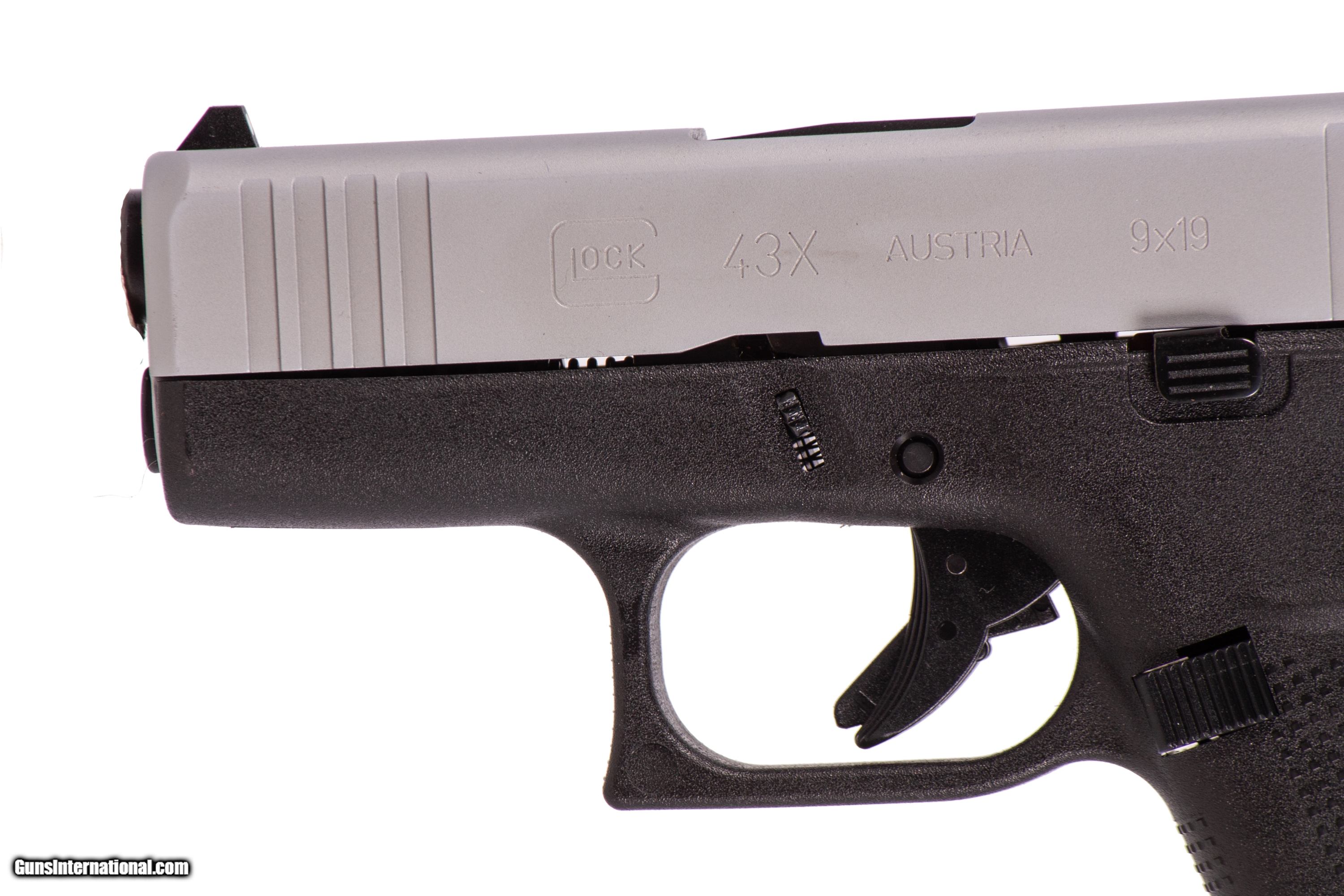 Description: Glock 43X chambered in 9mm with a 3 1/2 inch barrel and a bright and shiny bore. This firearm is in excellent condition and is covered by Dury's Lifetime Warranty.