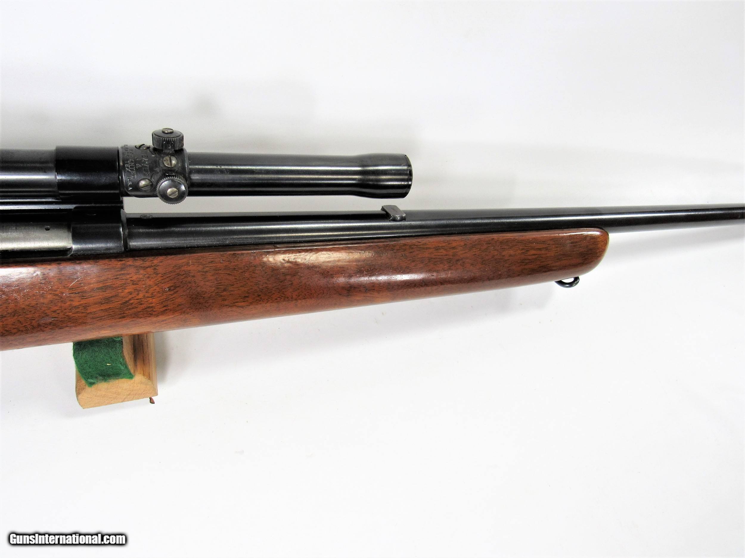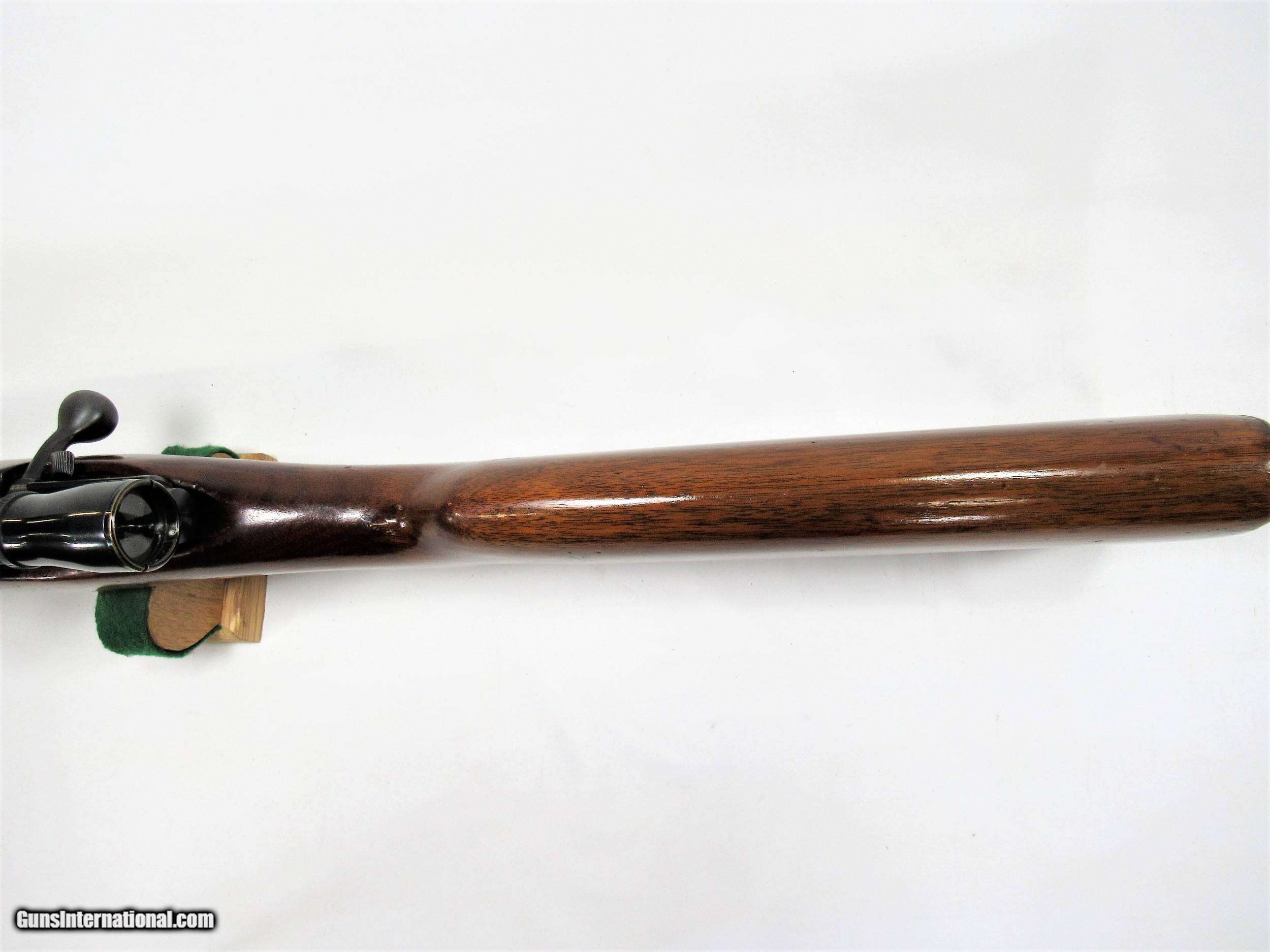 Description: WINCHESTER 43 218 BEE. 97+% BLUE. WOOD HAS SOME HANDLING MARKS, EXCELLENT BORE. DRILLED AND TAPPED WITH AN OLD WEAVER J4 ON A SIDE MOUNT. SOLD Curio/Relic: Yes Rifle Caliber: .218 Bee |