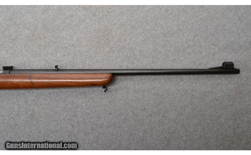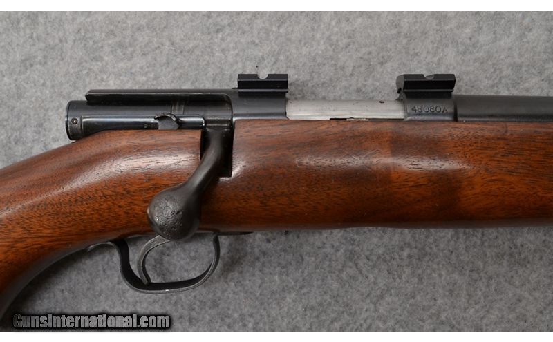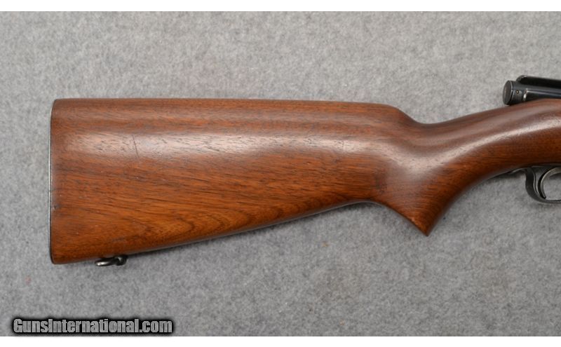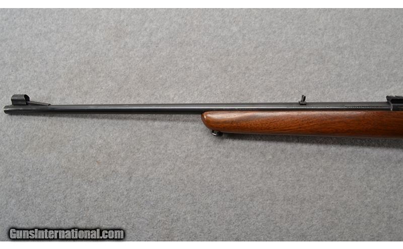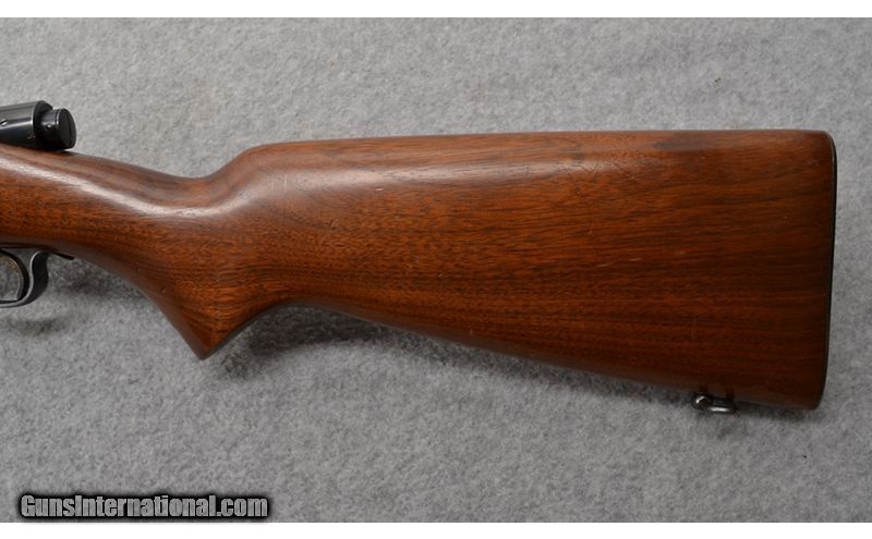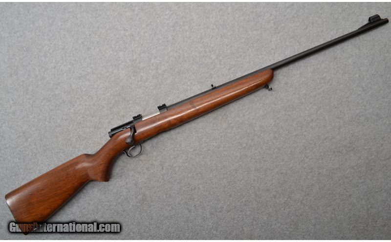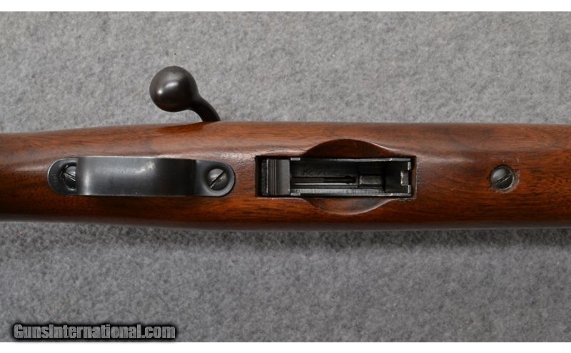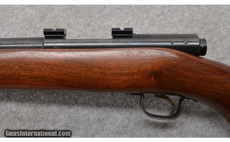 Description: Winchester model 43 .22 Hornet with 24" barrel, flip down rear sight adjustable for elevation, and ramp front blade with hood. Drilled and tapped for optics. The bore is bright with strong rifling. Action and barrel show some light blue wear and patina. Bolt handle has some pitting. Walnut pistol grip stock shows handling marks, dings, dents, scratches, and some varnish flaking off. Comes with one factory magazine. .22 Hornet SOLD Metal Condition: Action has some light blue wear and some patina present. Bolt handle shows some pitting. Barrel has some blue wear at the muzzle along with some light scratches and patina. Wood Condition: "Walnut stock shows some handling marks, dings, scratches, and some varnish flaking off. Bore Condition: Bright bore with strong rifling. Barrels: 24" barrel. Triggers: Smooth trigger. Stock Dimensions: 13 1/2" LOP Fore End: Walnut pistol grip stock. Butt Pad: Metal checkered shotgun butt plate. Weight: 6 lb - 4 oz Sights: Flip down rear sight that is adjustable for elevation. Item Location: Mitchell, SD |