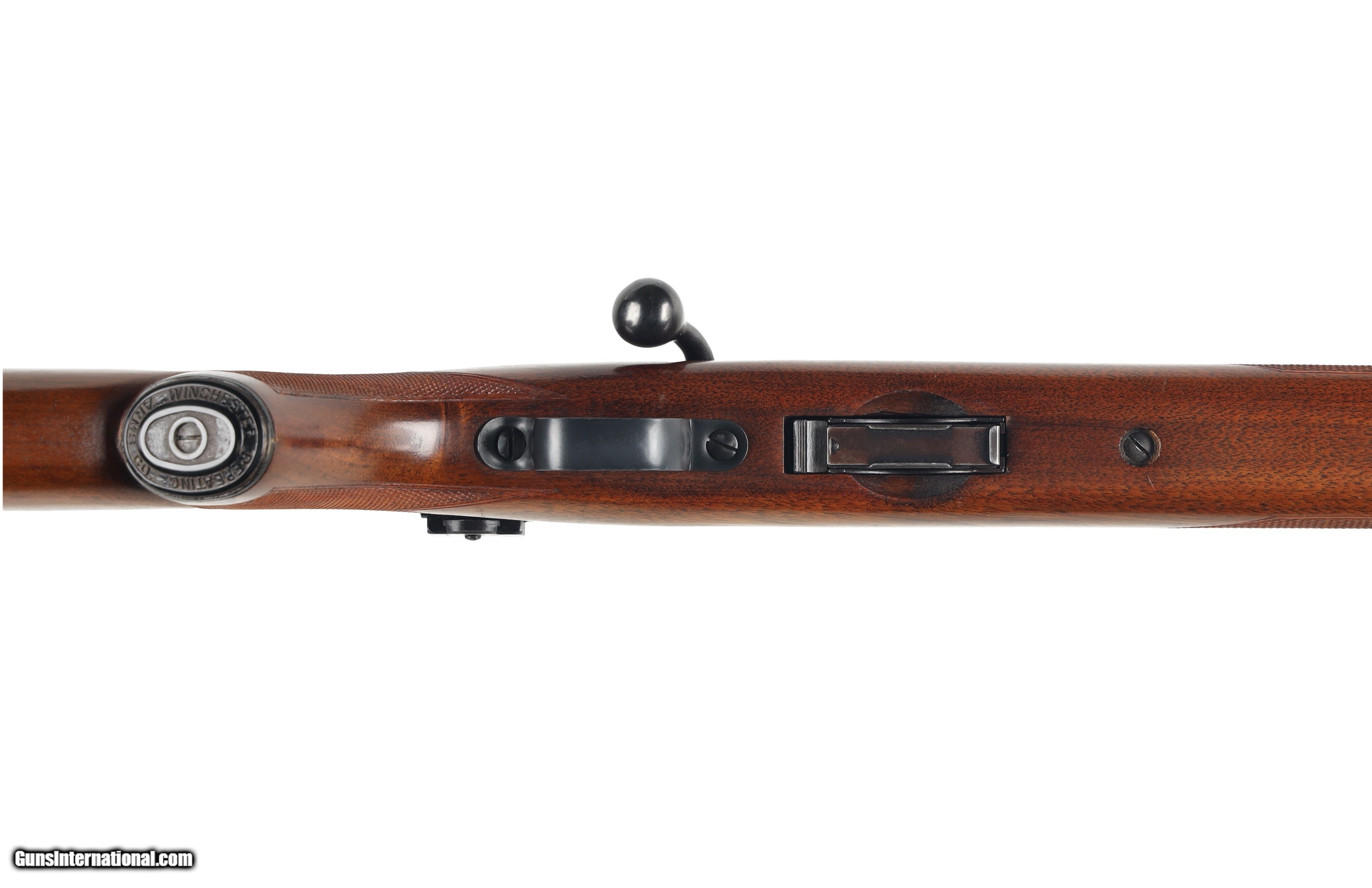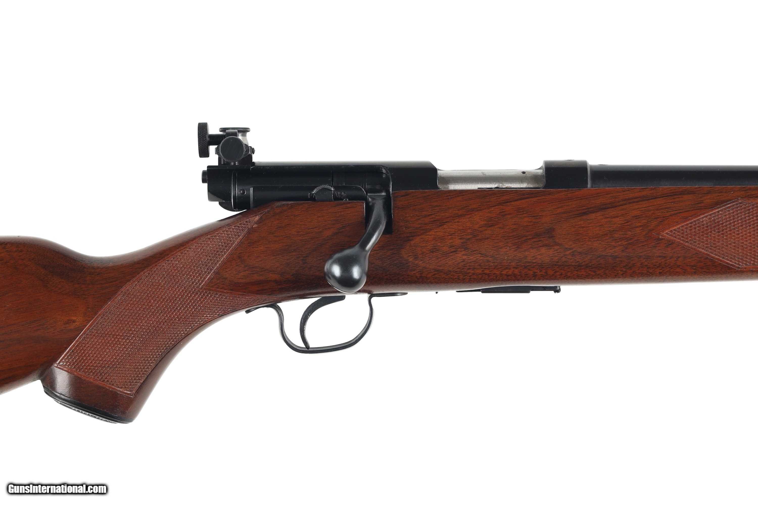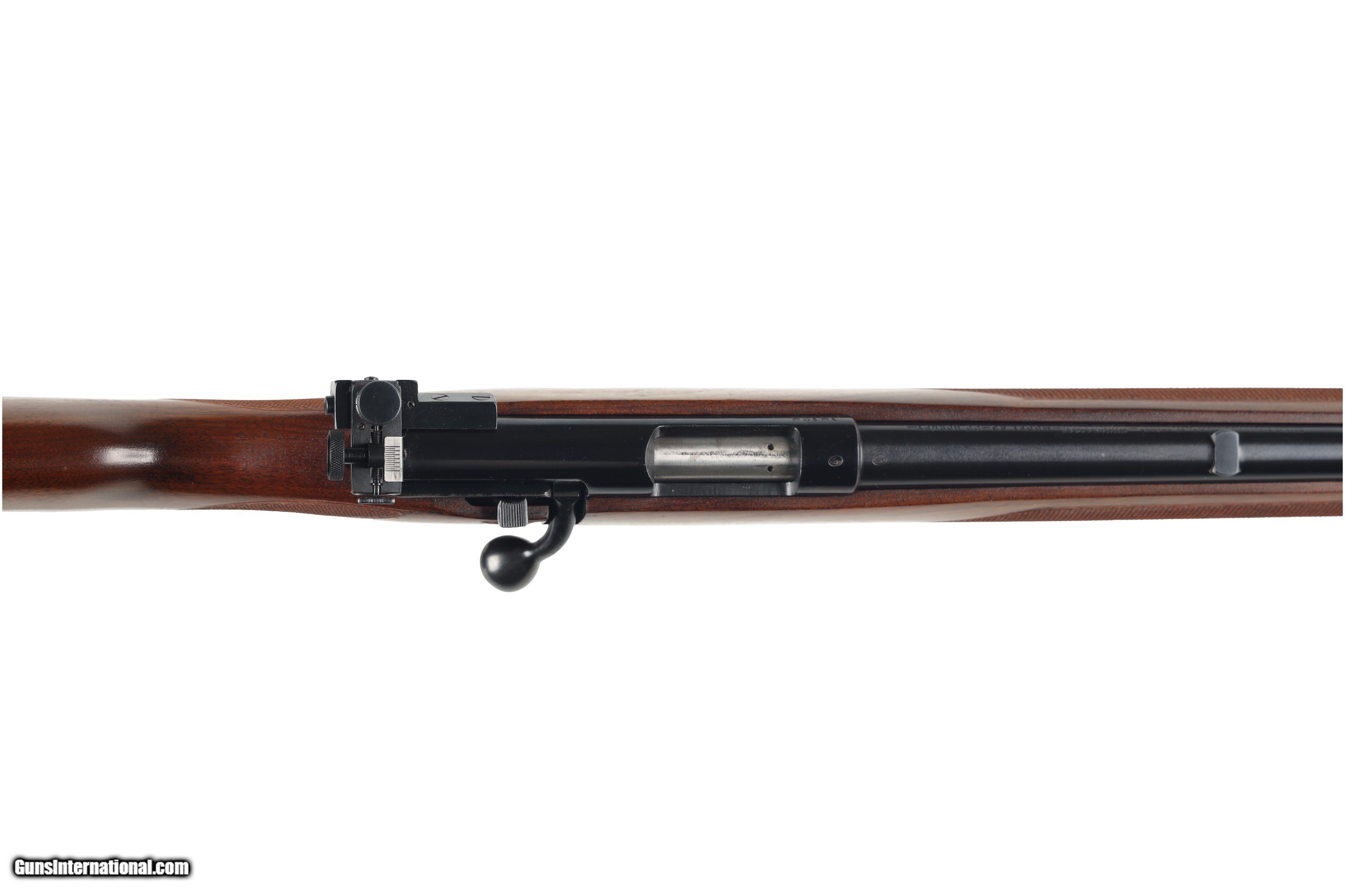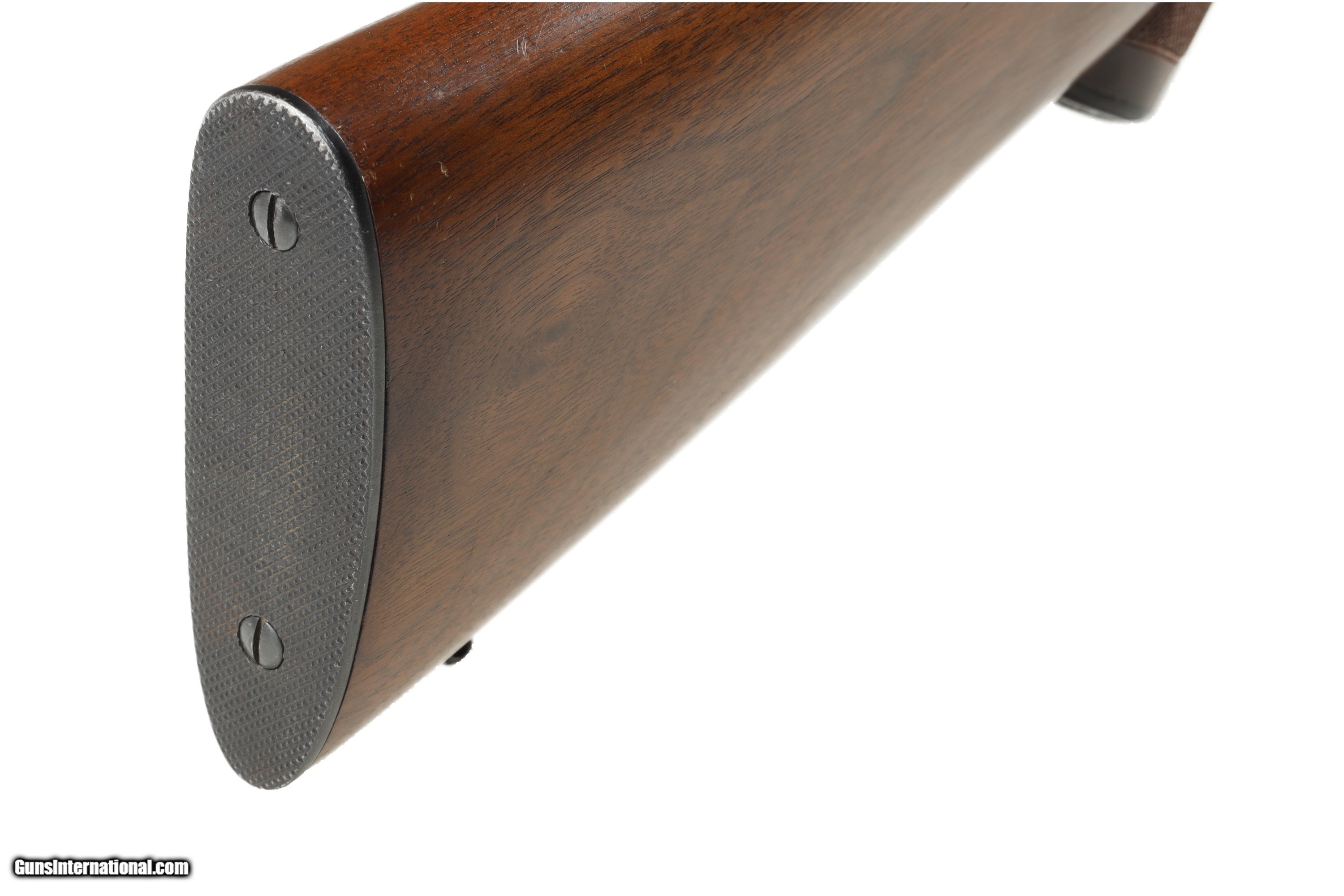 Description: The Winchester Model 43 is an interesting little bolt action rifle, only sold from 1949 to 1957 and chambered in what were then "intermediate" cartridges like the .218 Bee, .22 Hornet, .25-20 and .32-20, it fills a niche in small to medium game hunting that many rifles of the time didn't fill. This example is of a near mint condition Model 43 Deluxe, with a factory installed Lyman 57A target sight. Overall condition is immaculate, with only the lightest of cabinet marks on the stock and with what appears to be an unfired bore. SOLD Rifle Caliber: .22 Hornet Manufacturer: Winchester Model: 43 Barrel Length: 24 Caliber Info: .22 Hornet Condition: Vg Metal Condition: VG Wood Condition: VG Bore Condition: VG Action: Bolt Butt Pad: Factory LOP: 13 1/2 Finish: Original Weight: 6.7 Case: No |