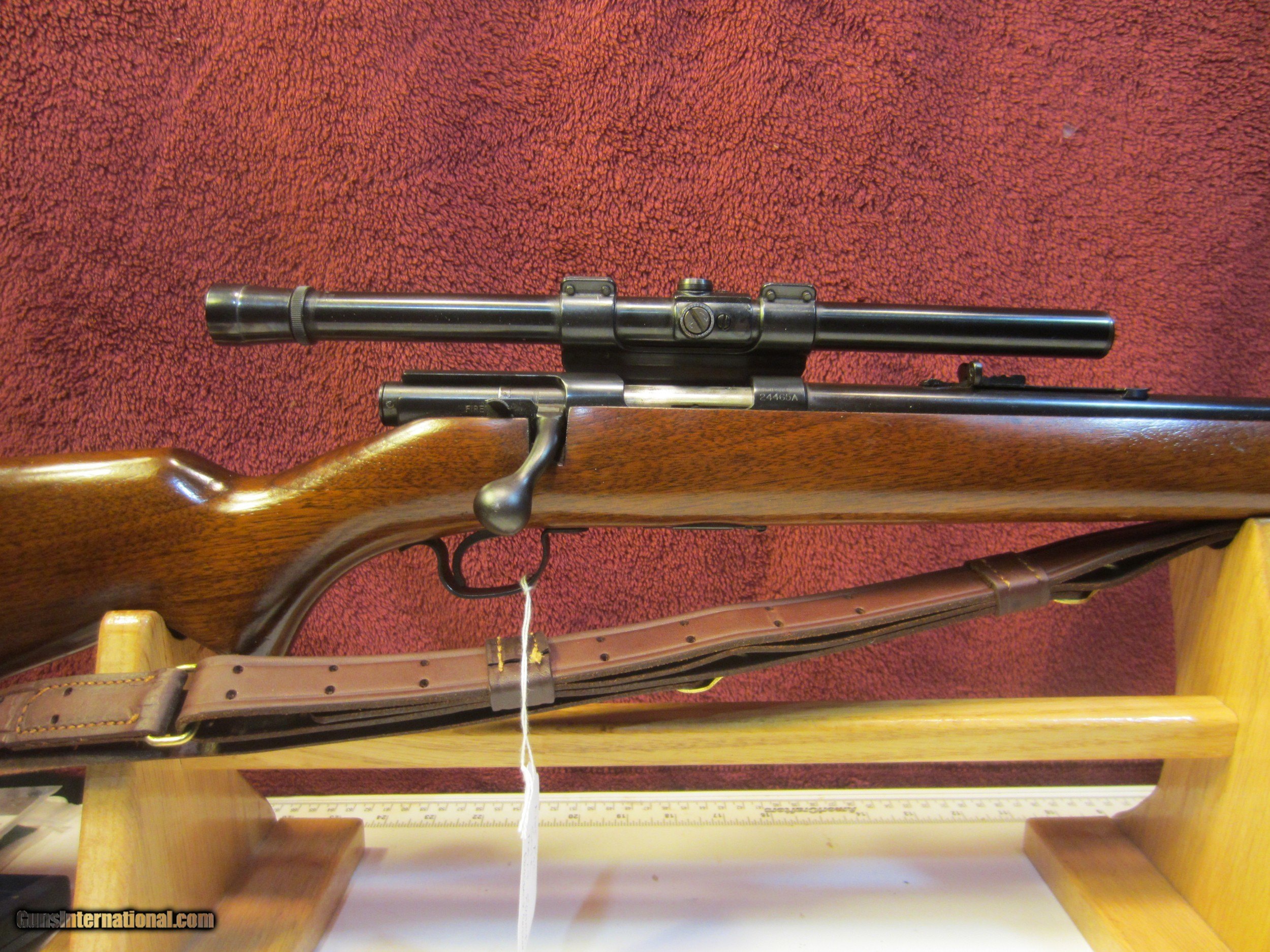 Description: WINCHESTER MODEL 43 22 HORNET STANDARD GRADE WOOD AND METAL ALL FACTORY FINISH BLUE 95% WOOD FINISH 95% WITH JUST A FEW LIGHT HANDLING MARKS SCOPE WEAVER B6 SERIAL NUMBER 24465A BORE EXCELLENT ORIGINAL FACTORY FRONT AND MIDDLE SIGHTS AND FACTORY HOOD. BOLT SERIAL NUMBERED TO RECEIVER WANT TO PURCHASE CALL SHOP 716-941-3946 SOLD Curio/Relic: Yes |