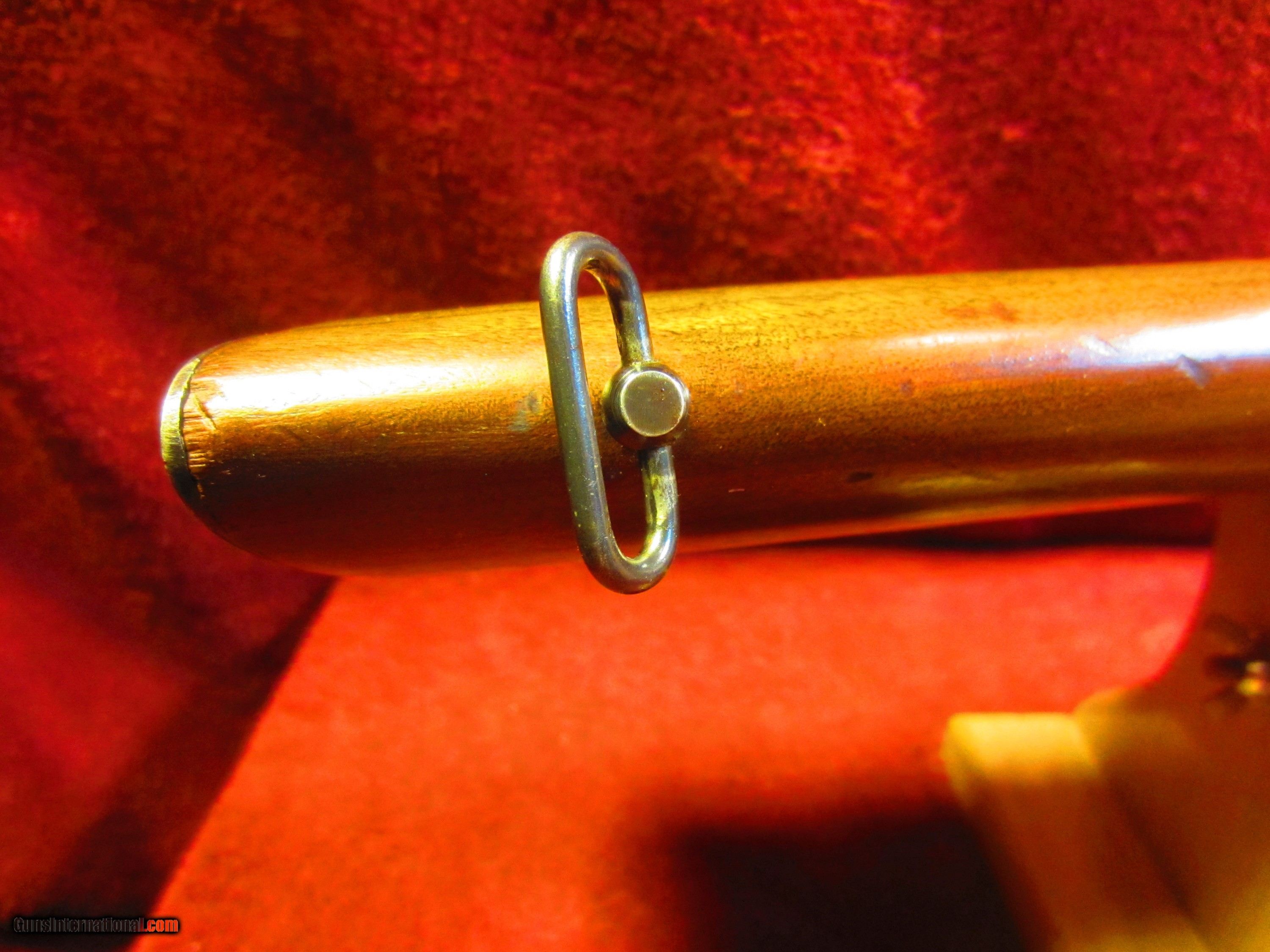 Description: WINCHESTER MODEL 43 DELUXE CALIBER 218 BEE FACTORY DRILLED AND TAPPED FOR SCOPE. FACTORY BLUE 99% WOOD FACTORY FINISH WITH SMALL MARK AT TOE OF STOCK. SCOPE WEAVER J4 CROSS HAIR WANT TO PURCHASE CALL 716-941-3946 NOTE THIS RIFLE IS 100% ORIGINAL WITH FACTORY DRILL HOLES ON RECEIVER ONLY AND HAS NOT BEEN ALTERED MIDDLE SIGHT WINCHESTER 22K PROPER MODEL FOR WINCHESTER 43. SOLD Curio/Relic: Yes |