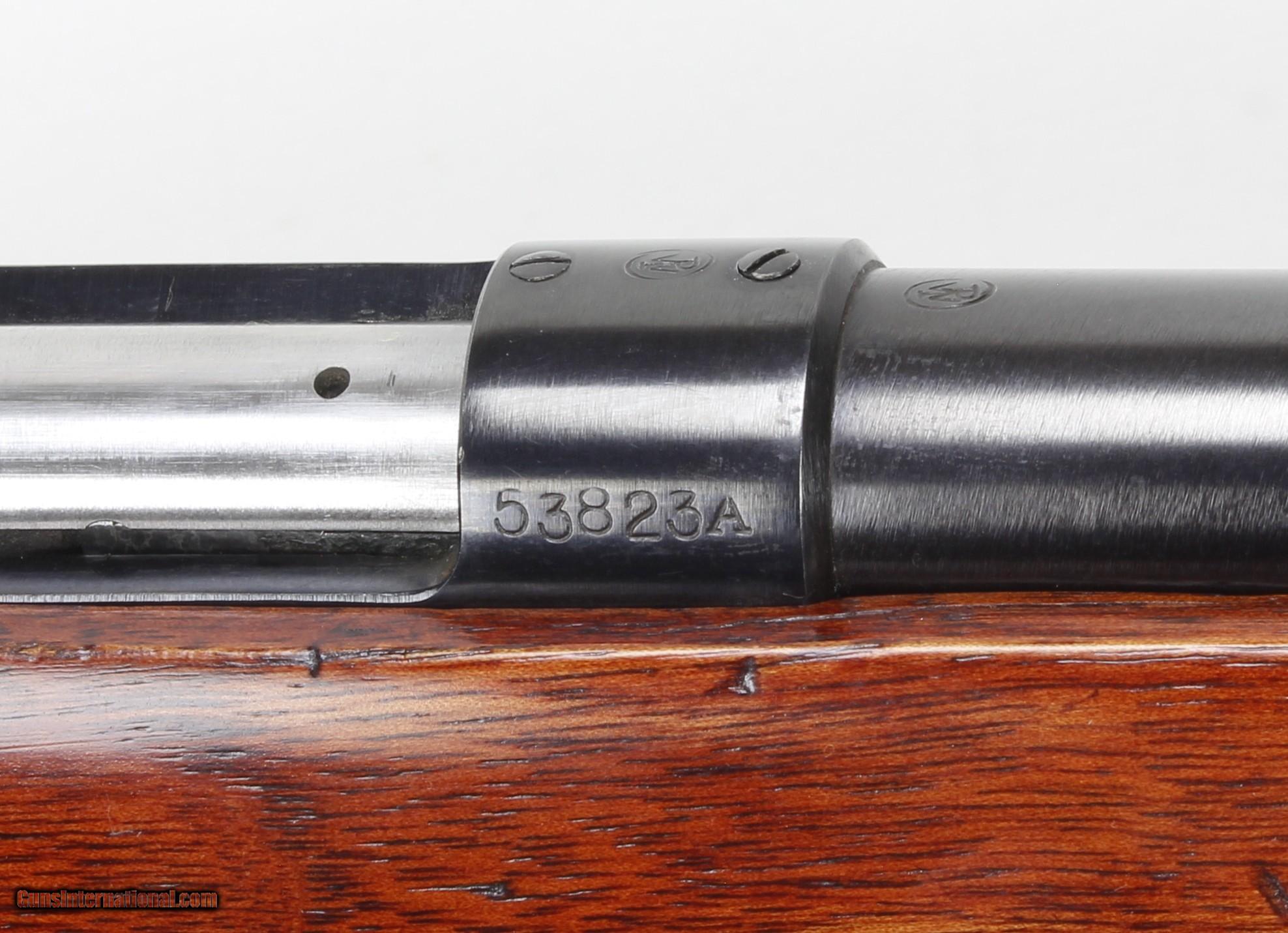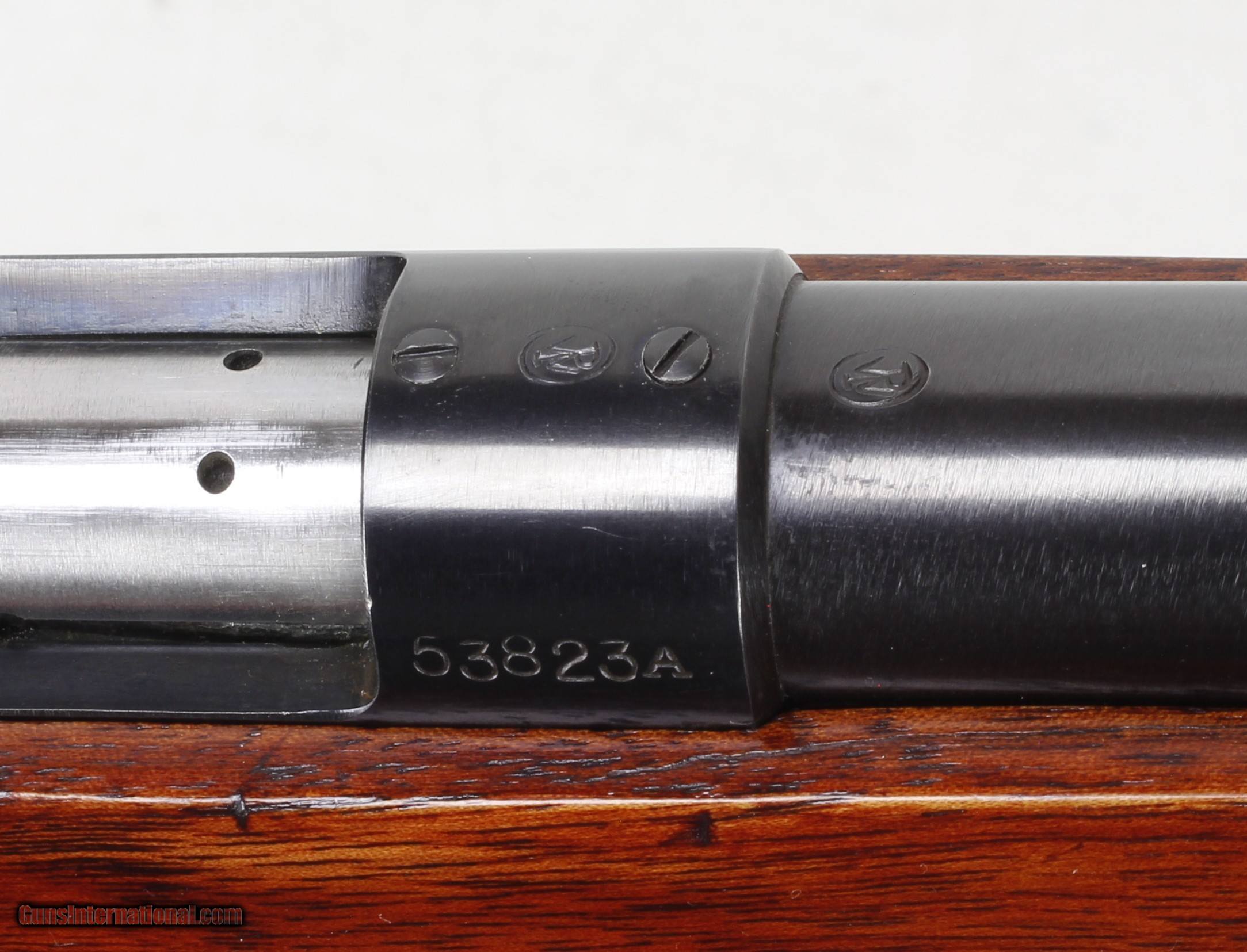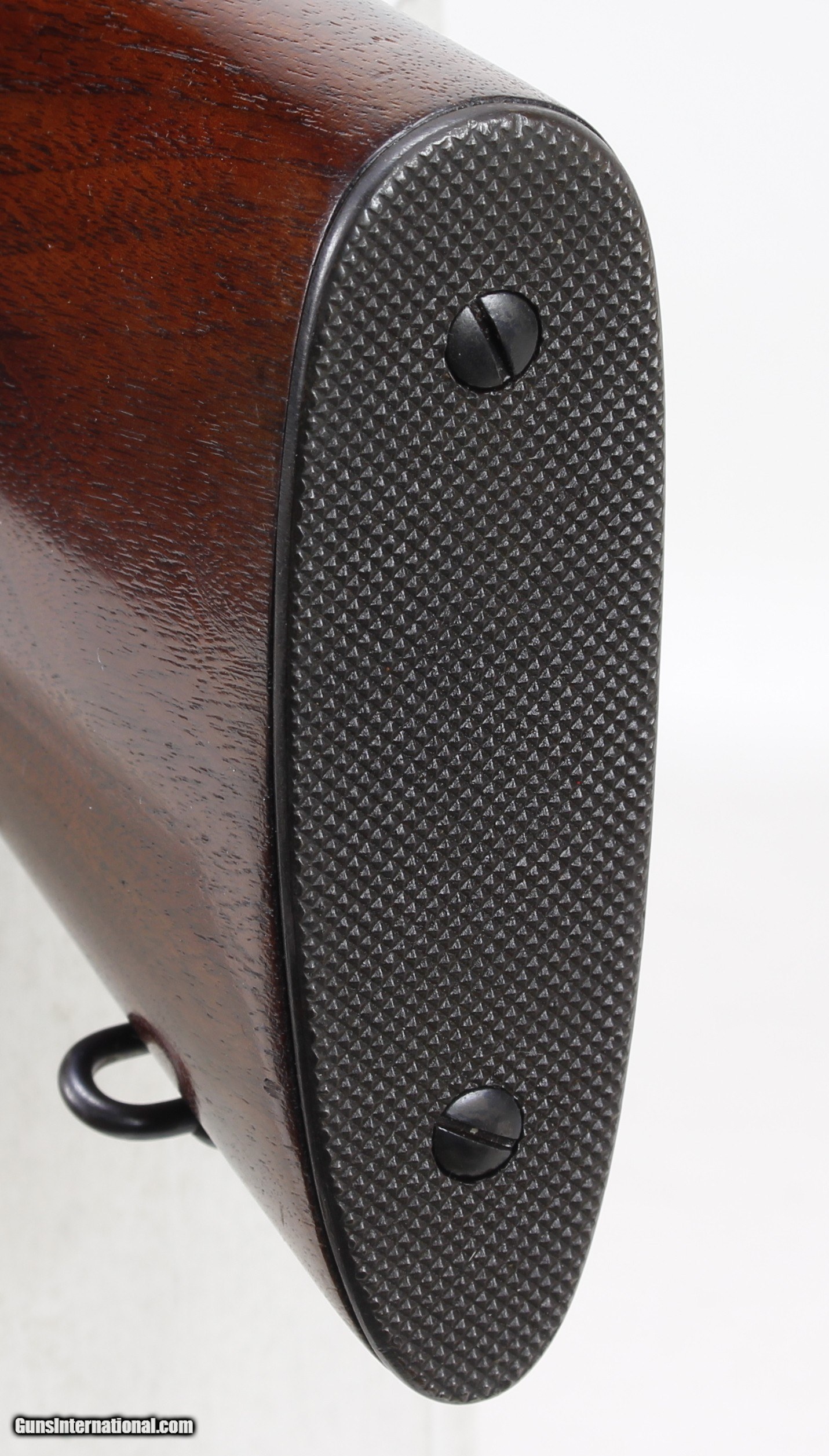 Description: Winchester Model 43 Deluxe Bolt Action Rifle in .22 Hornet. SN #52823A. Mfg. in 1954-1955 Est. LOP 13 5/8". 24 1/4" barrel with an excellent bright bore. The Blued Metal and Checkered Walnut Pistol Grip Stock and Forend have both been very nicely refinished. Tapped for a scope. Adjustable rear and hooded front sights. Steel buttplate. Sling swivels. A really nice Deluxe Model 43 in the very popular .22 Hornet caliber. Weight: 6 lbs. 4 oz. Trigger Pull: 3 lbs. No Travel. More photos available upon request. Ships to Lower 48 W/ Insurance $55.00. SOLD Curio/Relic: Yes Rifle Caliber: .22 Hornet Manufacturer: Winchester Model: 43 Deluxe Serial Number: 52823A Barrel Length: 24 1/4 Condition: Excellent Metal Condition: Refinished Wood Condition: Refinished Bore Condition: Excellent Action: Bolt LOP: 13 5/8 Finish: Blue Weight: 6 lbs 4 oz. Manufacture Date: 1954-55 |