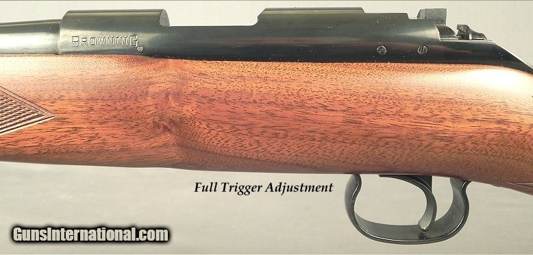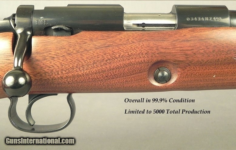 Description: #0343NZ496, Browning 22LR Model 52 Sporter Limited Edition, Identical to the Original Winchester Model 52C Sporter, Totally appears unfired and remains in the factory box, Made in Japan, 22 Long Rifle, Made 1991, 24" barrel without open sights, Factory scope bases with 1" rings, Micro Motion trigger with full adjustment, Standard sliding safety on the right side ahead of the bolt handle, Sporter stock with 13 3/4" LOP over the Browning buttplate, Point pattern checkering, Ebony forend tip, Steel grip cap, Double screw sling swivel bases, Cheekpiece, Slight Monte Carlo stock, 7 lbs. 4 oz. as is without the bases and rings, The factory original high gloss blue overall is 100%, The original wood finish at 99.9%, The checkering is 100%, The bore is new. Browning Arms Co. offered these Model 52's on a limited basis and stated that 5000 were made available in 1991 & 1992. SOLD |